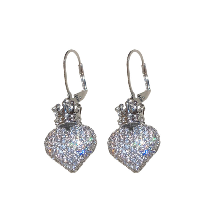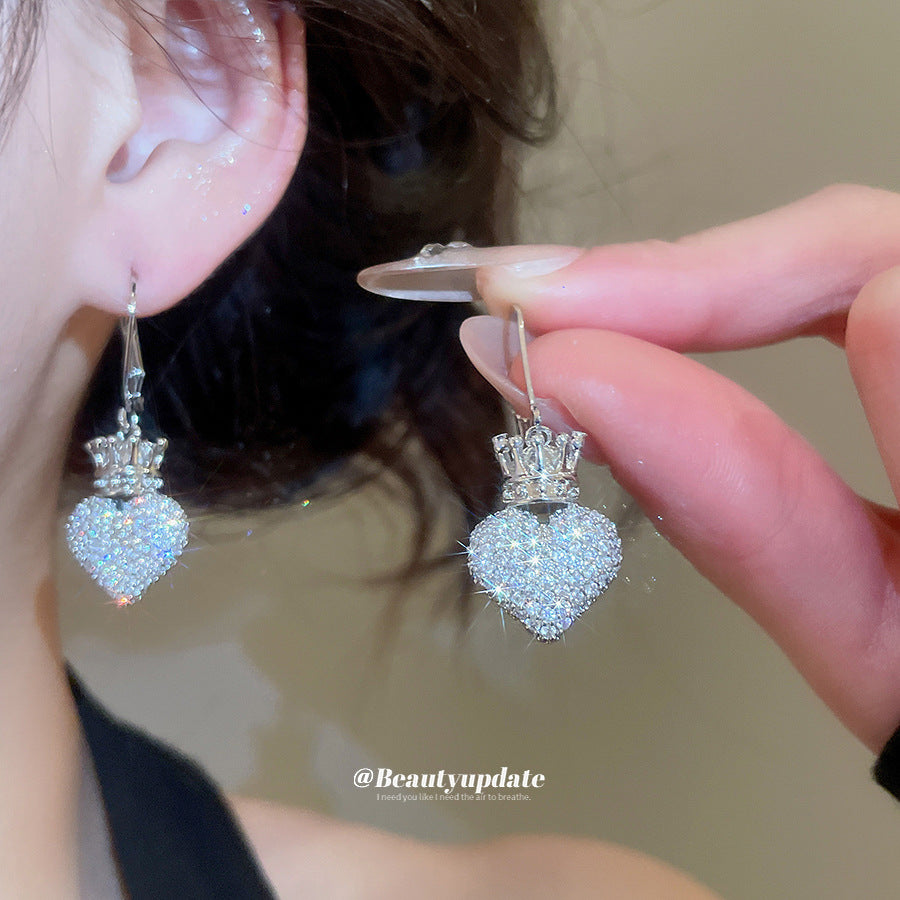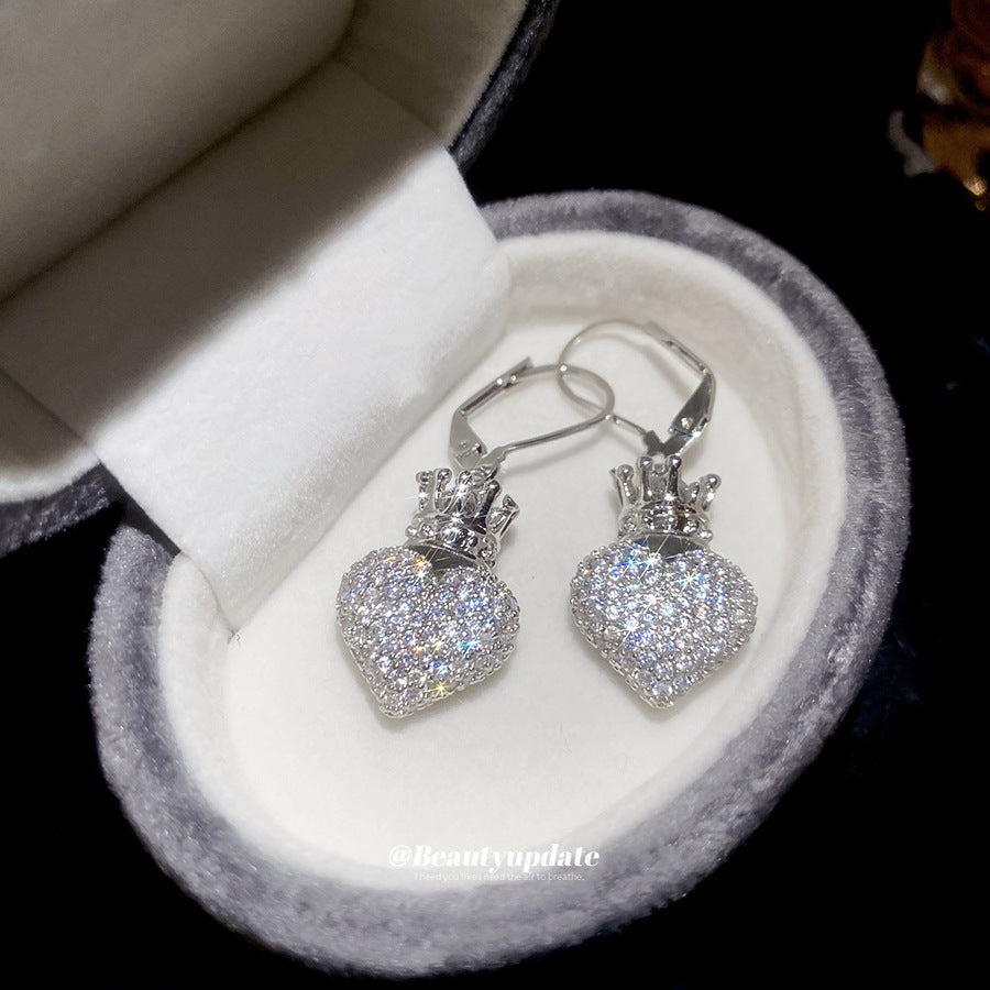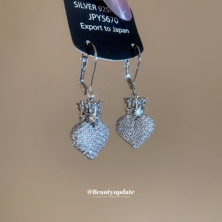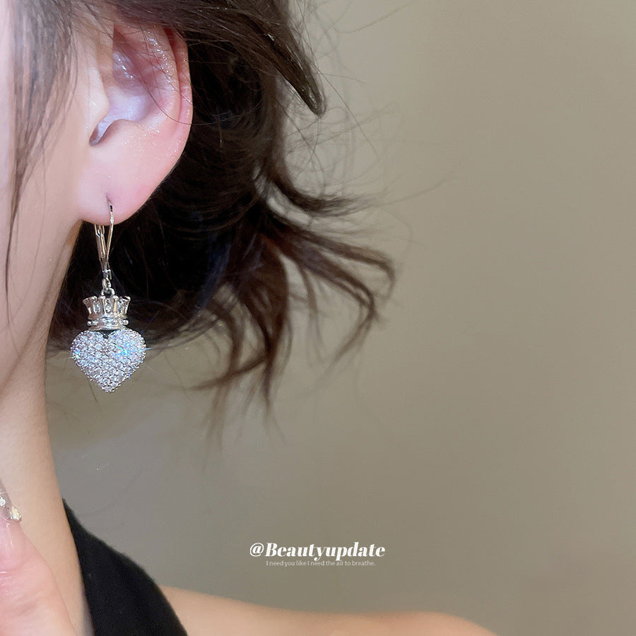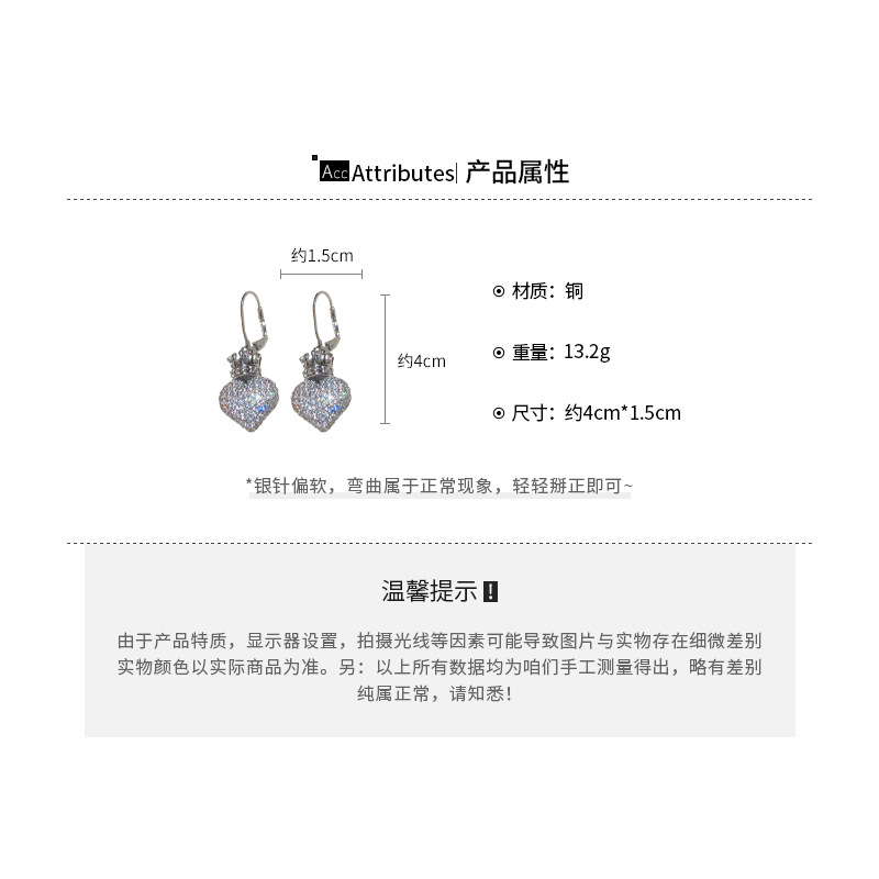 A廠【WE5035】鑲鋯石皇冠愛心吊墜耳環冷淡風小眾耳環輕奢高級感歐美跨境耳環女 25.11-1