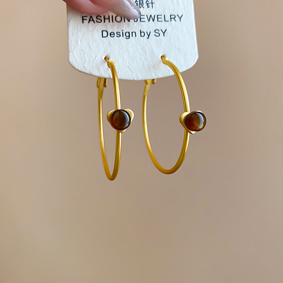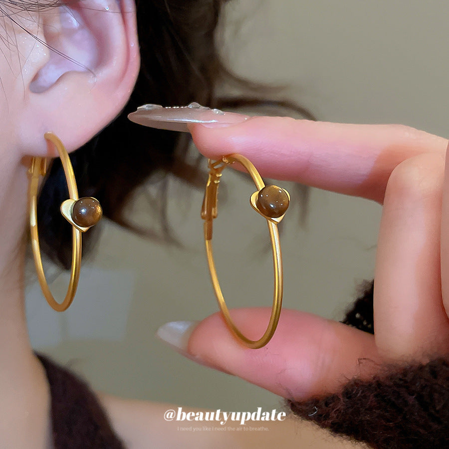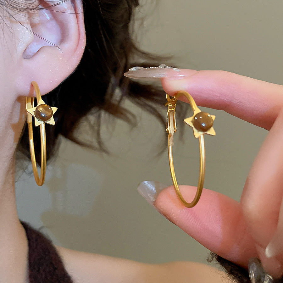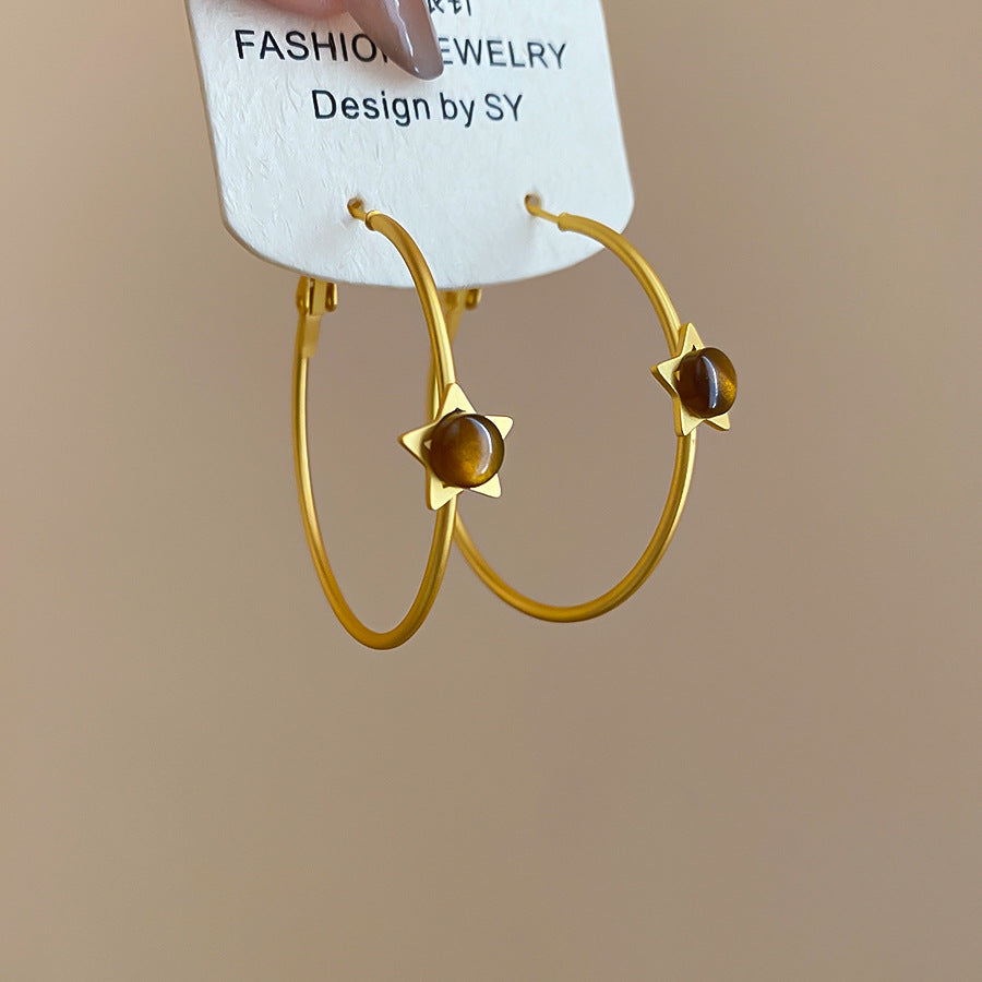 A廠【WE5093】虎眼石愛心五角星耳圈時尚簡約日常百搭耳墜耳環輕奢高級感耳飾女 25.11-2