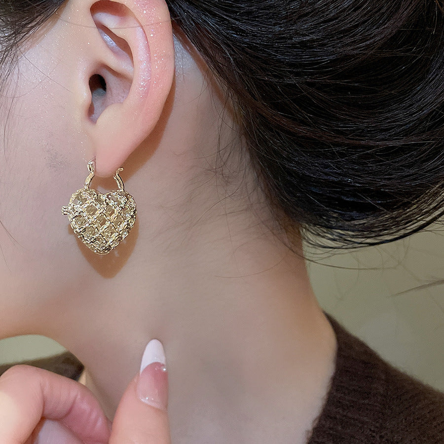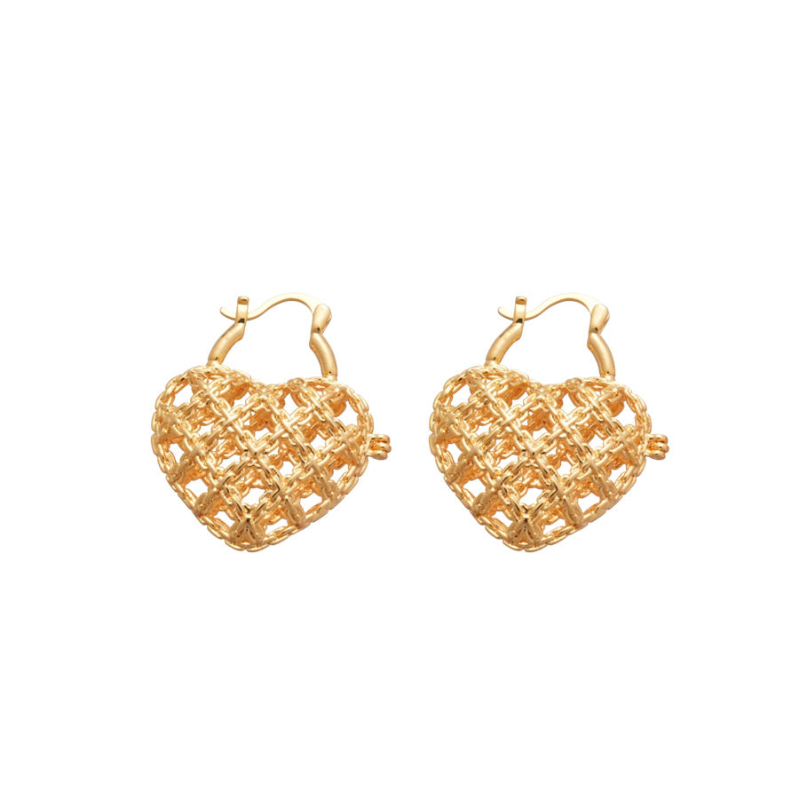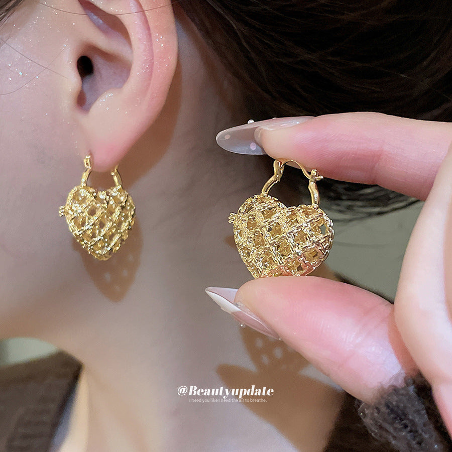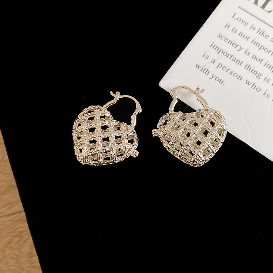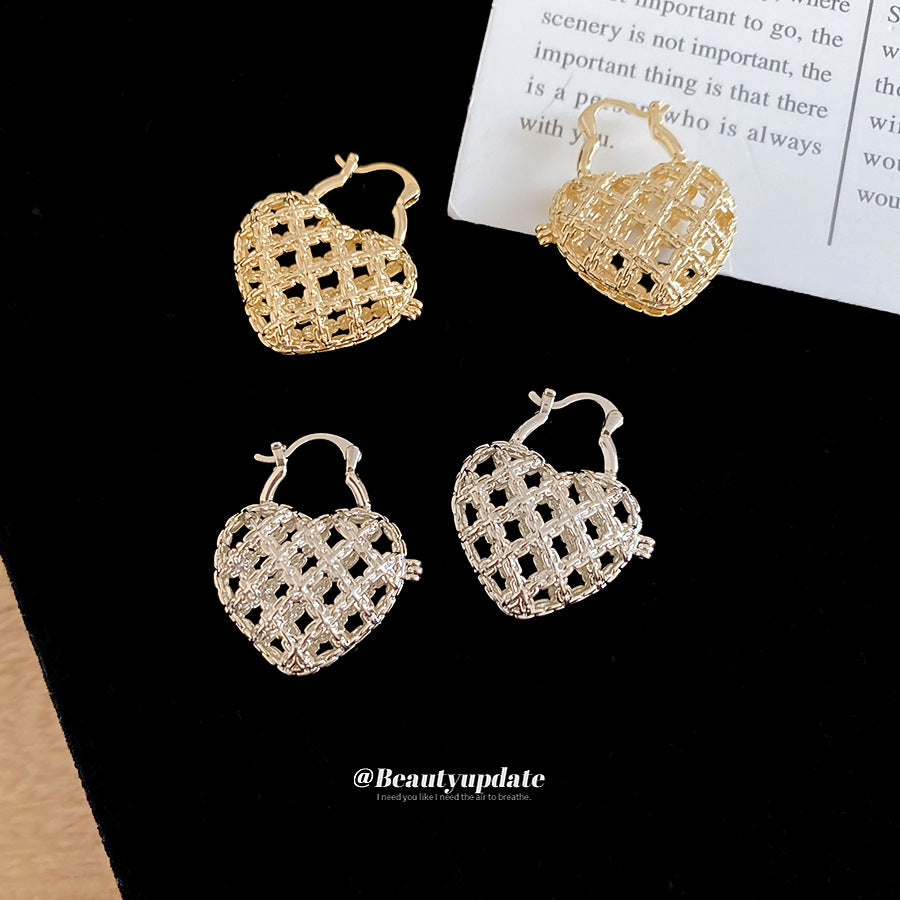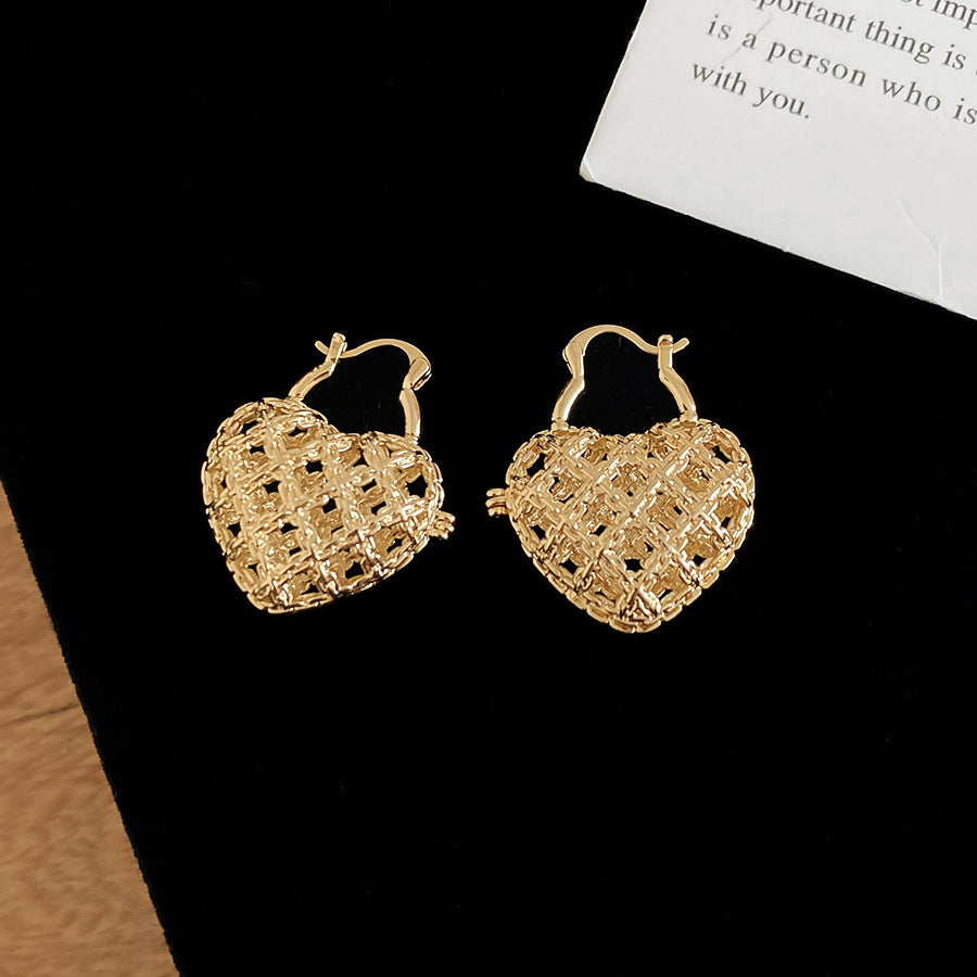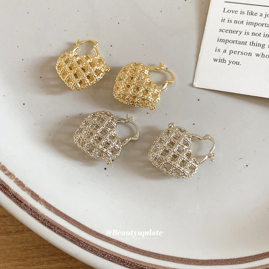 A廠【WE5211】法式復古鏤空金屬愛心扣簡約日常通勤耳環輕奢高級感小眾耳環女 25.11-2