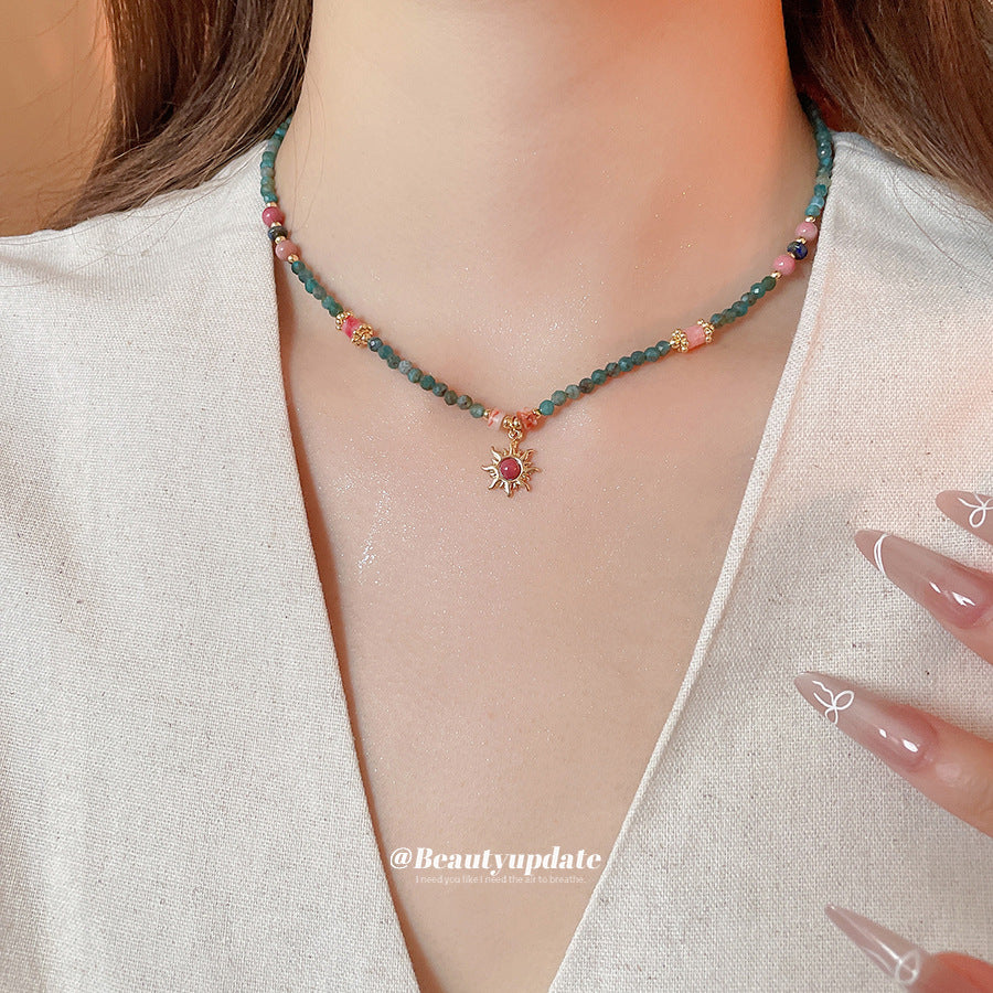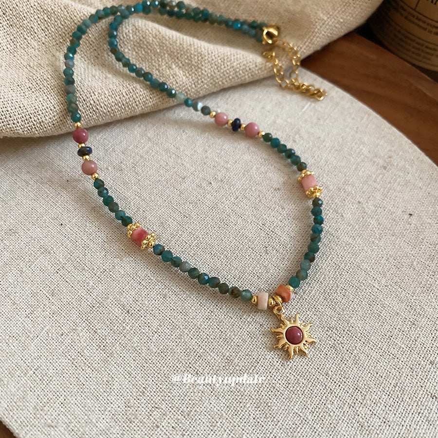 A廠【WN1656】石頭淡水珍珠串珠太陽吊墜項鍊法式宮廷風鎖骨鏈小眾設計感項鍊飾女 25.09-4