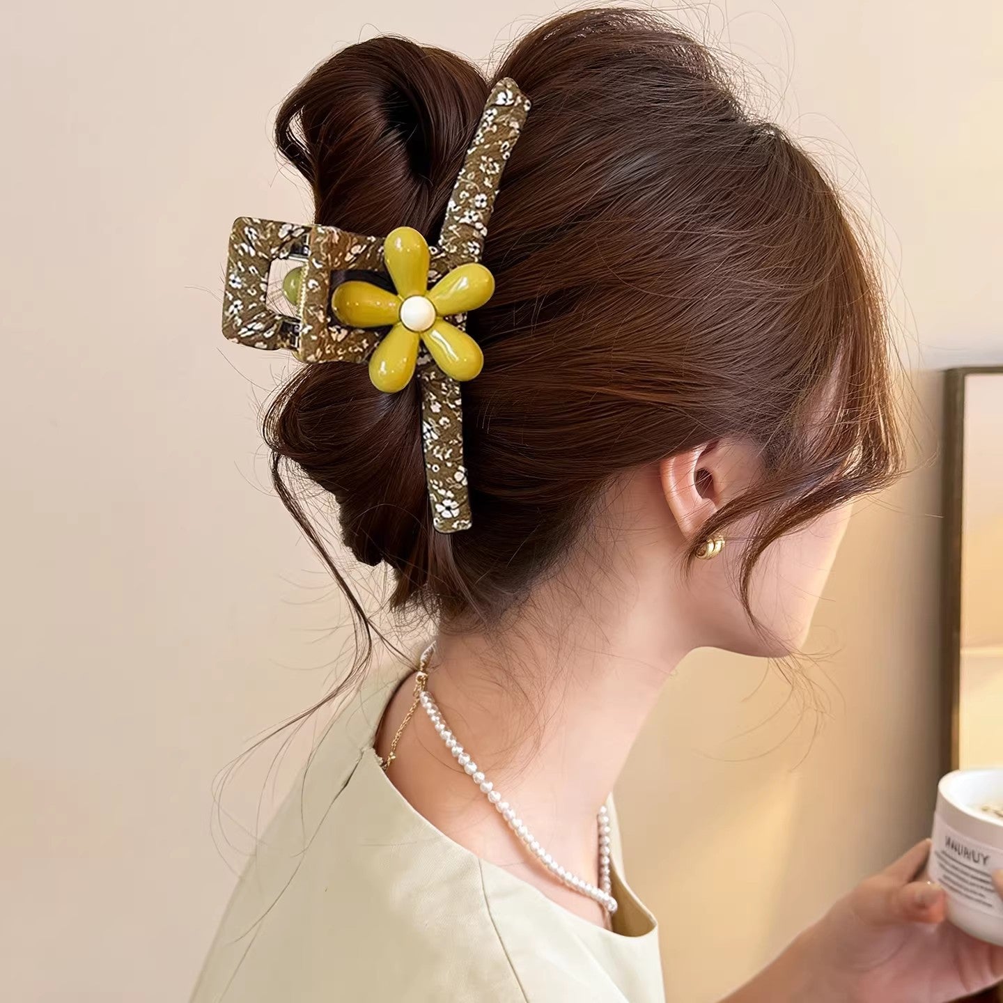 C廠【X101】森系花朵頭髮抓夾女2026新款大鯊夾高級感髮夾獨特漂亮髮飾春 26.04-3
