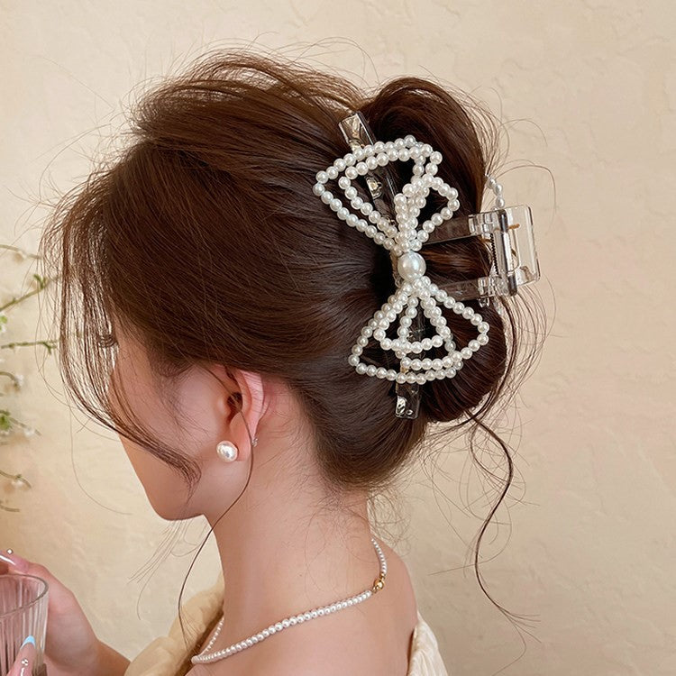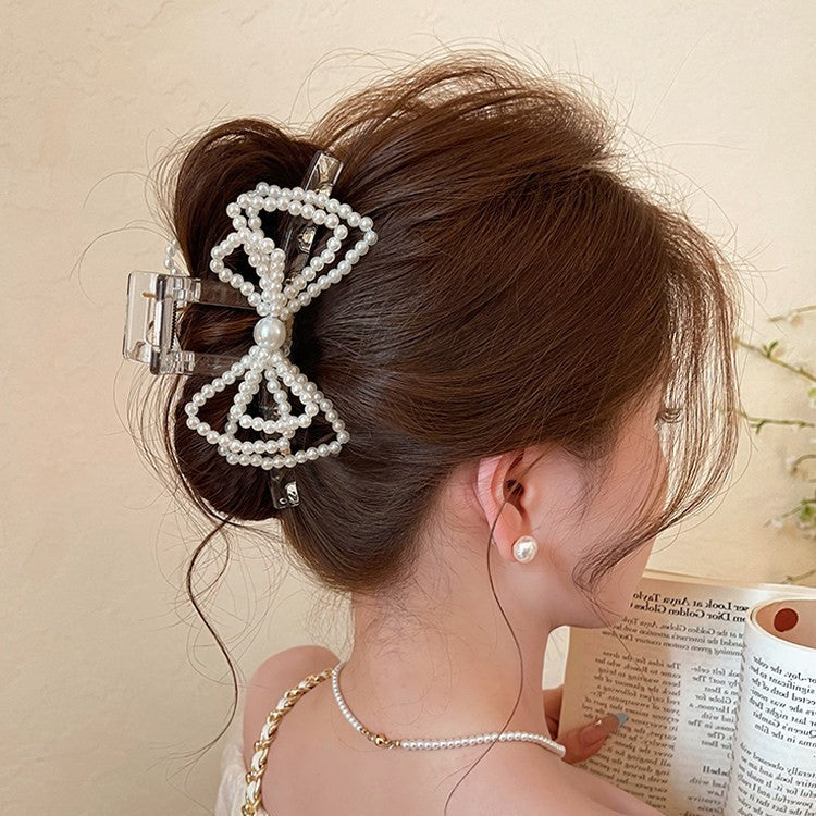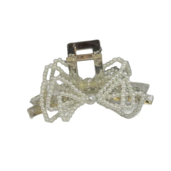 C廠【X121】韓系千金~抓夾女珍珠蝴蝶結鯊魚夾子高級感頭髮髮夾獨特漂亮頭飾 26.04-3