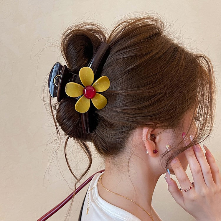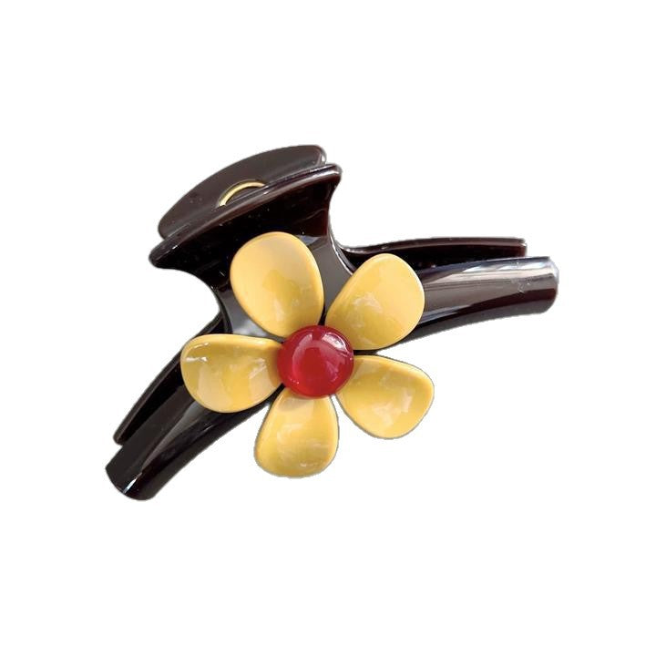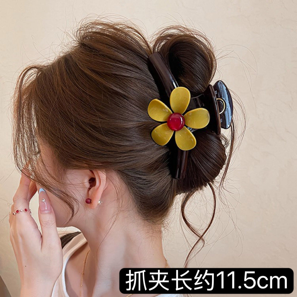 C廠【X125】氣質紅珠花朵抓夾女頭髮鯊魚夾高級感獨特盤髮夾2026新款漂亮髮飾 26.04-3
