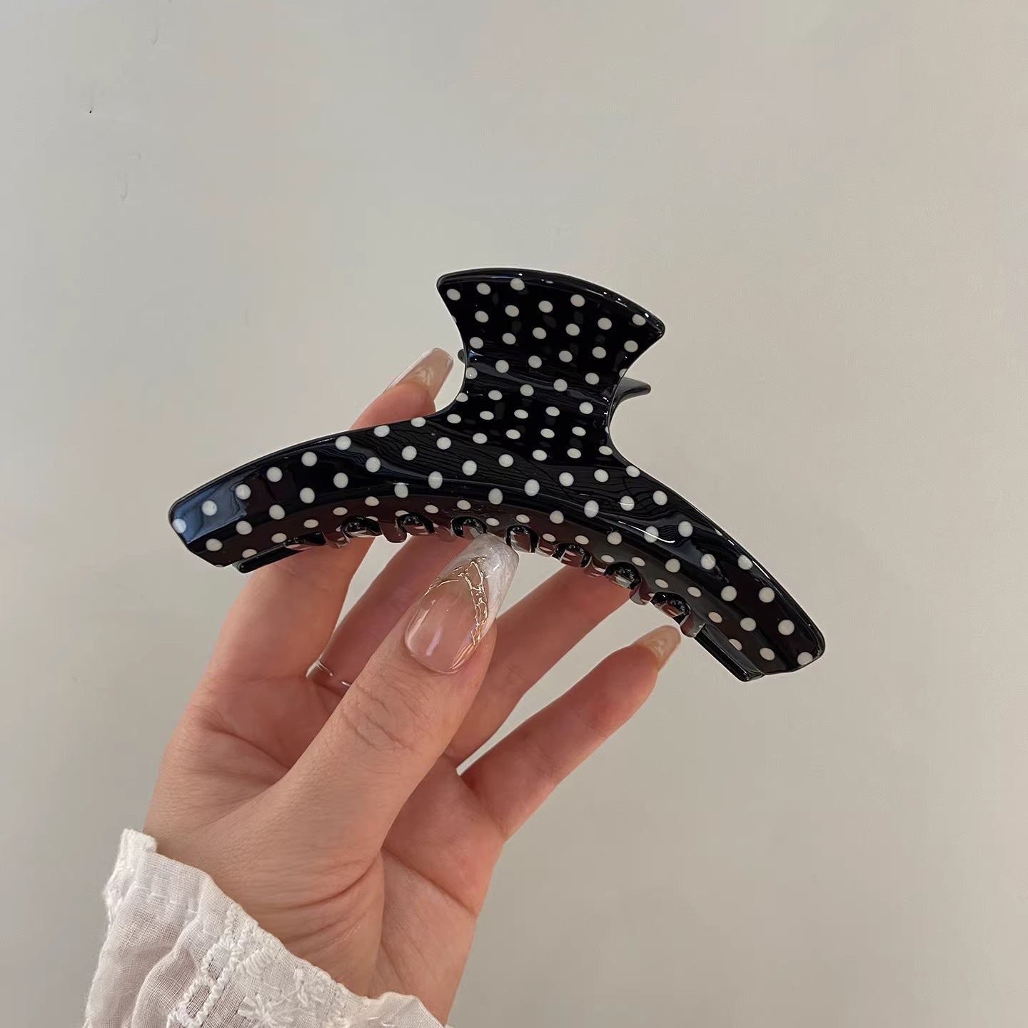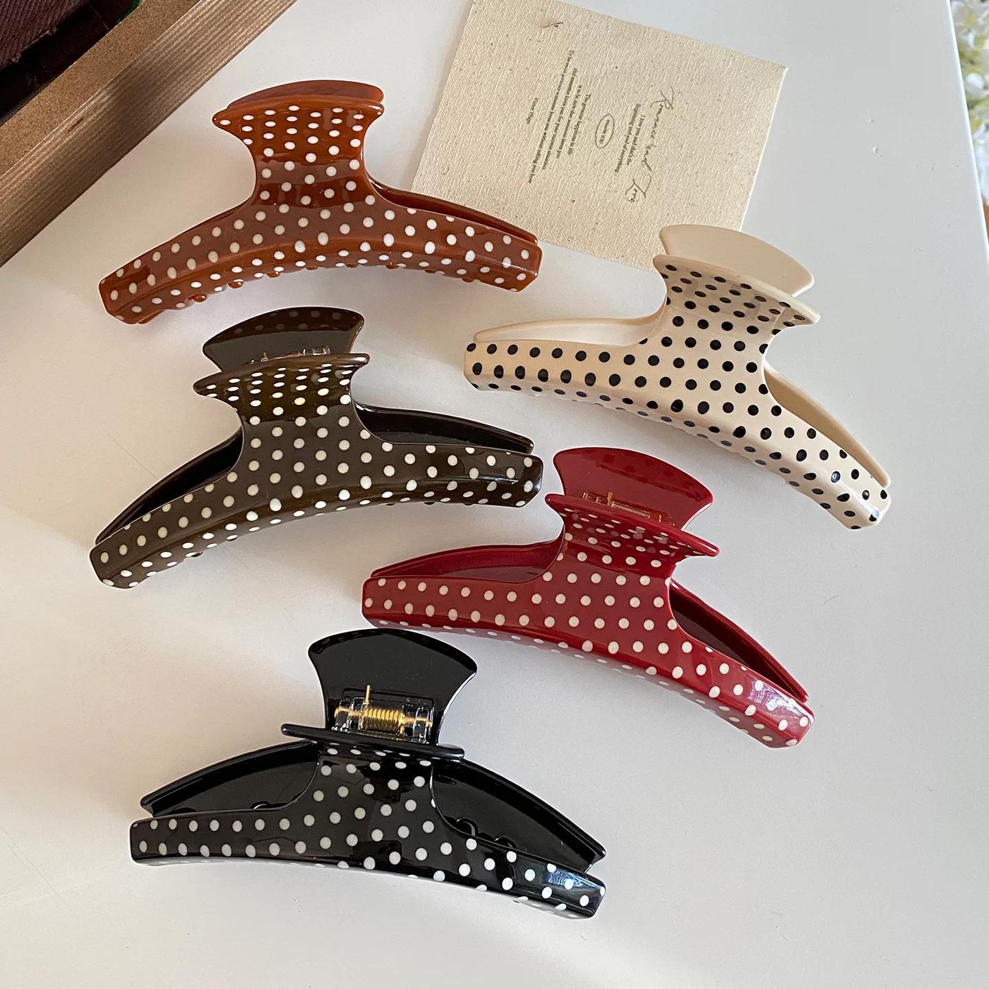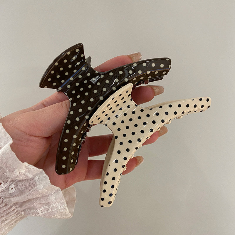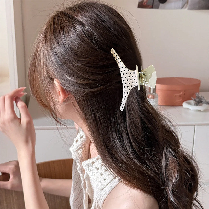 C廠【X137】法式波點弧形醋酸抓夾大號髮量多後腦勺髮抓鯊魚夾子頭飾盤髮夾女 26.04-3