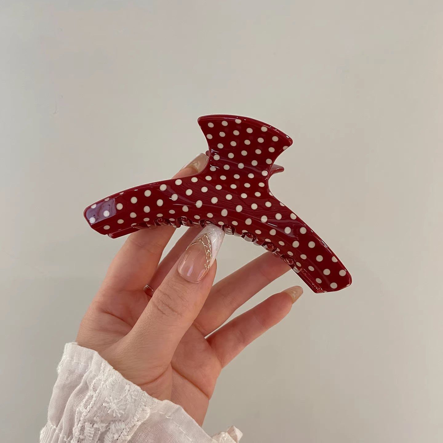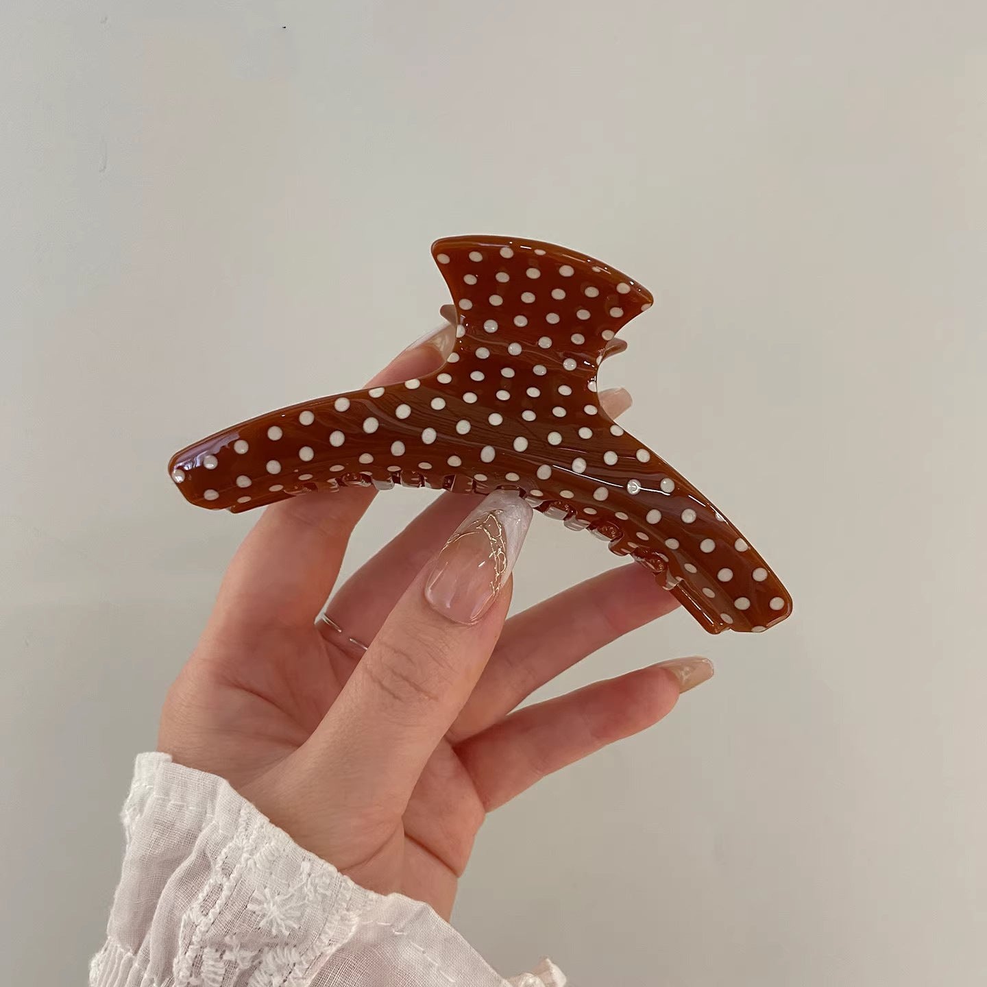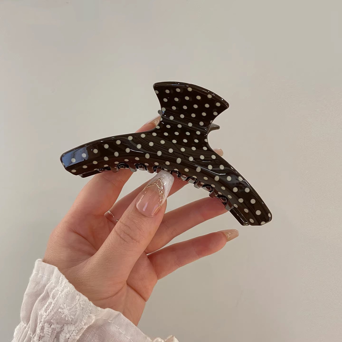 C廠【X137】法式波點弧形醋酸抓夾大號髮量多後腦勺髮抓鯊魚夾子頭飾盤髮夾女 26.04-3