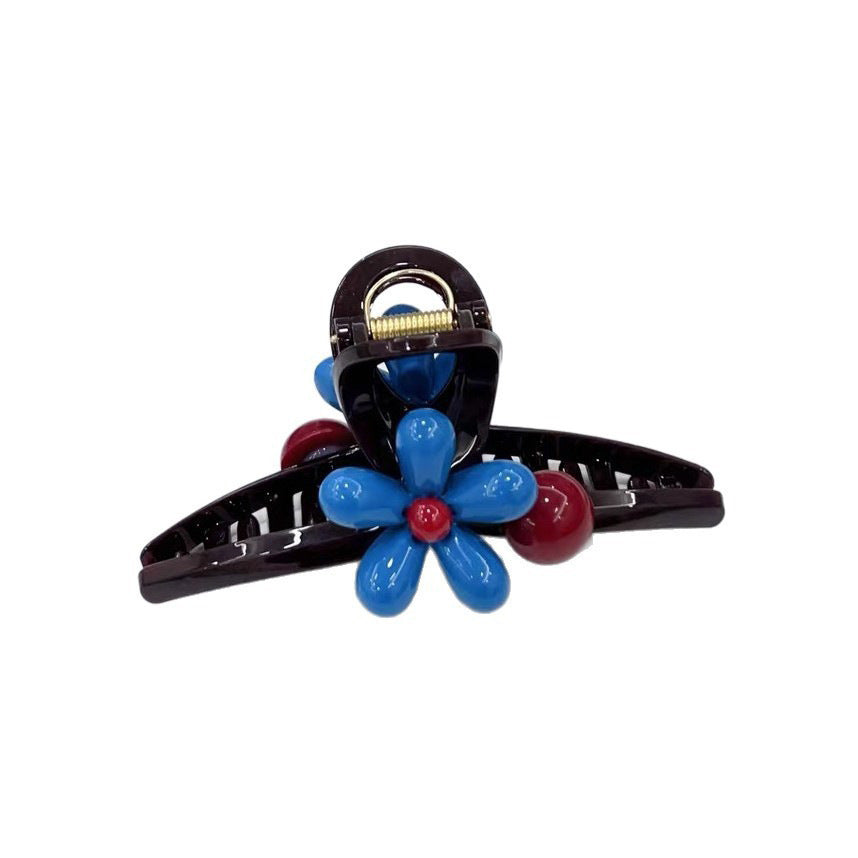 C廠【X82】藍色花朵紅珠抓夾女2026新款頭發鯊魚夾獨特盤髮夾高級感漂亮髮飾 26.04-3