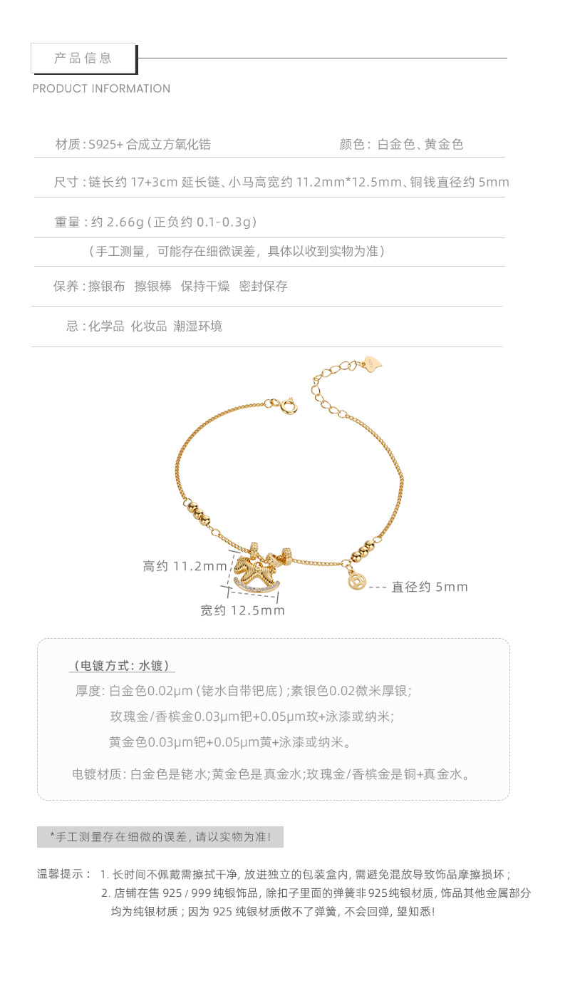 E廠【XDQ0028S】925純銀馬上有錢木馬手鍊中古風搖搖馬本命年生肖馬手飾 25.12-2