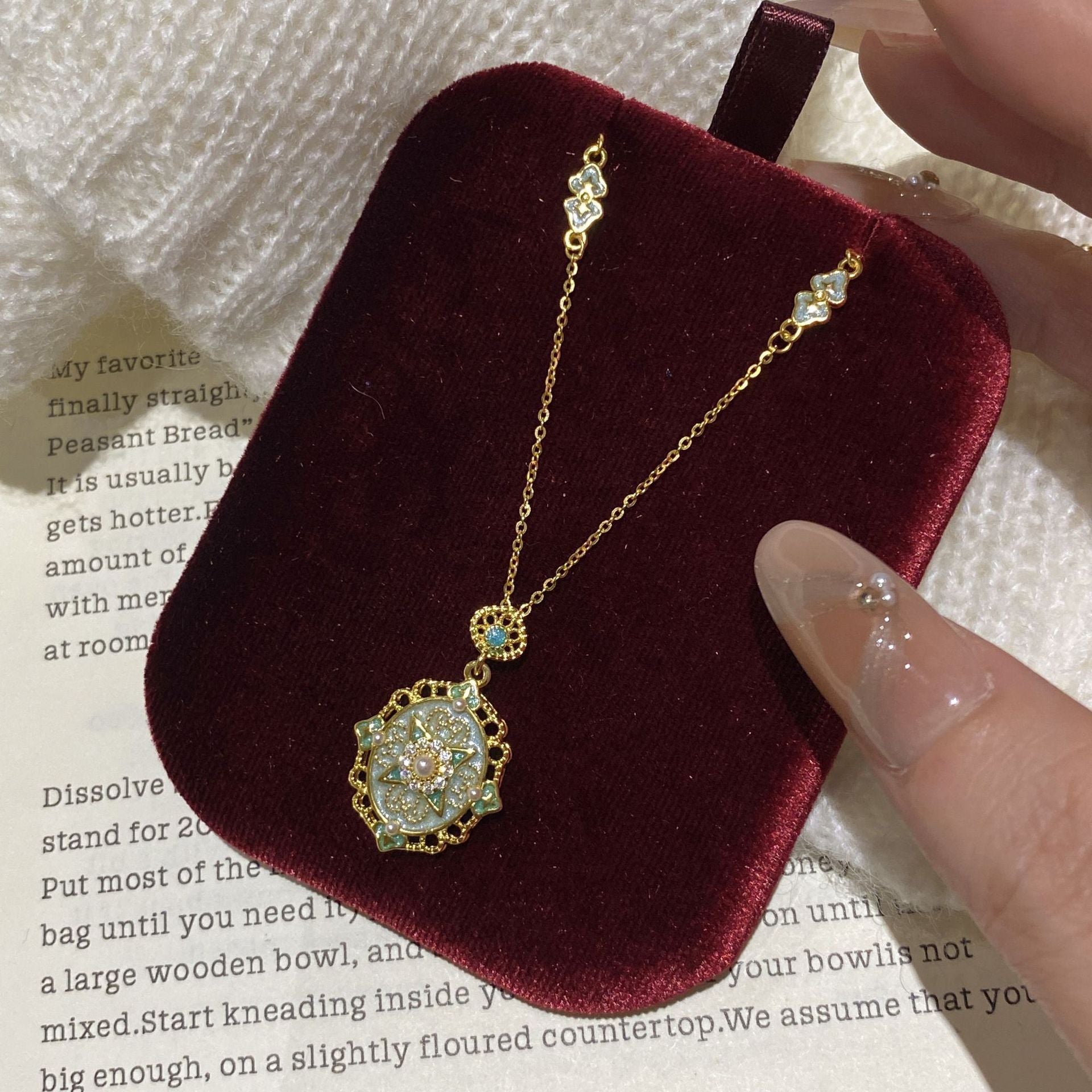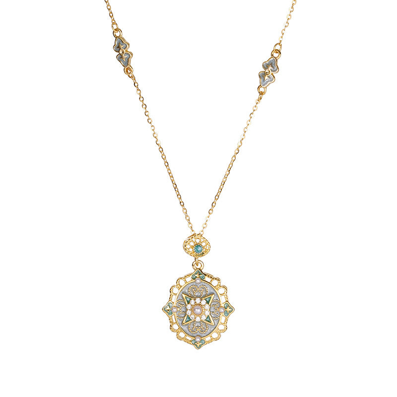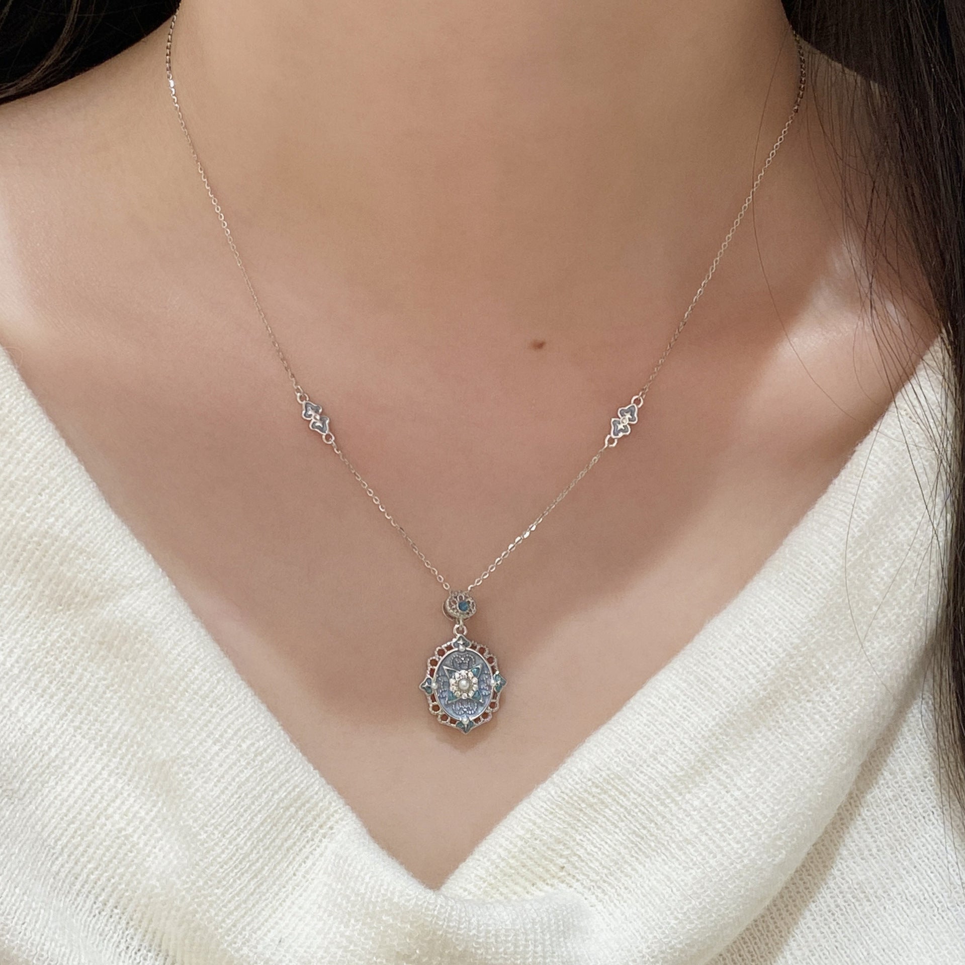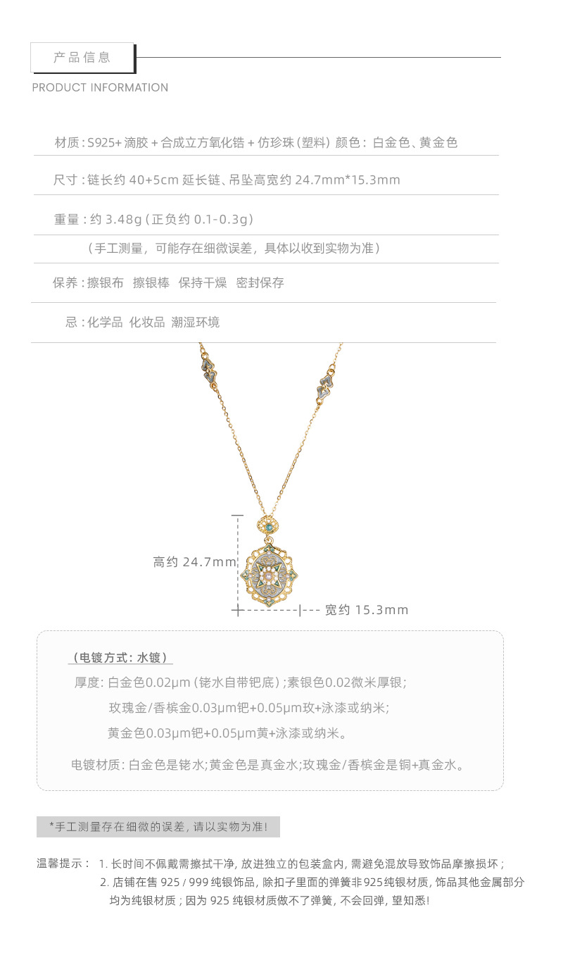 F廠【XDQ0046N】S925純銀復古宮廷風星芒琺瑯項鍊女高級感祥雲滴油氣質鎖骨鏈 25.11-1