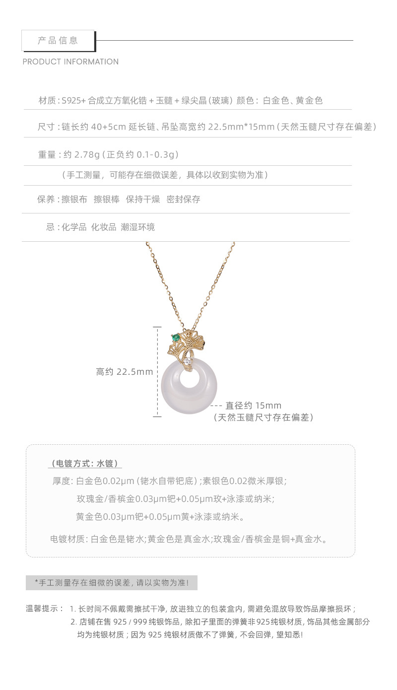 F廠【XDQ0059N】新中式輕奢小眾銀杏玉髓項鍊S925純銀精緻氣質平安扣鎖骨鍊女 25.11-1