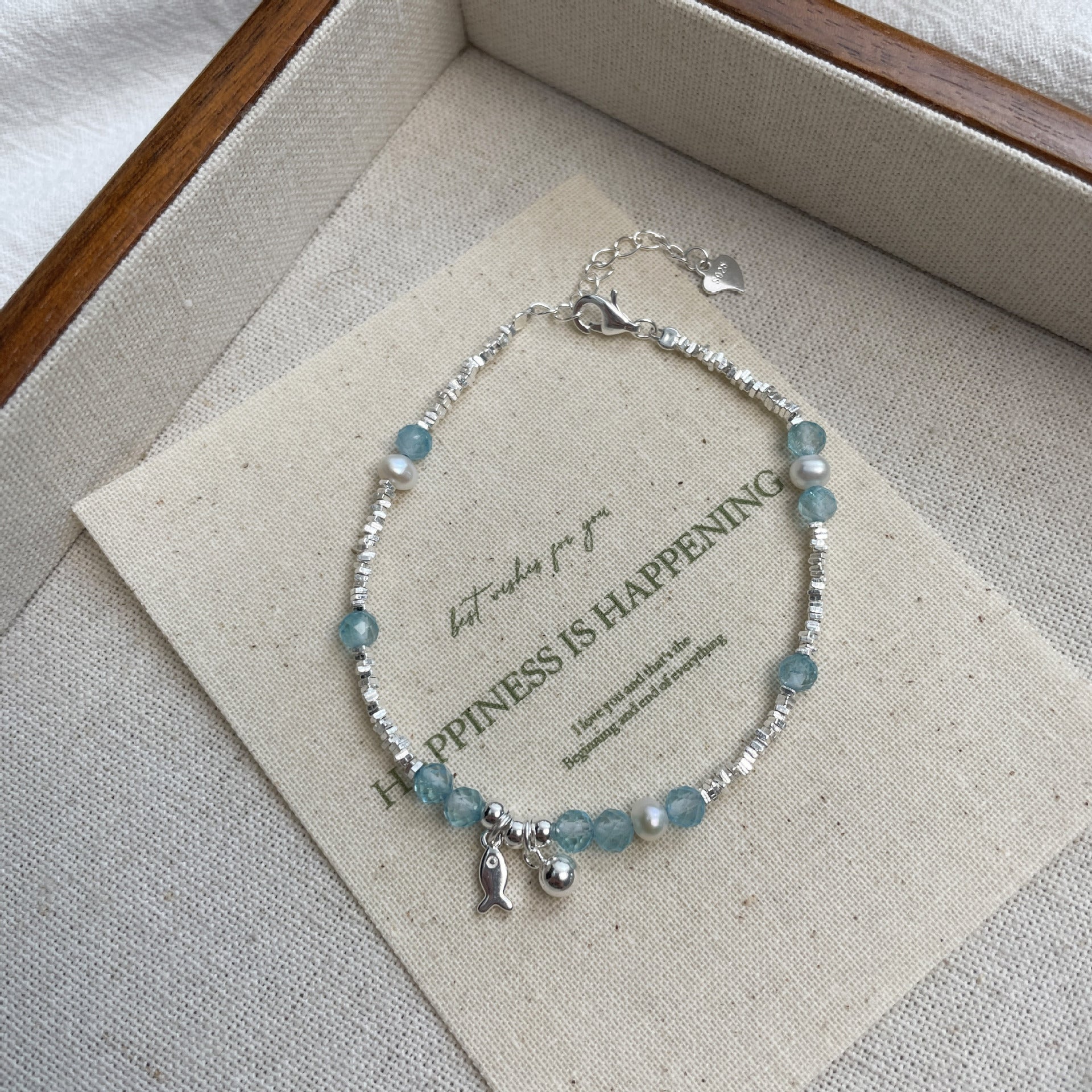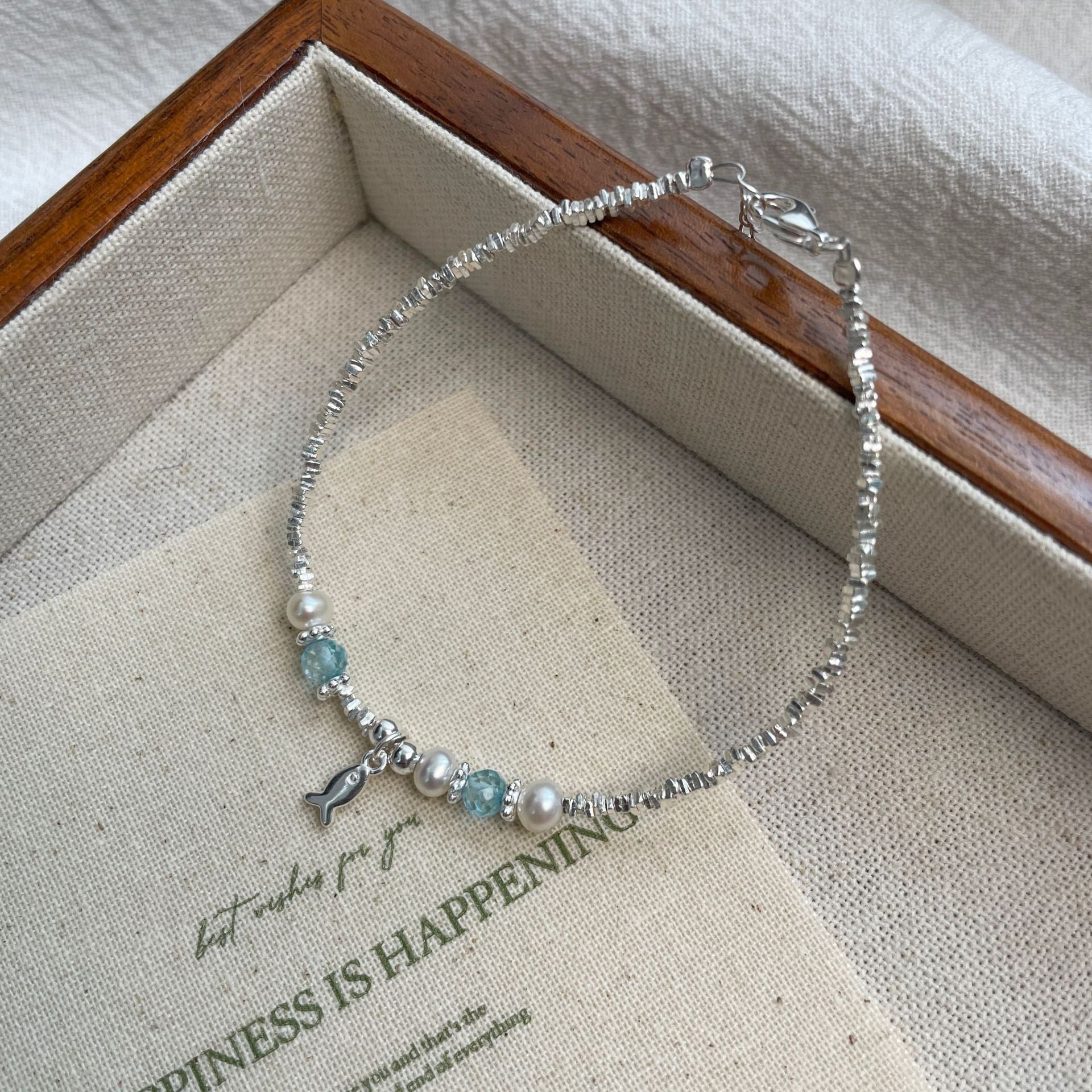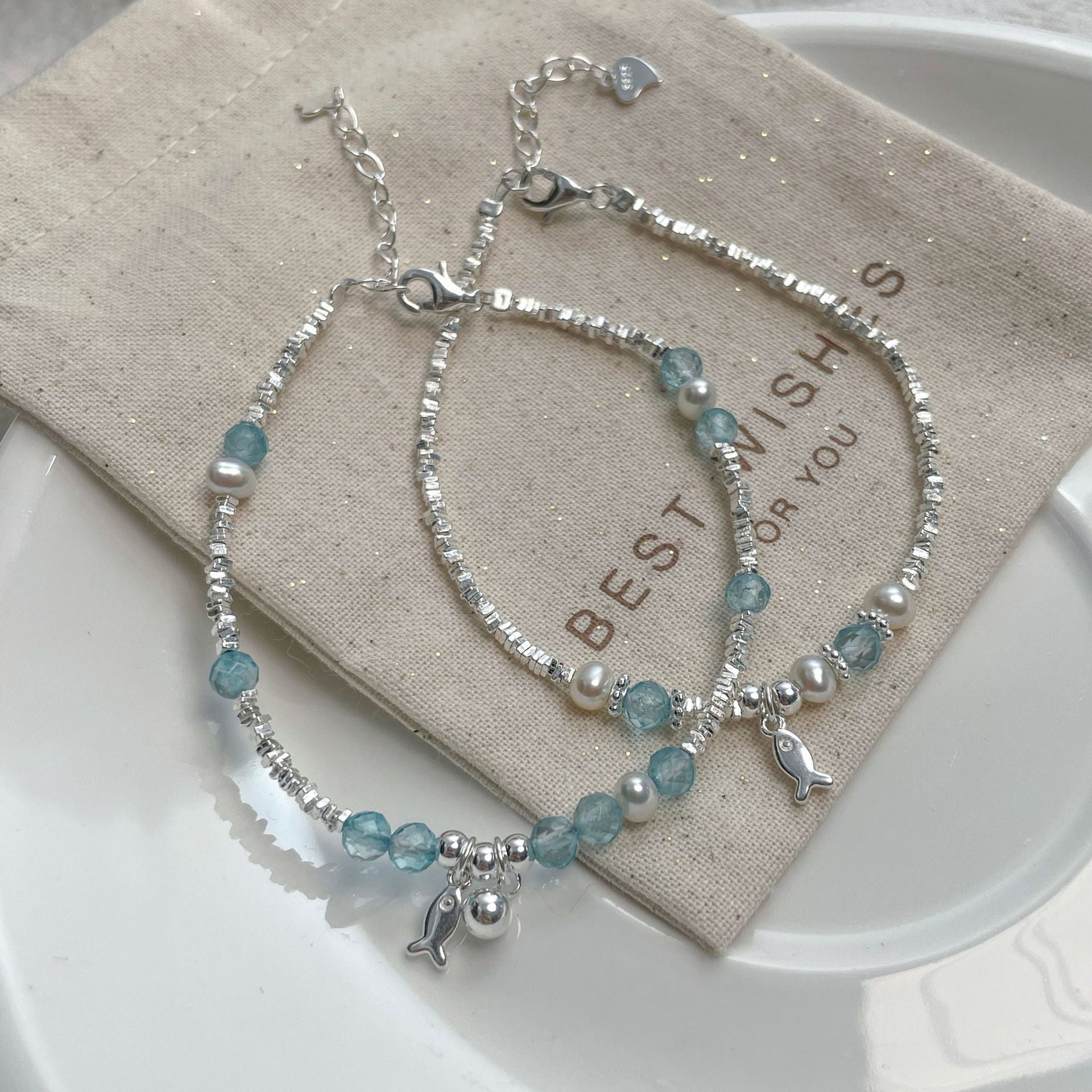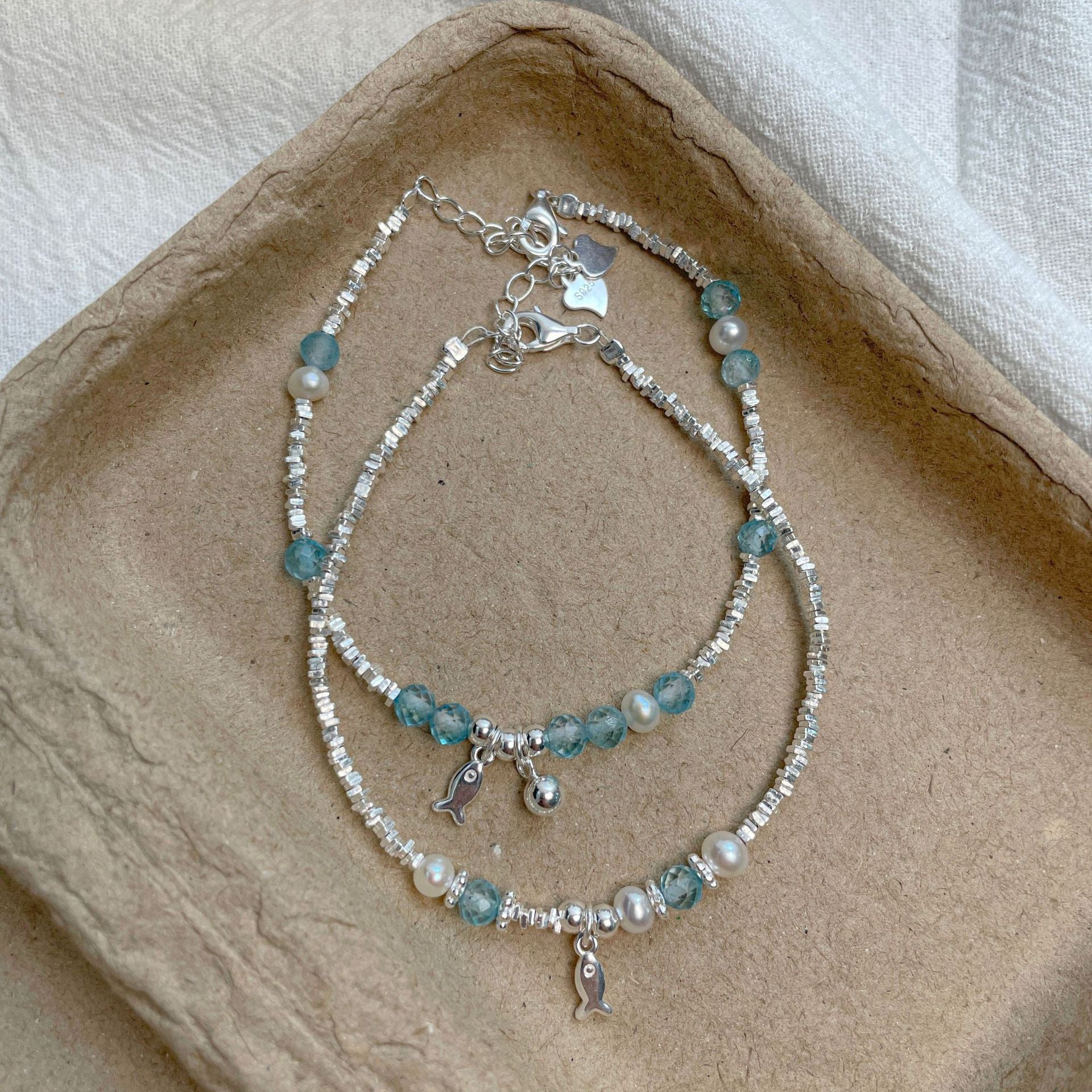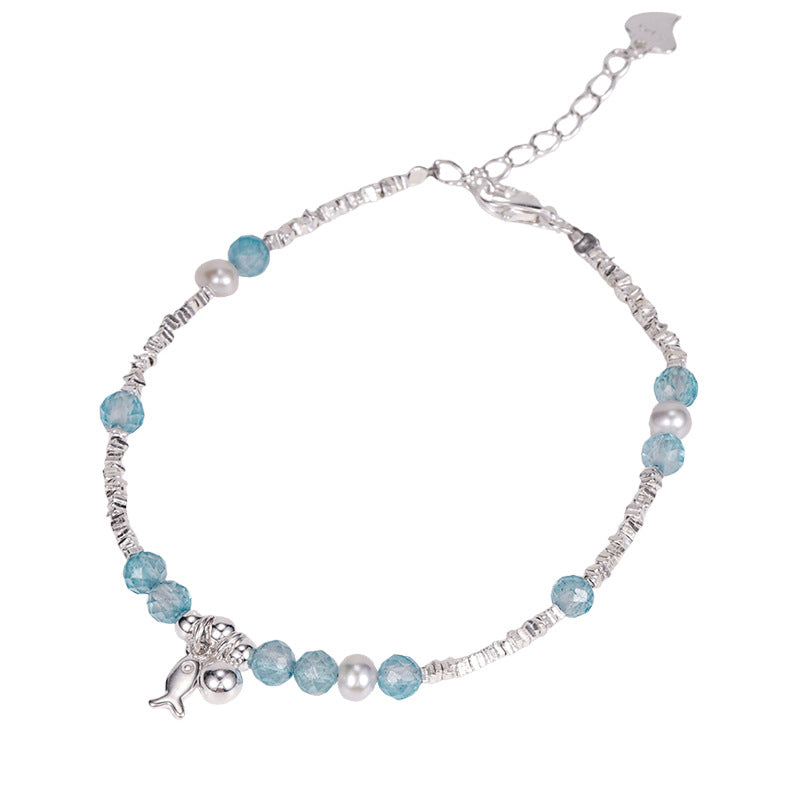 E廠【XDQ0060S】小眾精緻S925純銀藍托帕小魚手鍊女輕奢碎銀子氣質百搭手飾品 26.04-3
