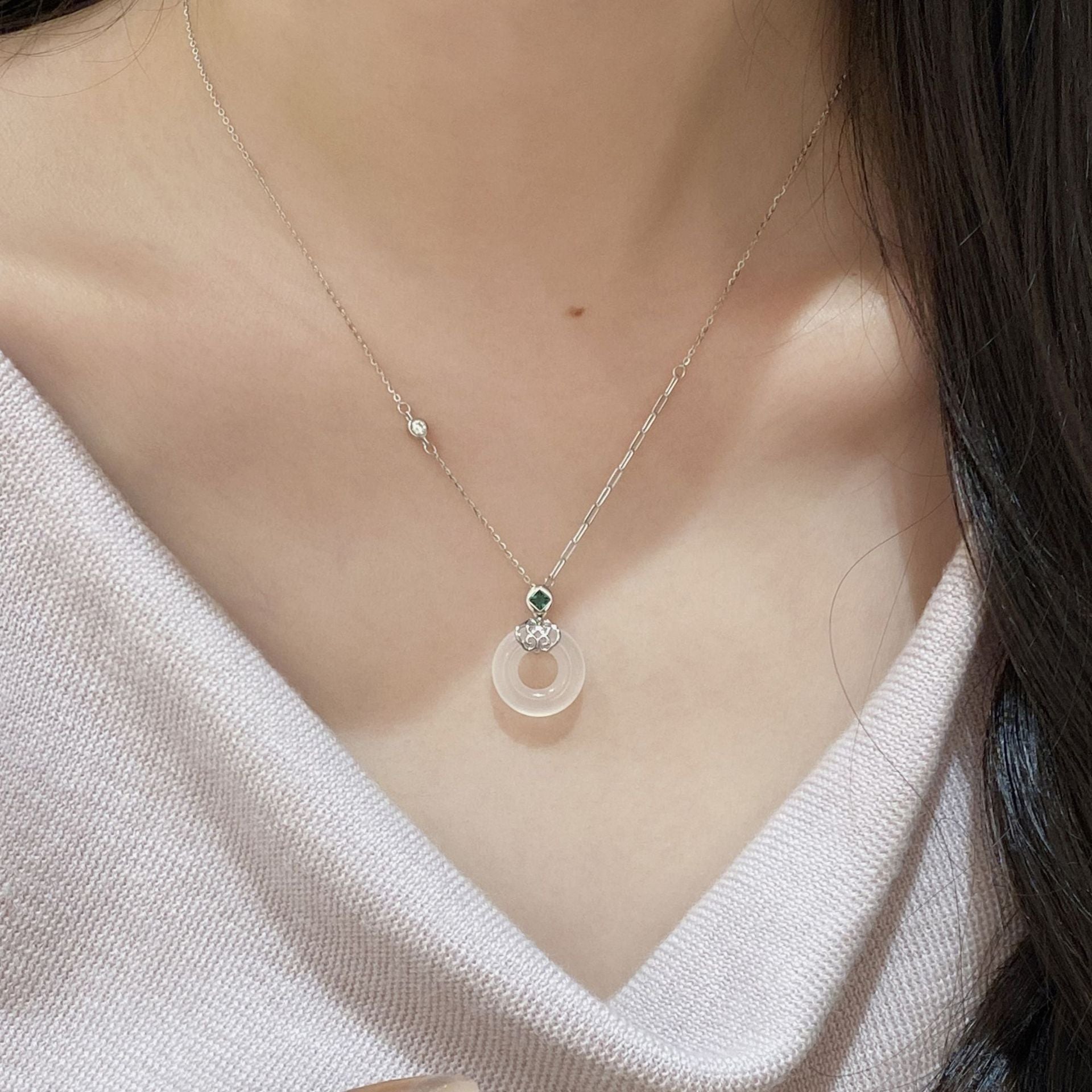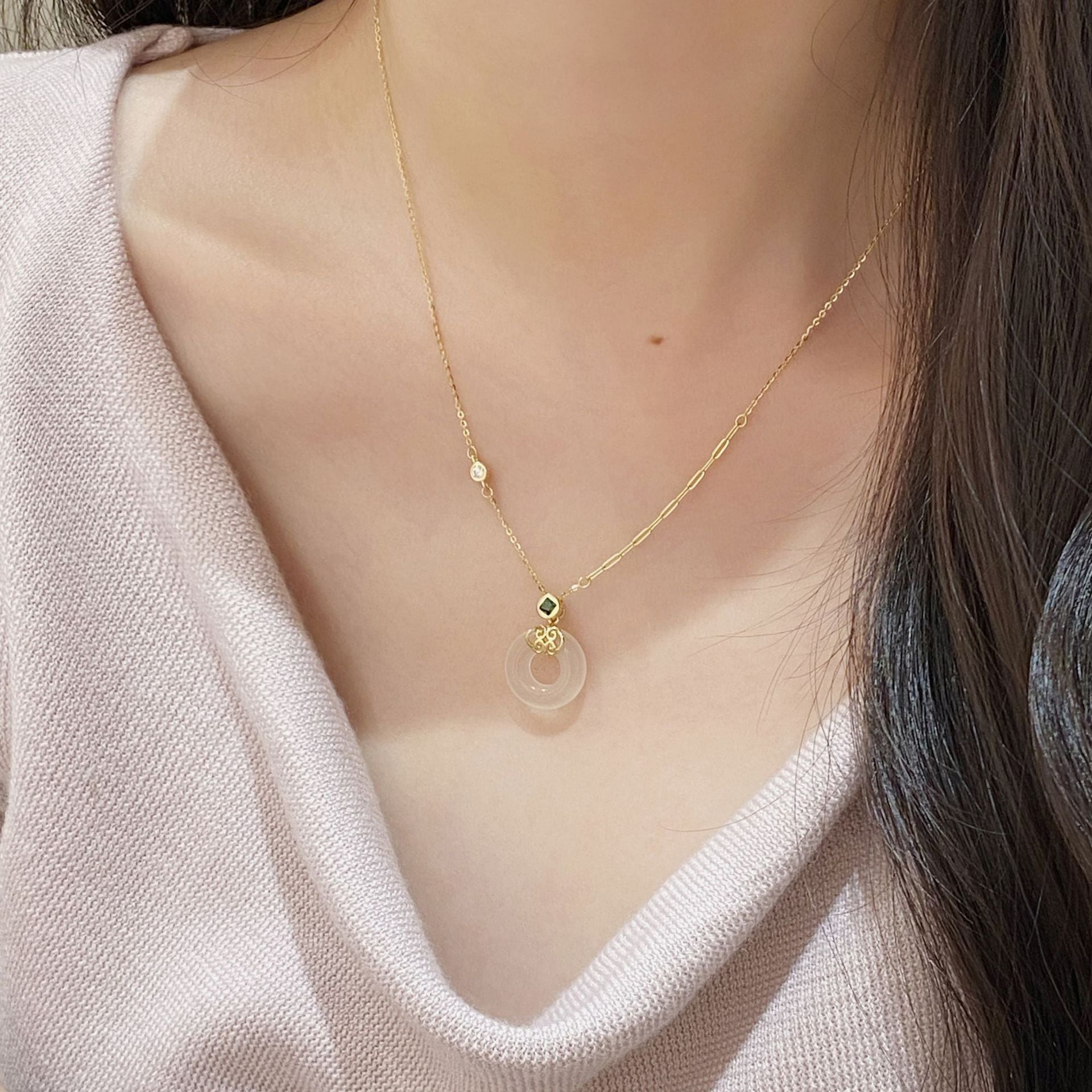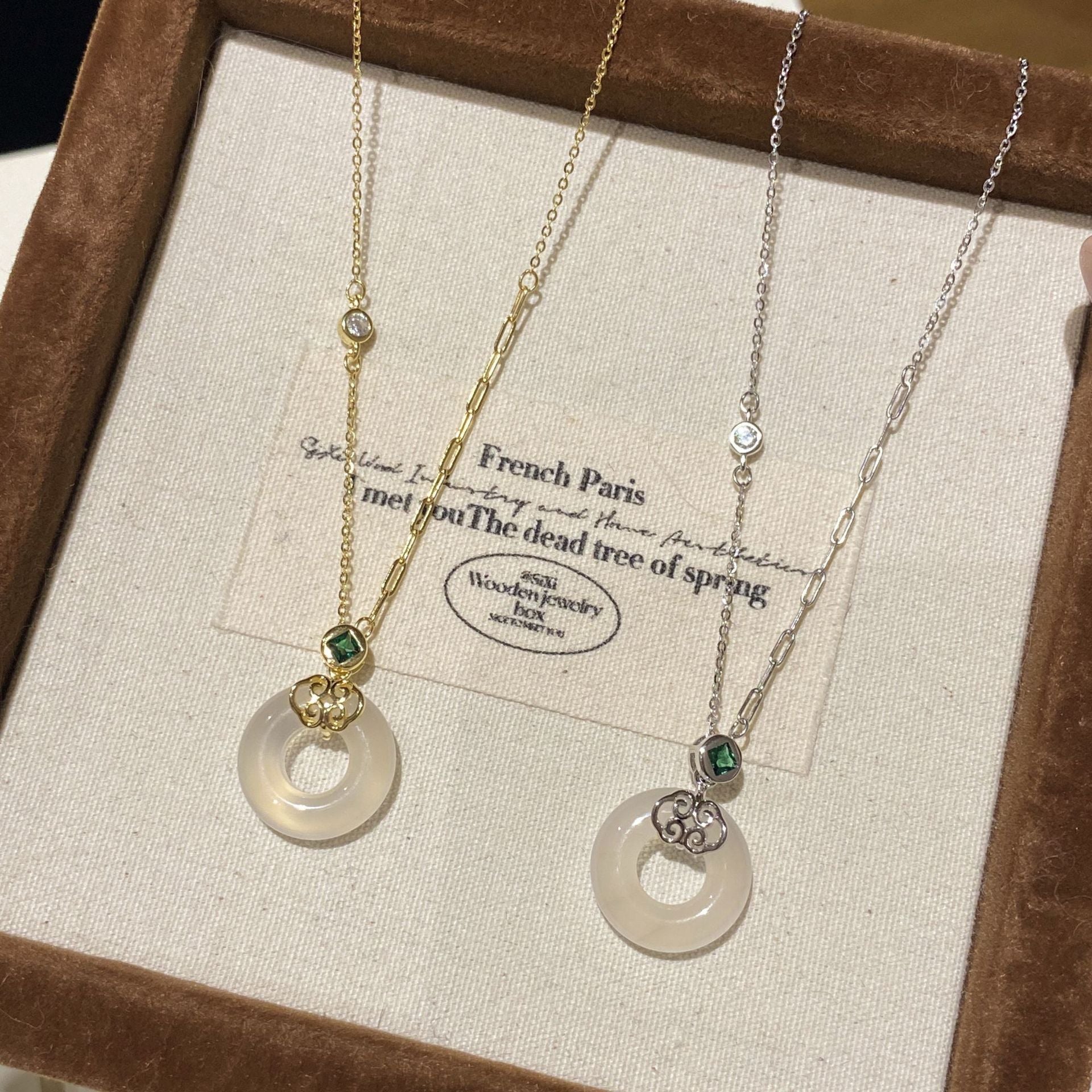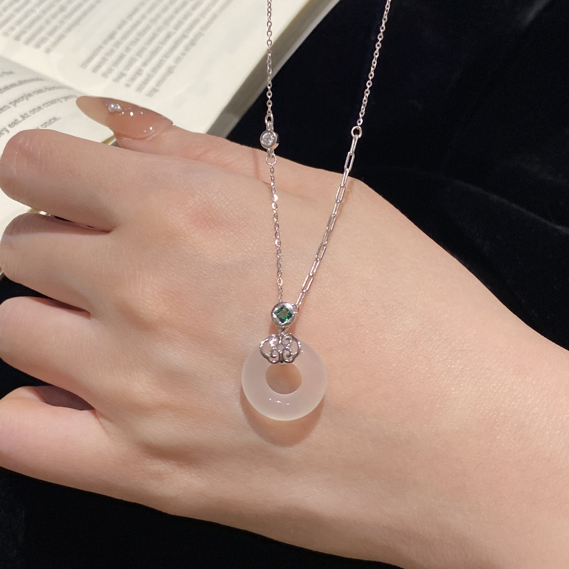 F廠【XDQ0071N】新中式S925純銀祥雲平安扣項鍊女小眾高級感白玉髓鎖骨鏈百搭 25.11-1