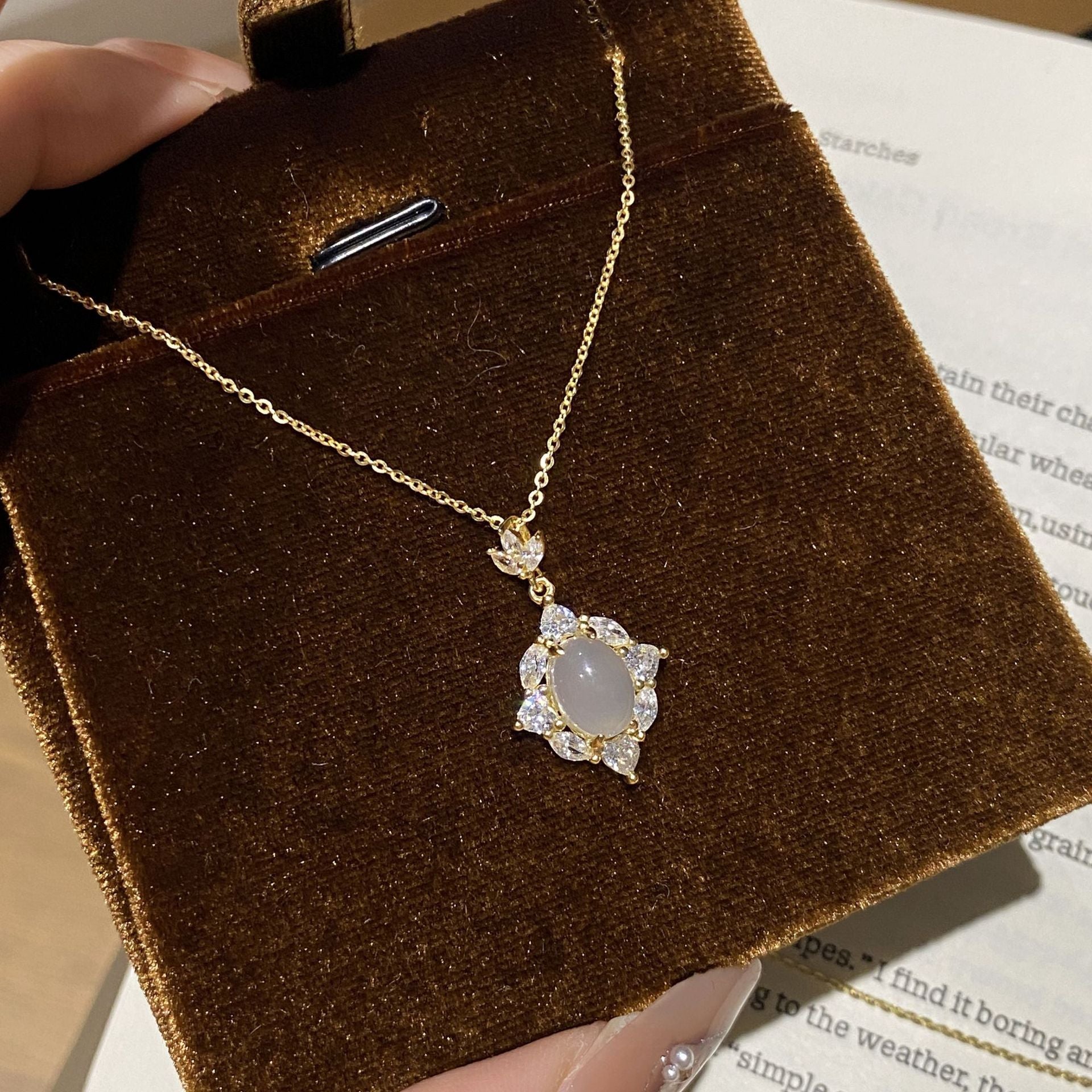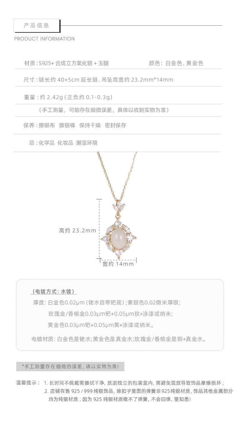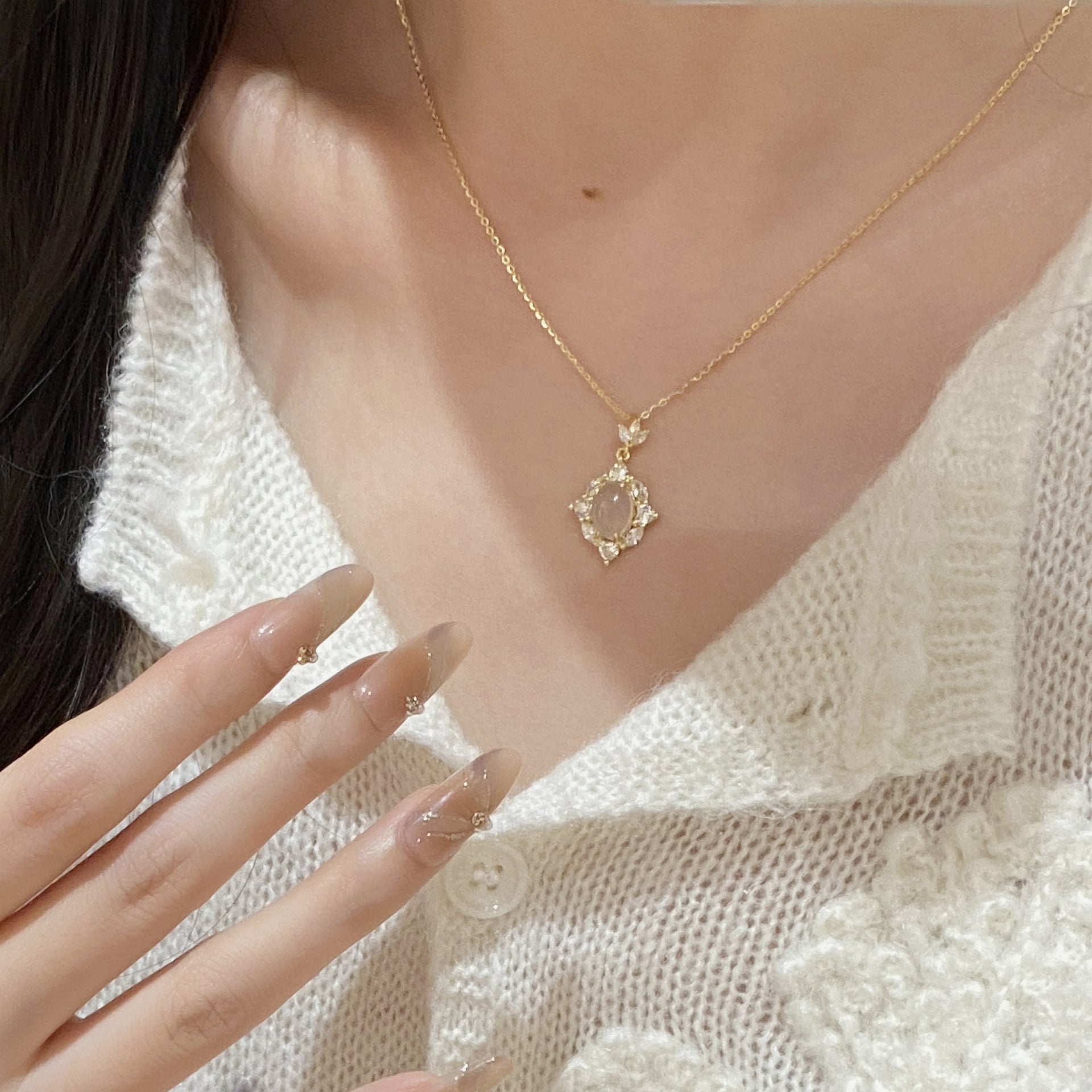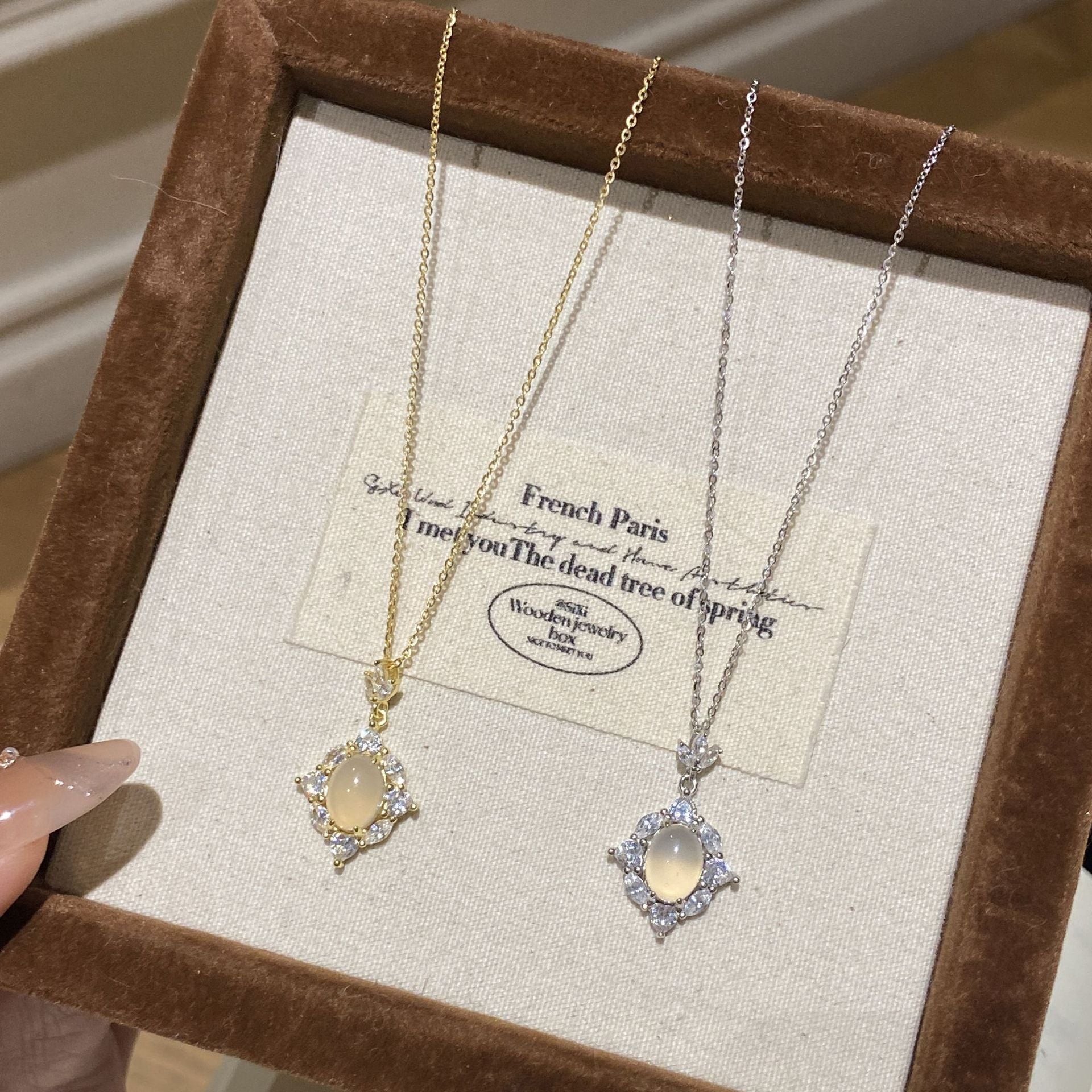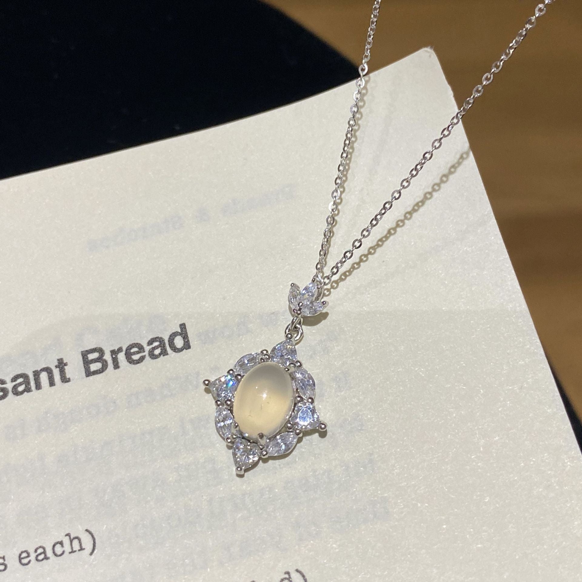 F廠【XDQ0076N】輕奢精緻蛋形白玉髓項鍊S925純銀秋冬高級感閃鋯鎖骨鍊女 25.11-1