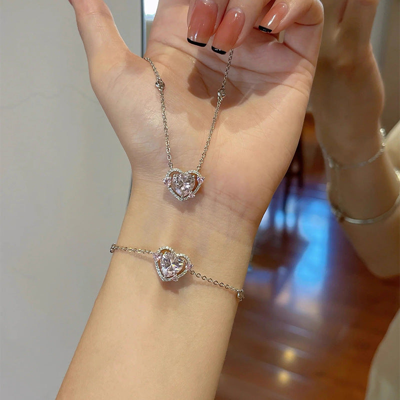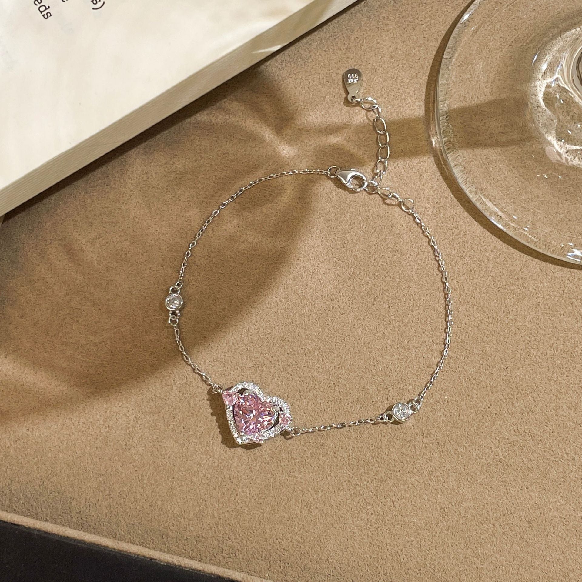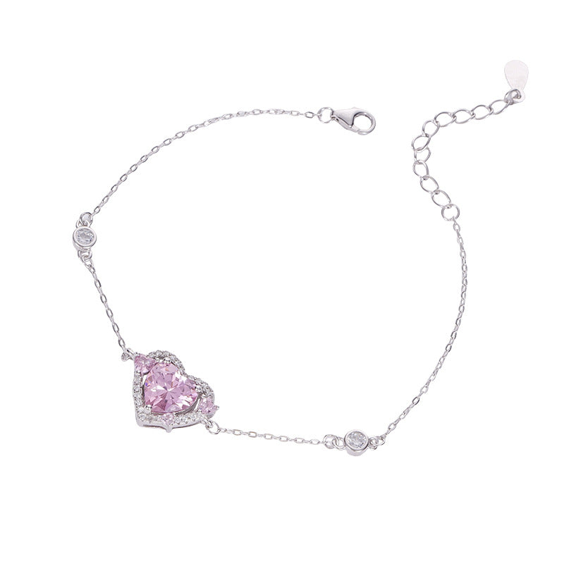 F廠【XDQ0077S】S999純銀輕奢守護之心粉鑽手鍊女高級感怦然心動鋯石愛心手飾 25.10-5