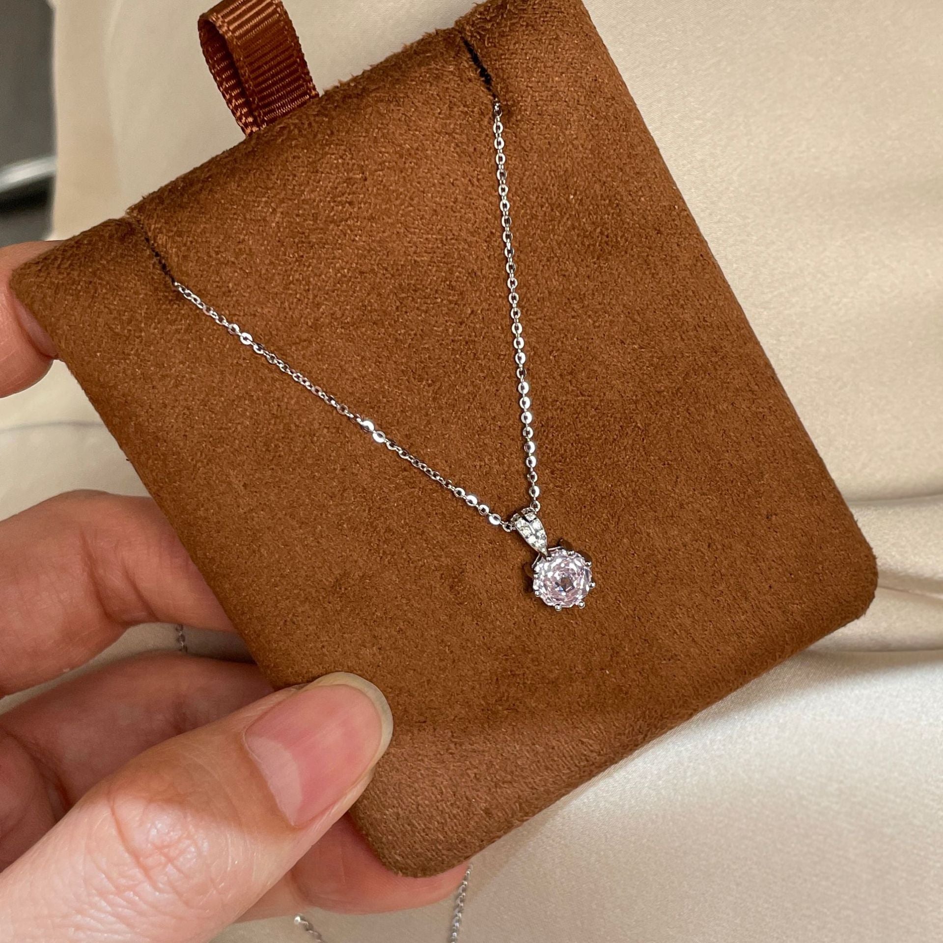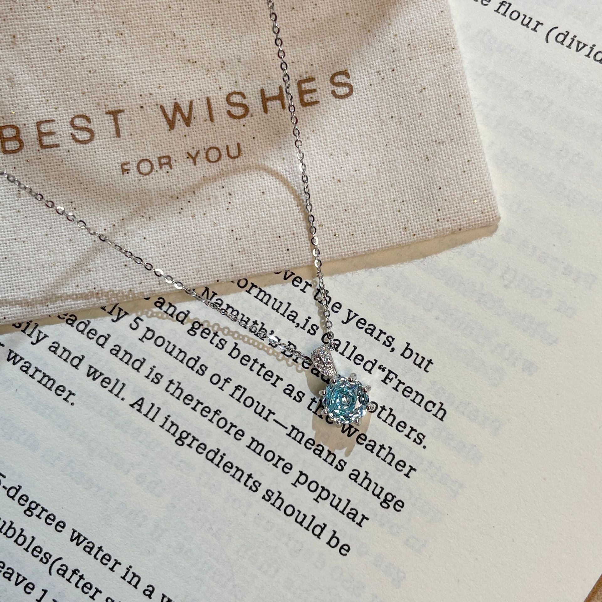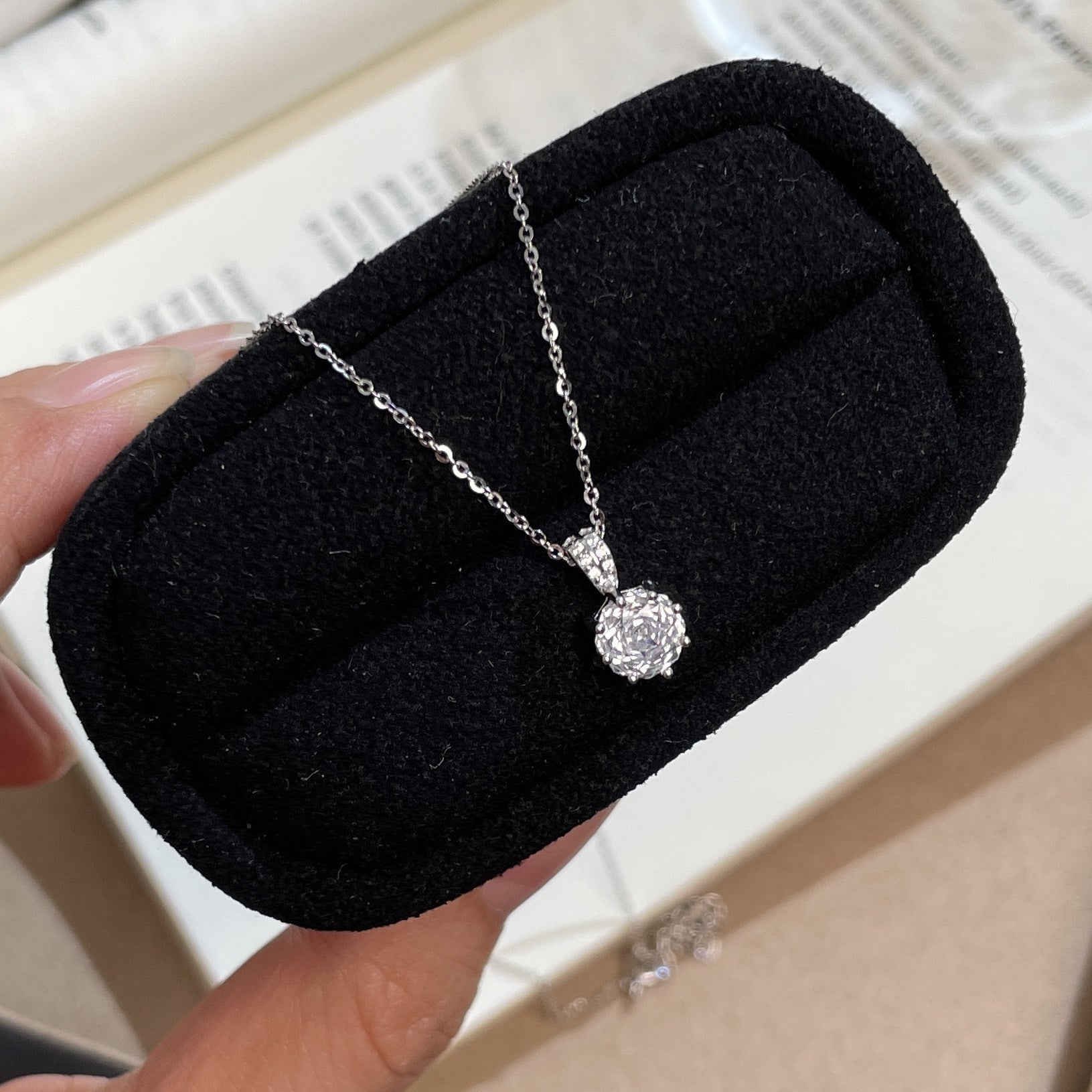 F廠【XDQ0079N】S925純銀千禧玫瑰切閃鑽項鍊女輕奢高級感鋯石單鑽精緻鎖骨鏈 25.11-1
