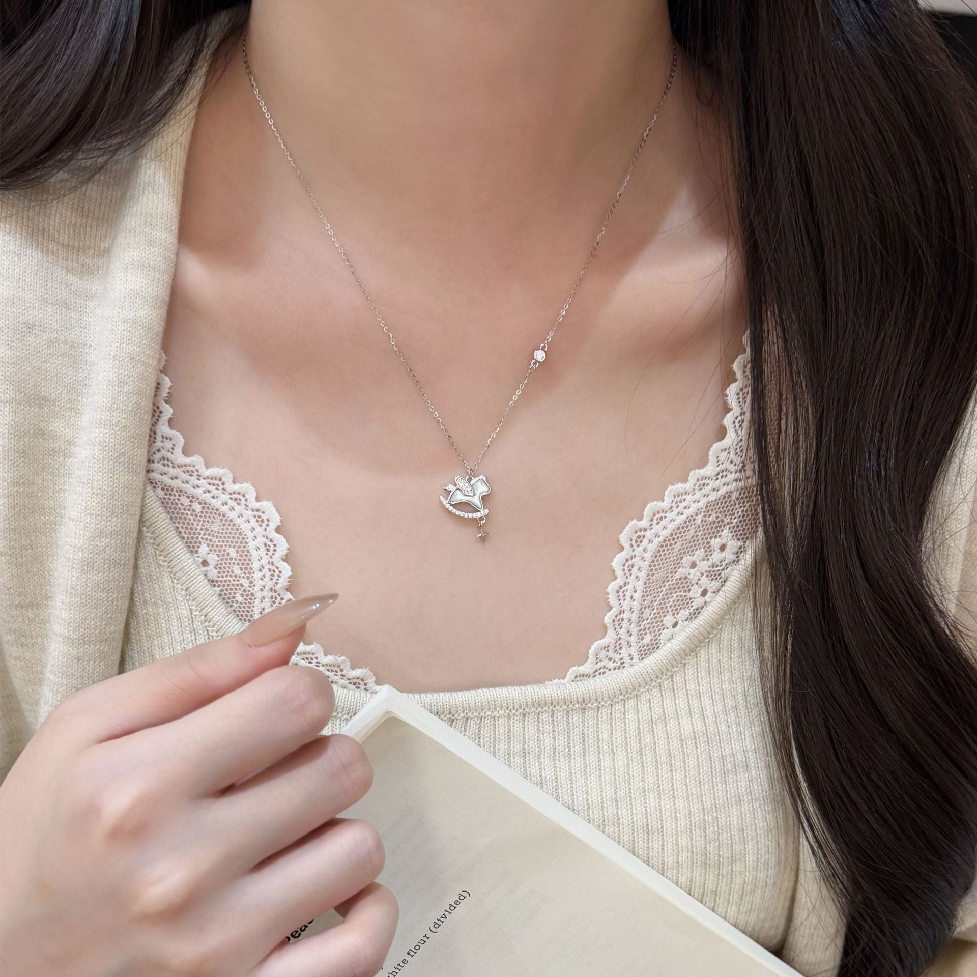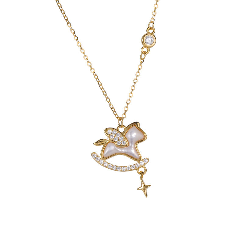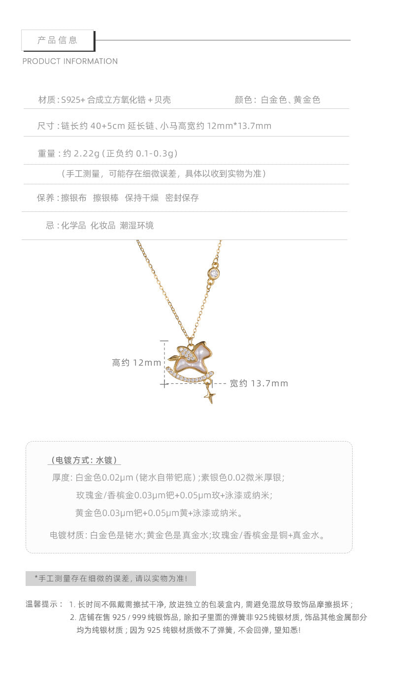 E廠【XDQ0230N】925純銀天使木馬項鍊女小眾設計百搭2026年本命年鎖骨鏈 25.12-2