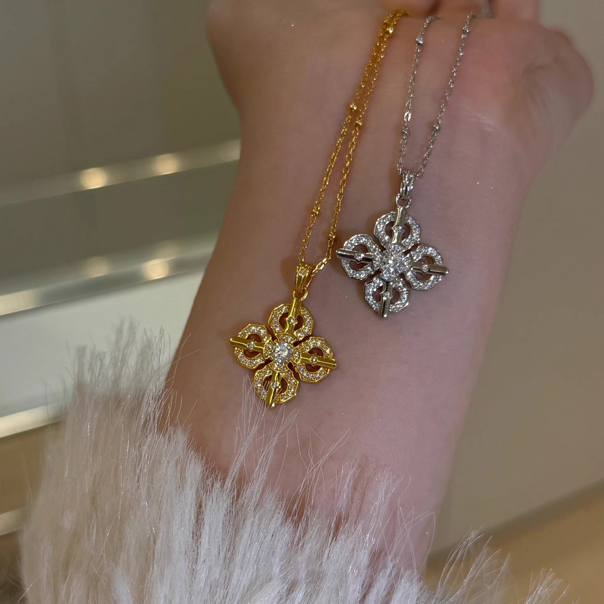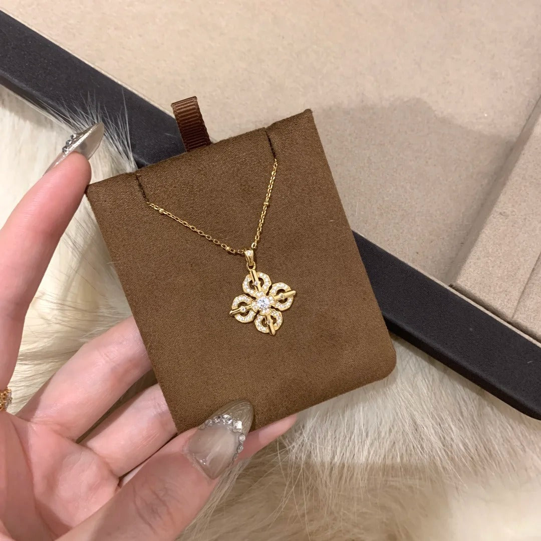 F廠【XDQ0301N】精工輕奢S925純銀十字金剛杵項鍊女高級感鑲鑽四葉草鎖骨鏈潮 25.11-1