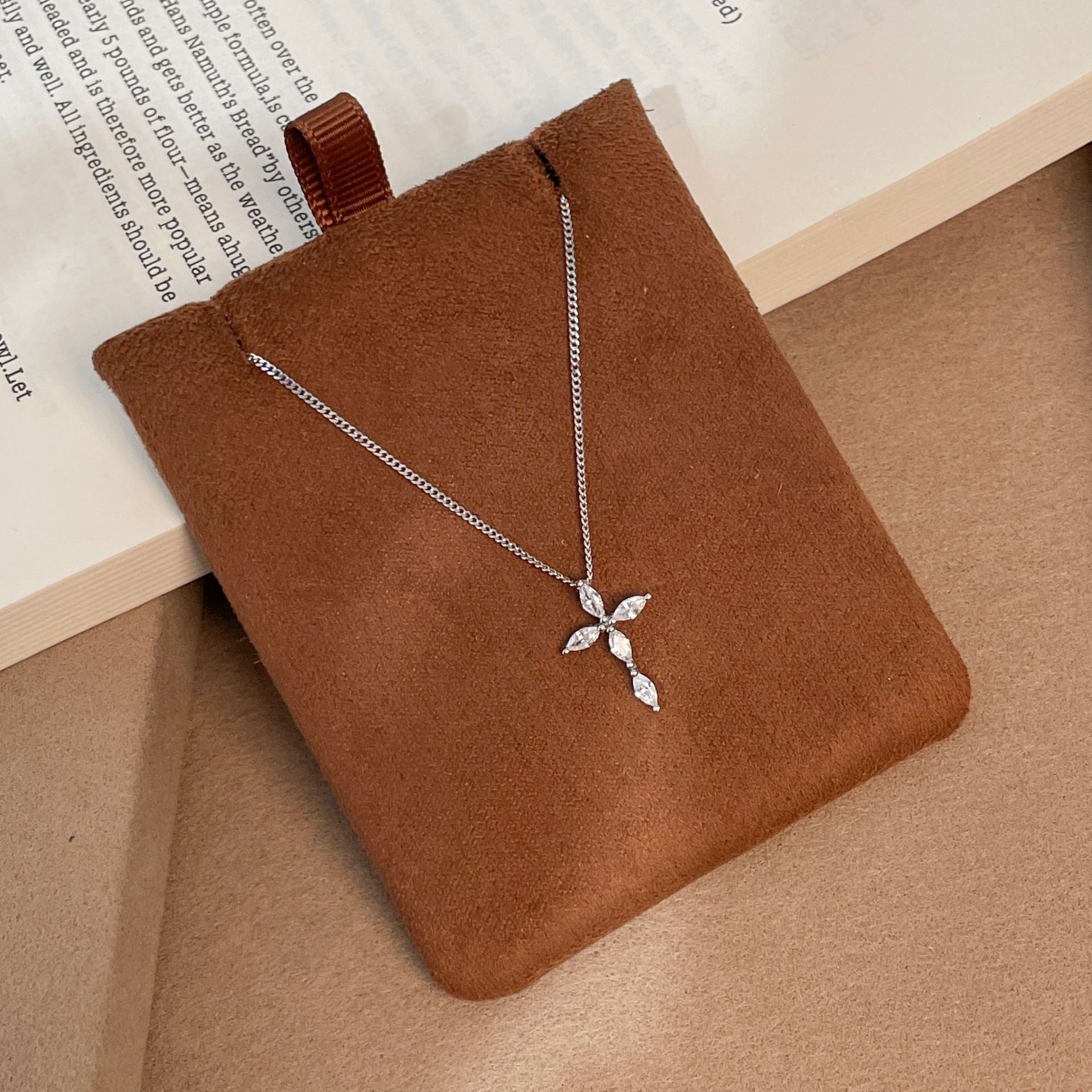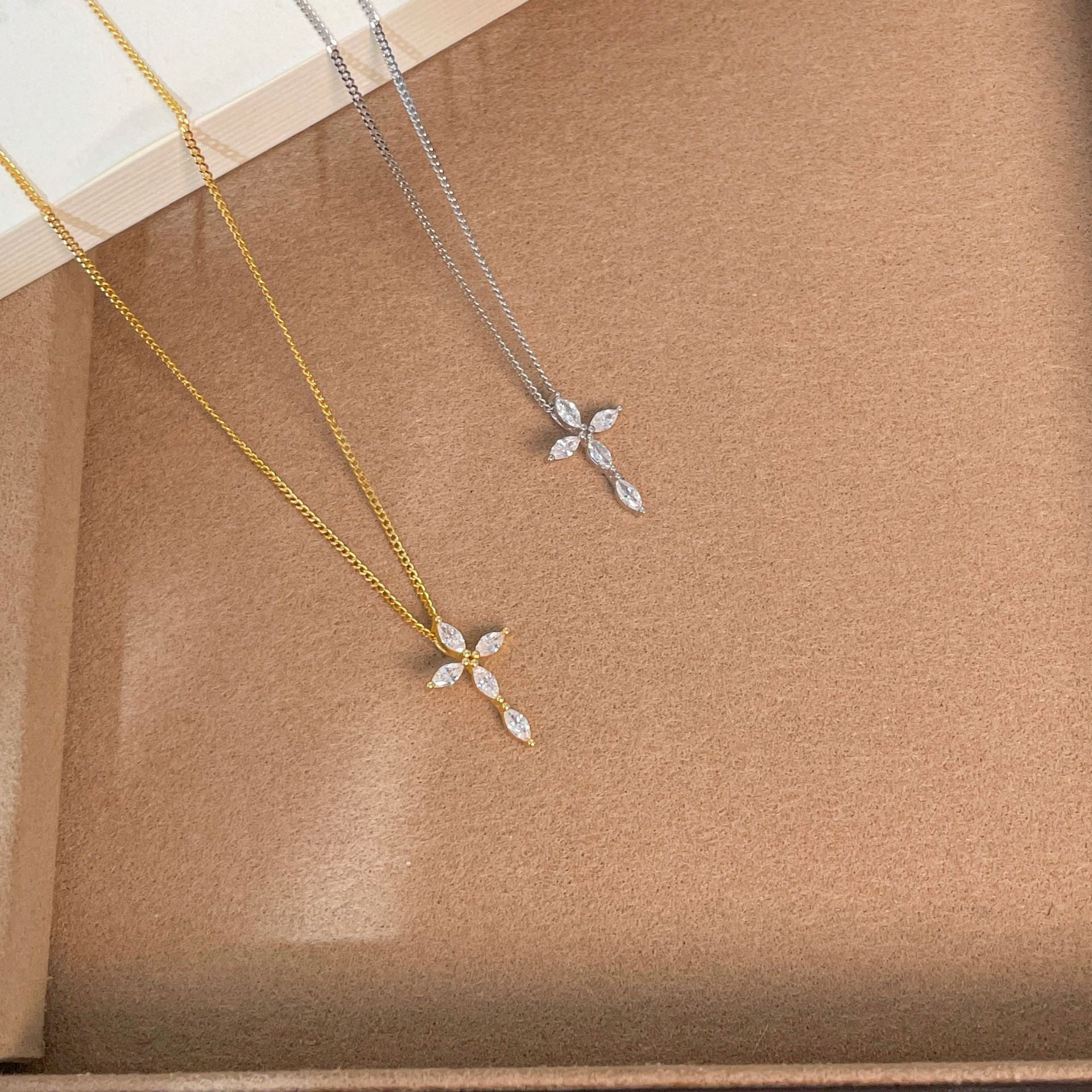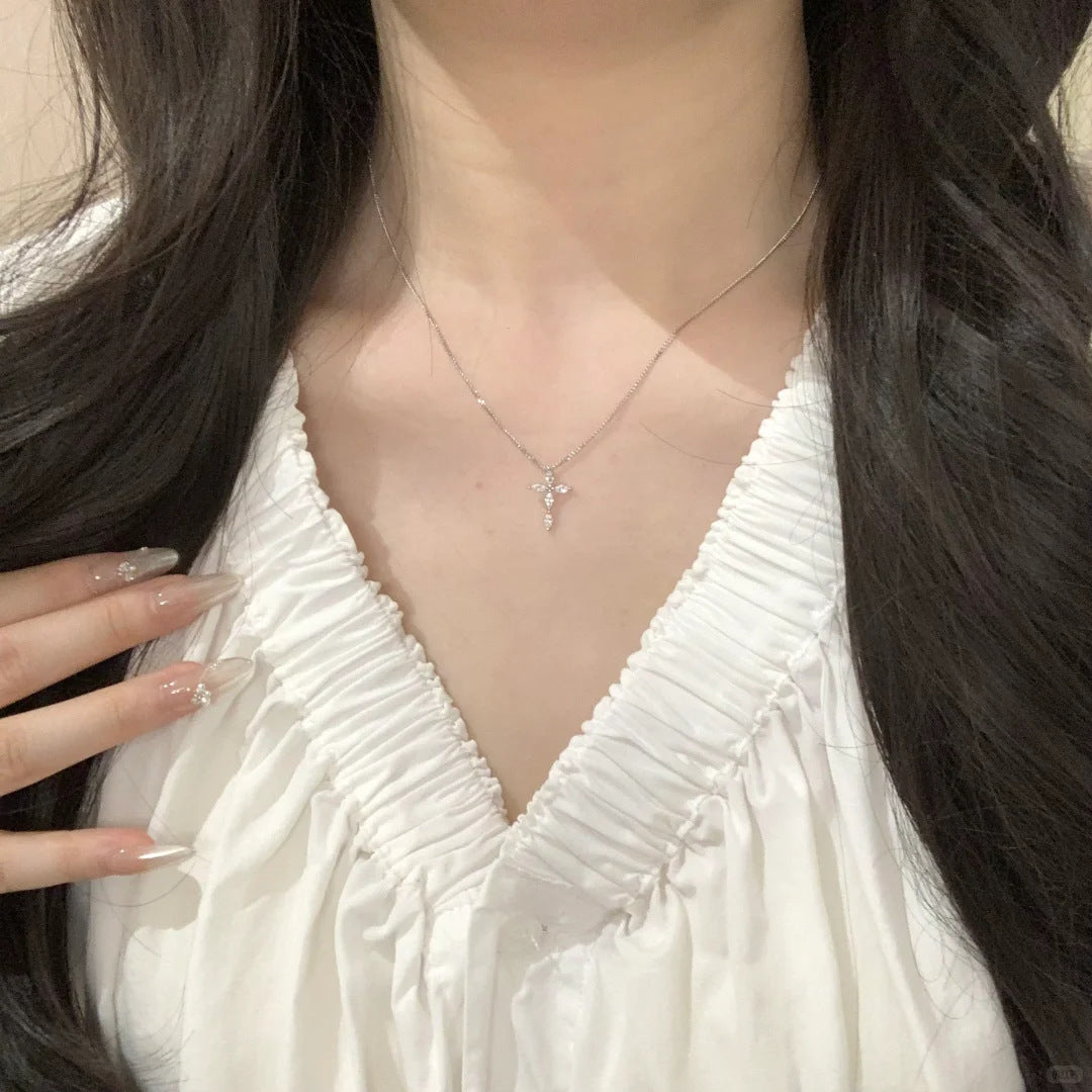 E廠【XDQ0337N】S925純銀日韓精緻菱形鋯石十字架項鍊女復古精緻ins鎖骨鏈潮 26.01-1