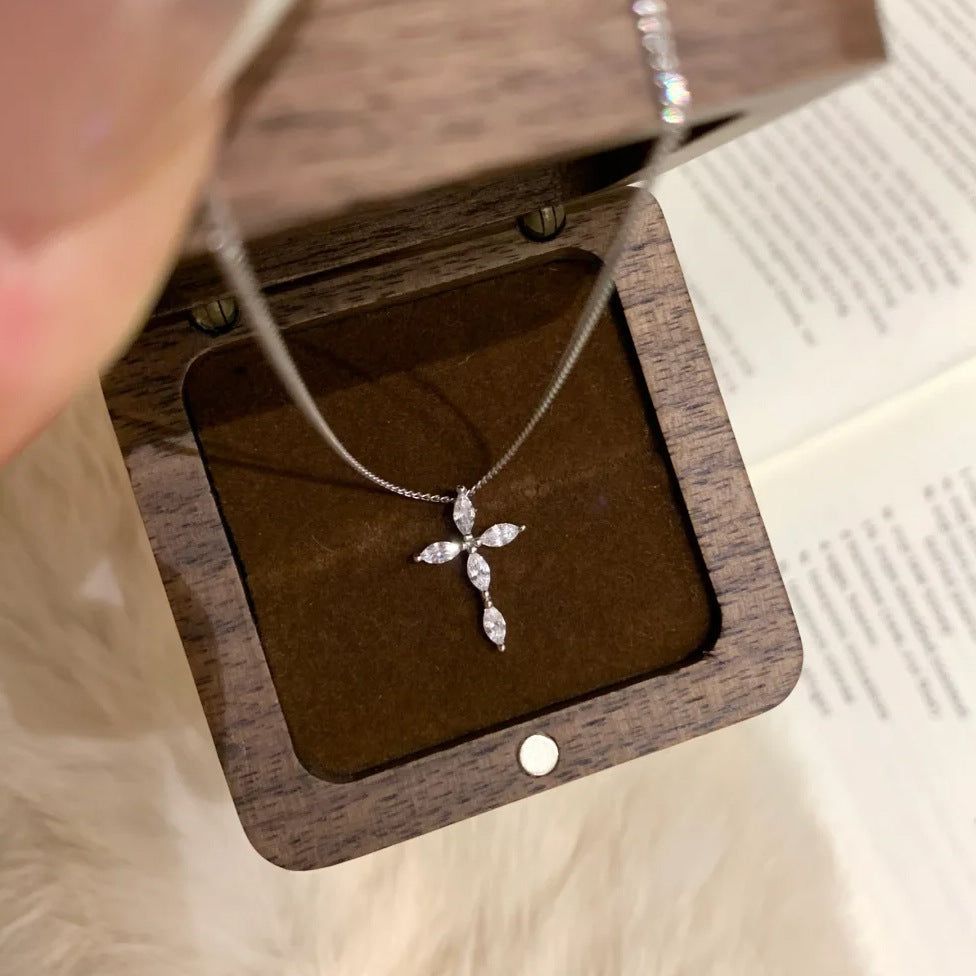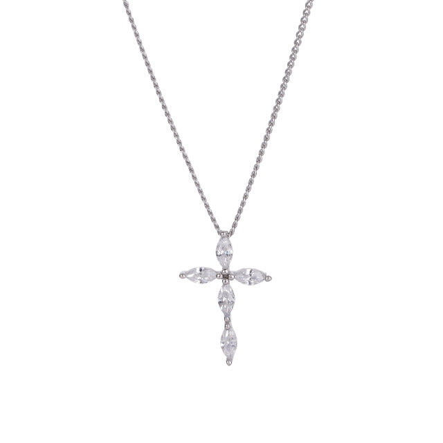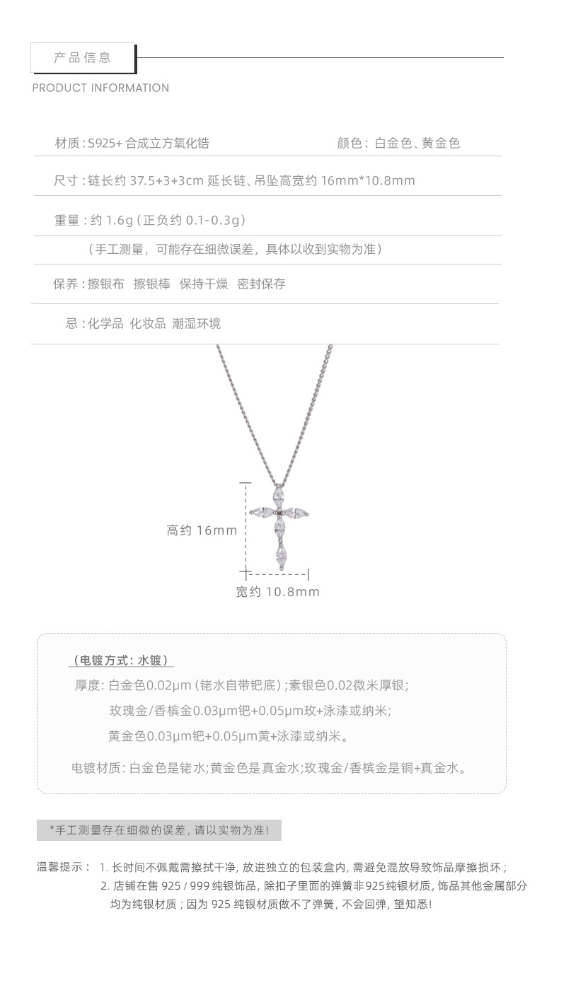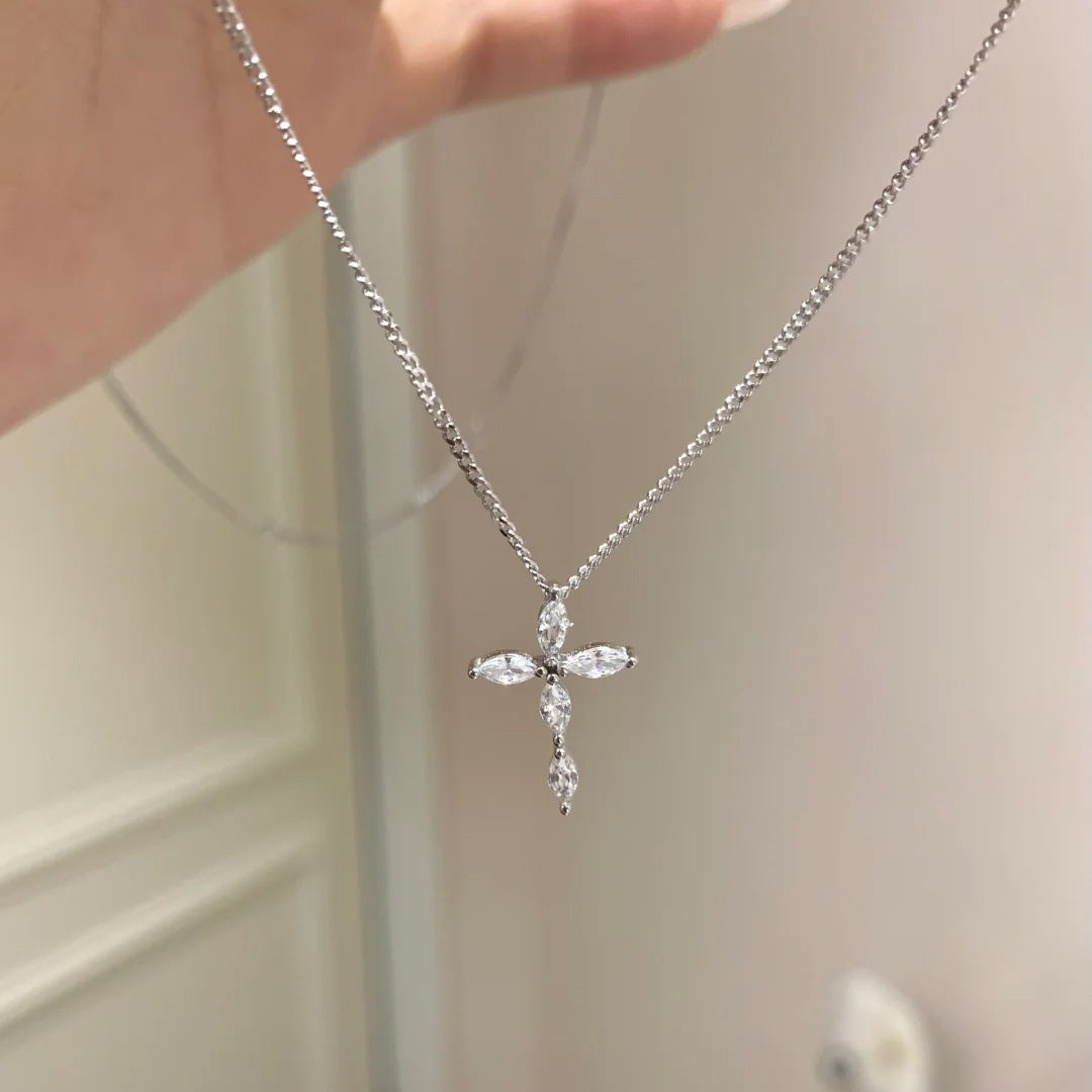 E廠【XDQ0337N】S925純銀日韓精緻菱形鋯石十字架項鍊女復古精緻ins鎖骨鏈潮 26.01-1