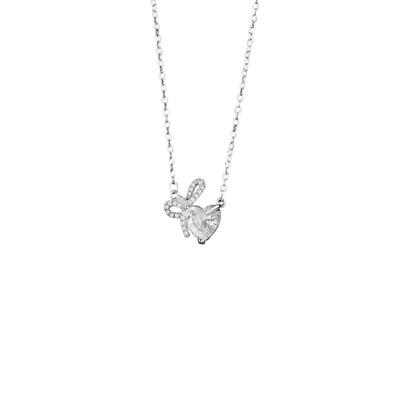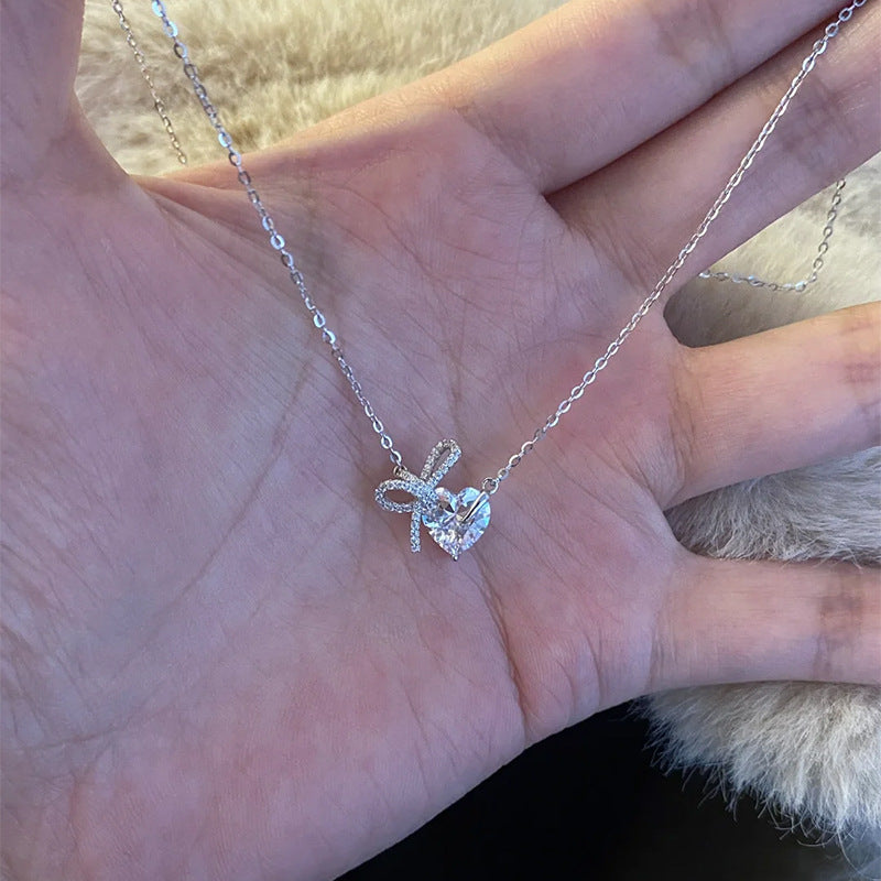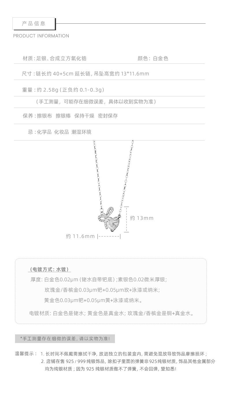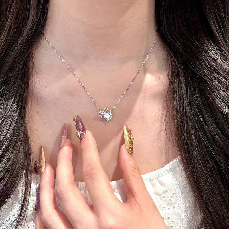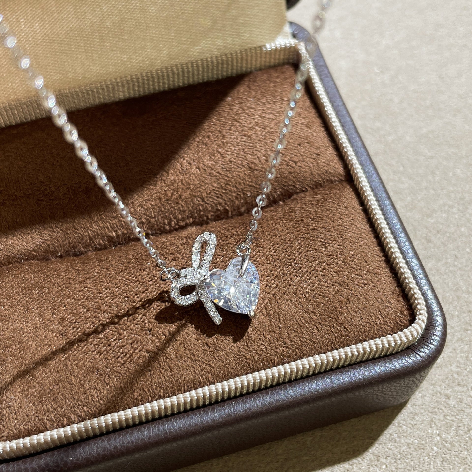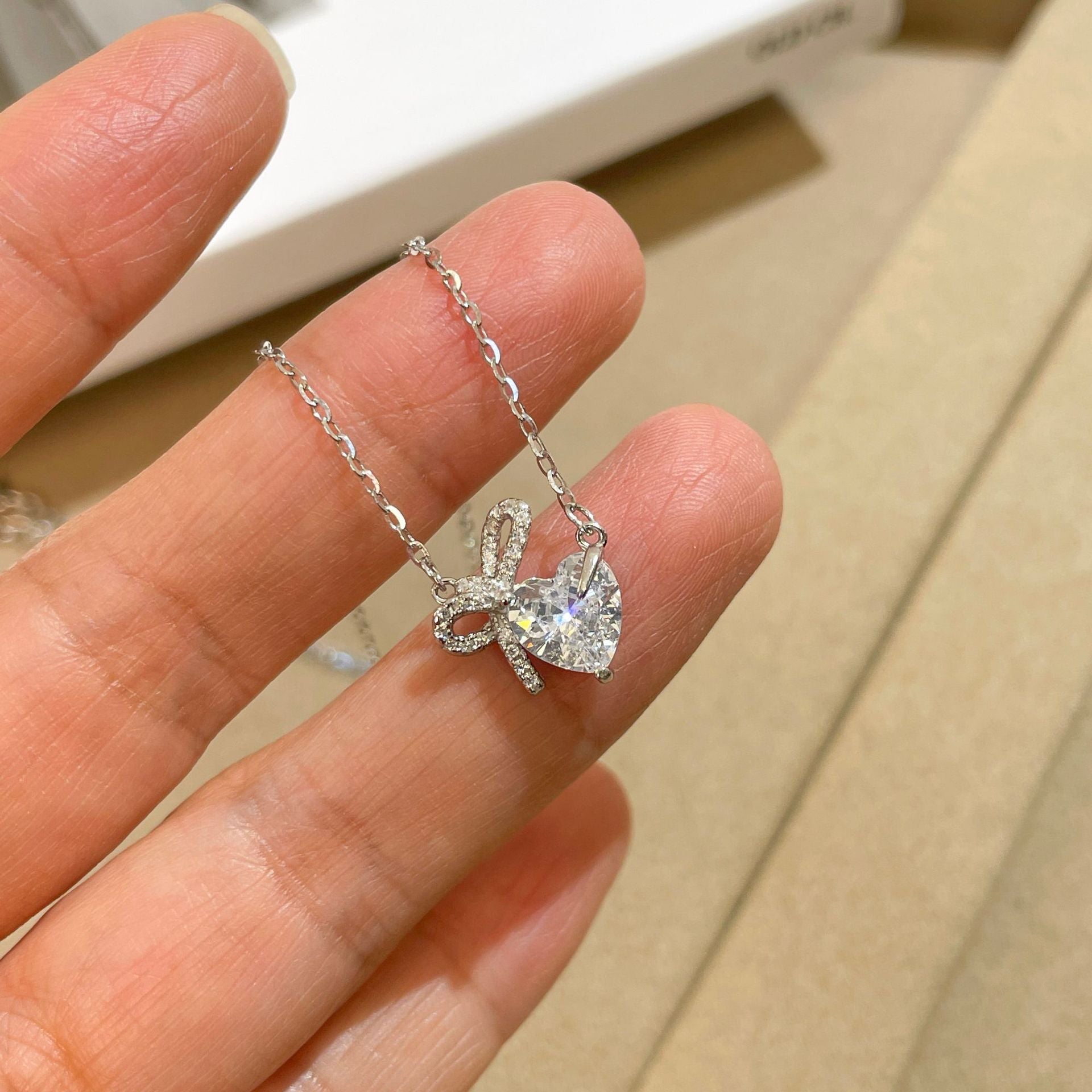 F廠【XDQ0468N】小眾輕奢高級感鎖骨鏈S999純銀甜美少女心蝴蝶結愛心鋯石項鍊 25.11-1