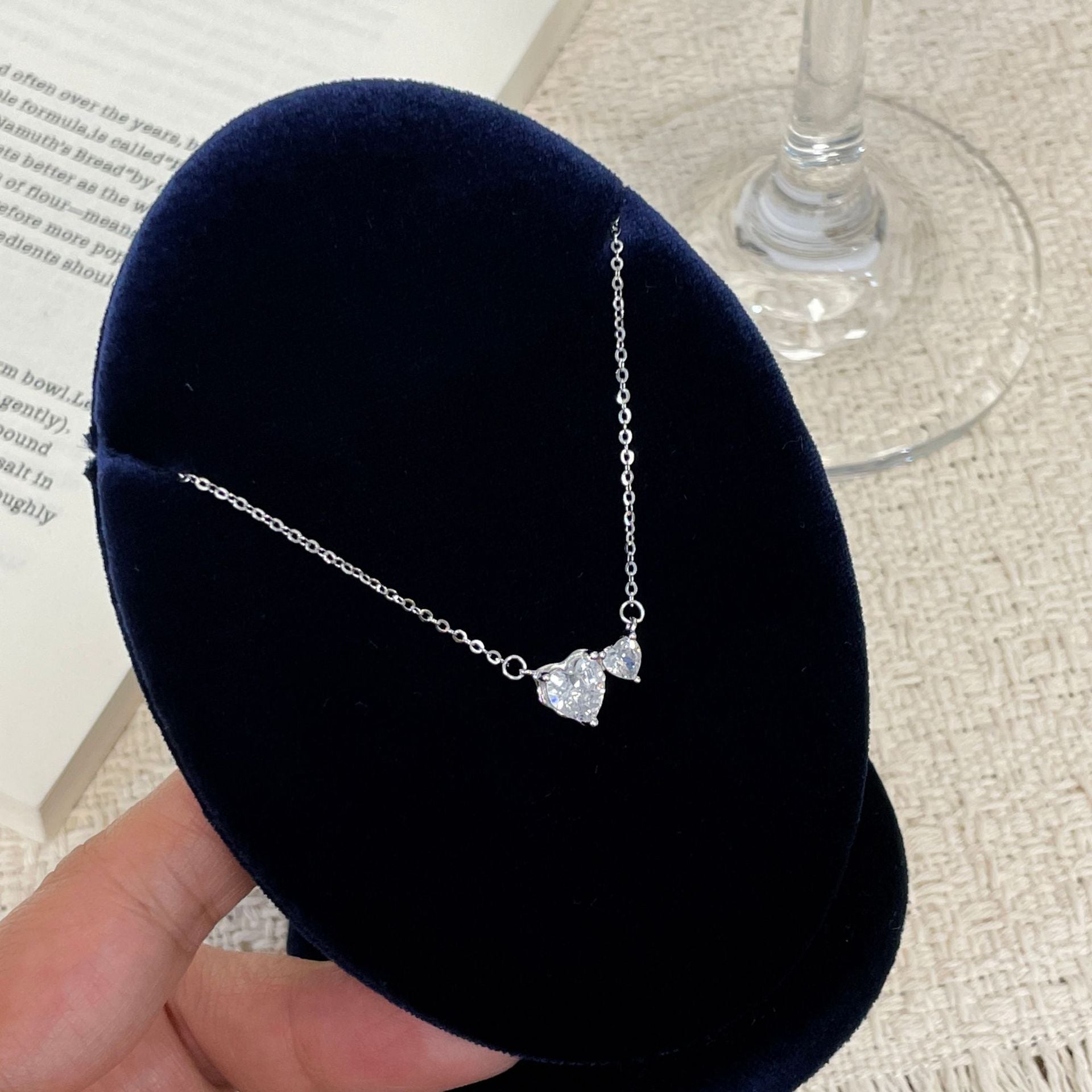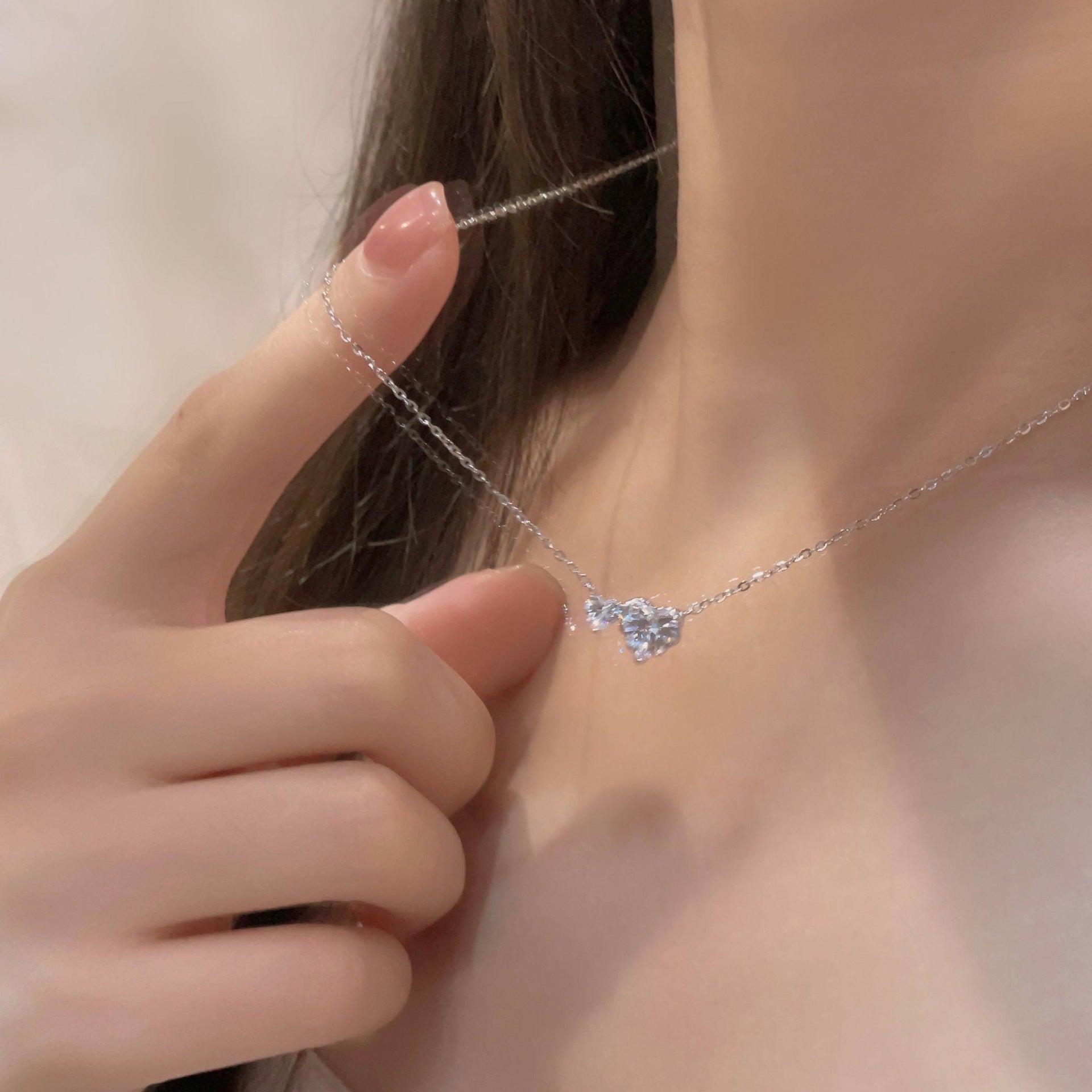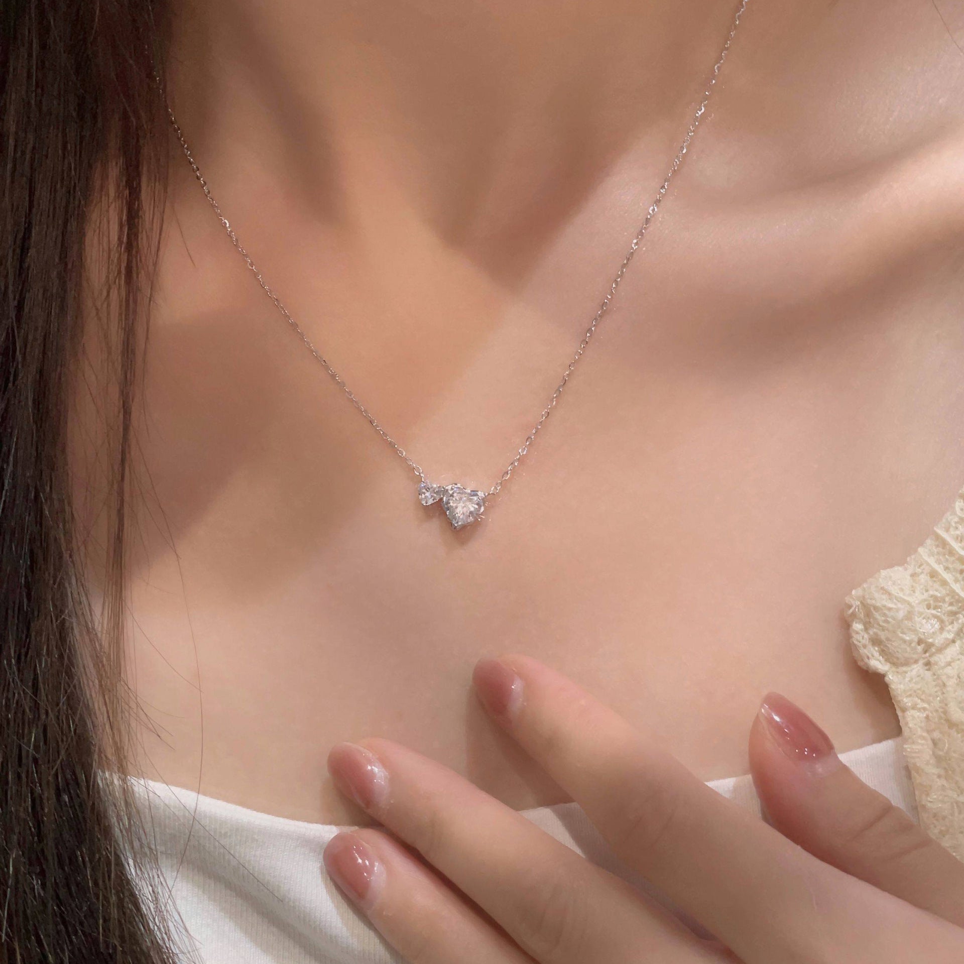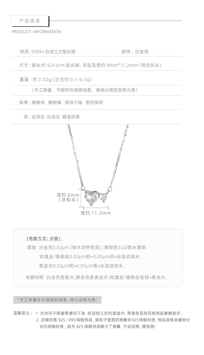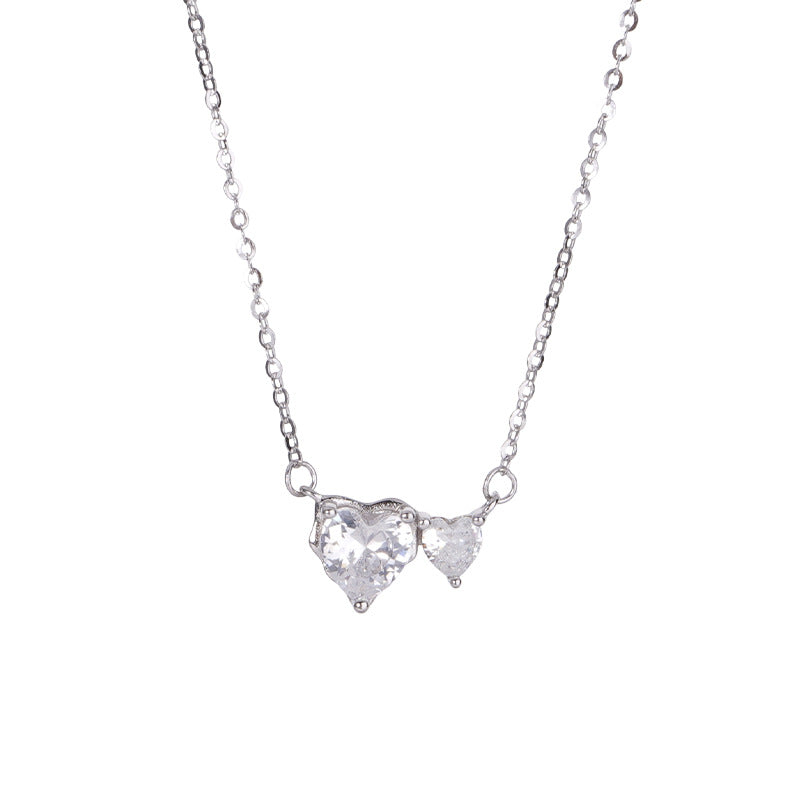 E廠【XDQ0549N】S925純銀爆閃心相依項鍊女高級感精緻愛心閃鋯甜美鎖骨鏈潮 26.01-1