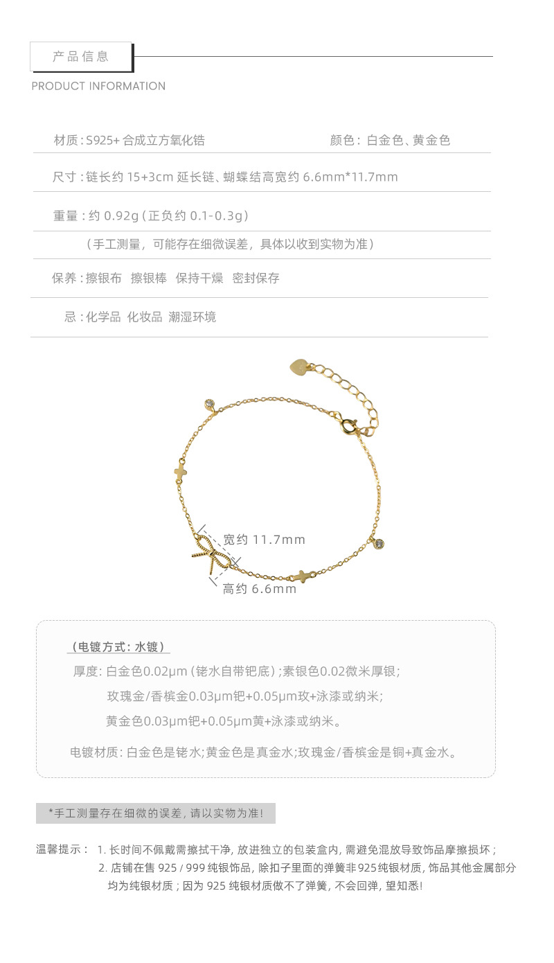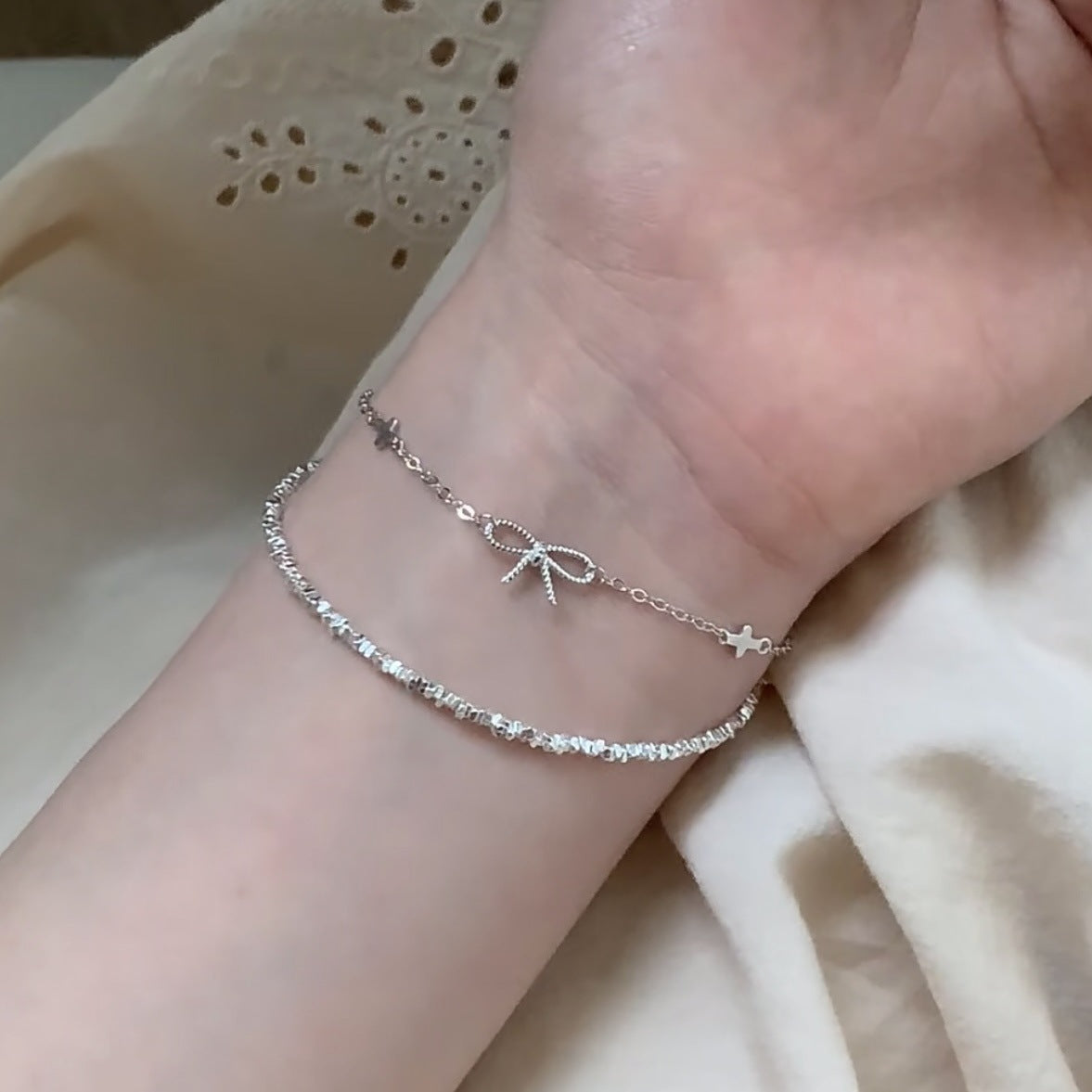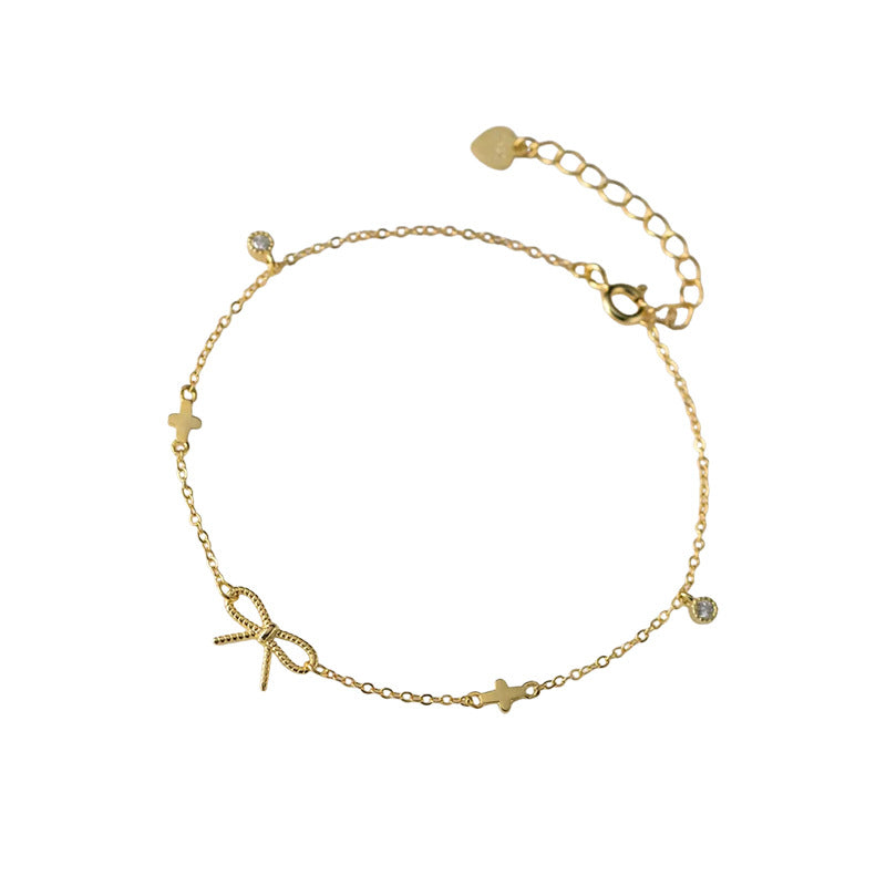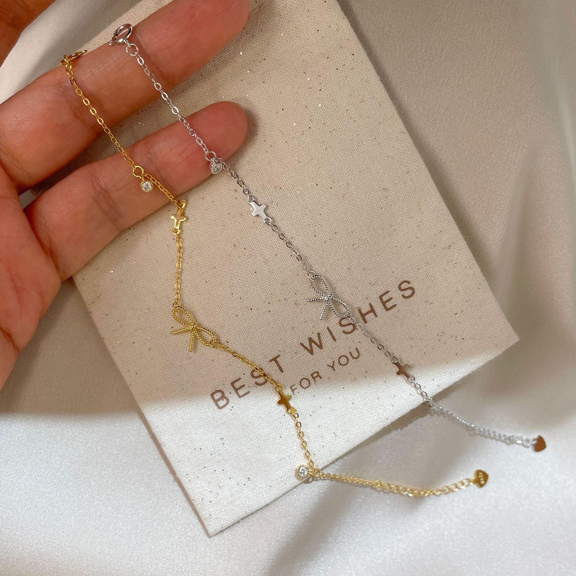 E廠【XDQ0637S】S925純銀韓系甜美麻花蝴蝶結手鍊女簡約氣質十字ins百搭手飾 25.11-3