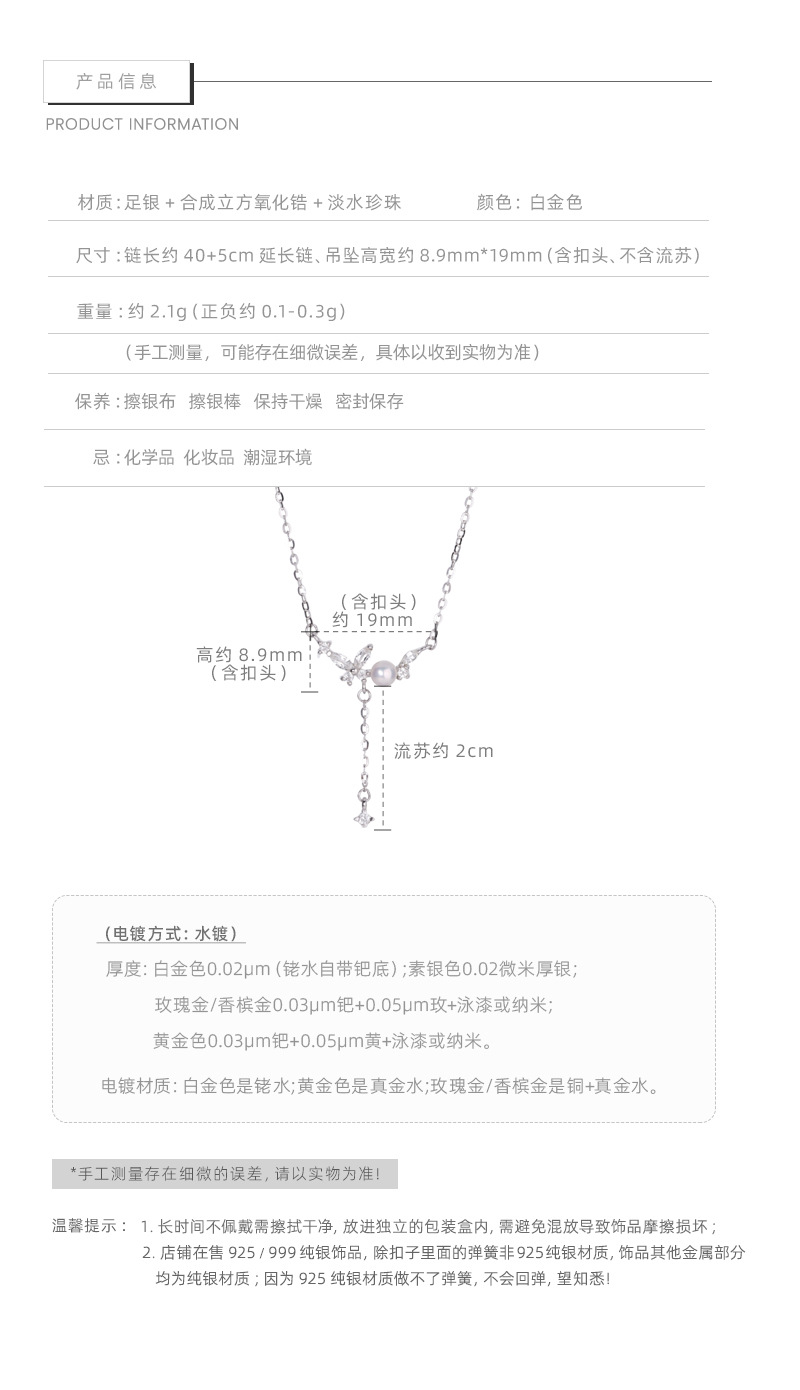 E廠【XDQ0675N】S999純銀韓版時尚天然淡水珍珠蝴蝶項鍊女精緻流蘇鎖骨鍊ins 26.03-1