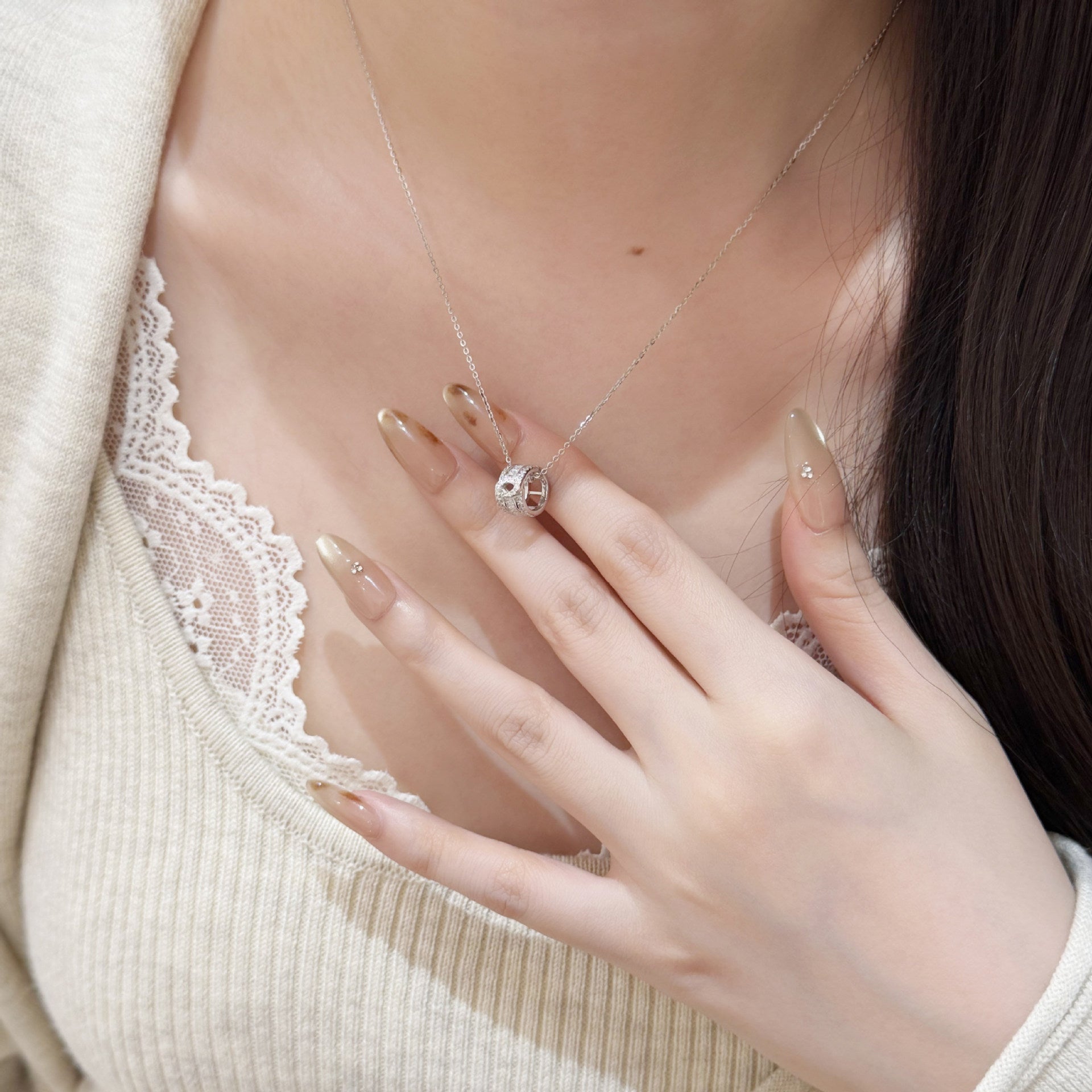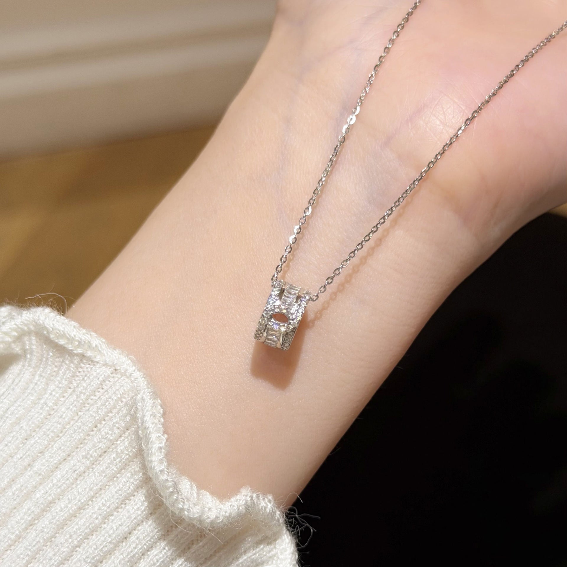 E廠【XDQ0694N】S925純銀小眾高級感鏤空小蠻腰項鍊女精緻時尚鑲鑽鎖骨鏈 26.01-1
