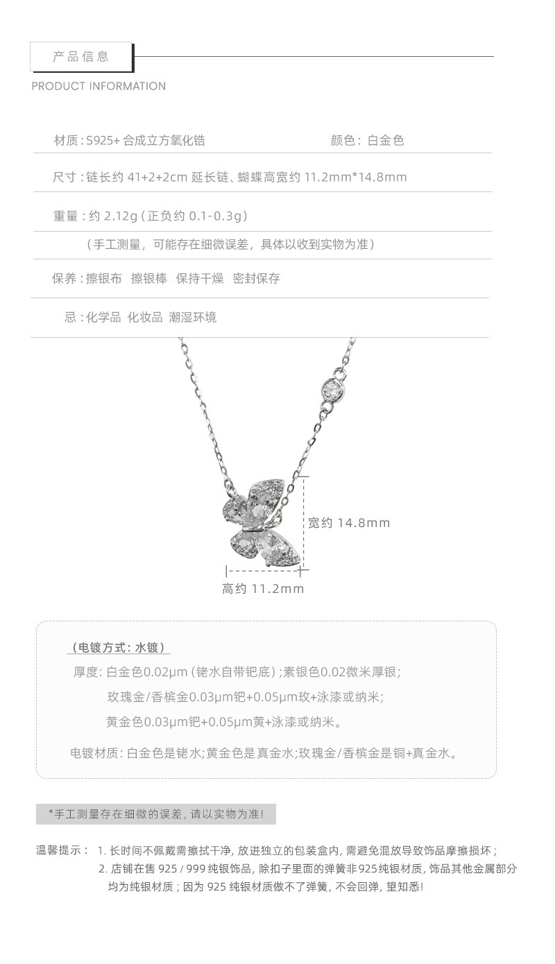 F廠【XDQ0748N】S925純銀輕奢小眾自然夢境蝴蝶項鍊女甜美精緻鋯石氣質鎖骨鏈 25.11-2