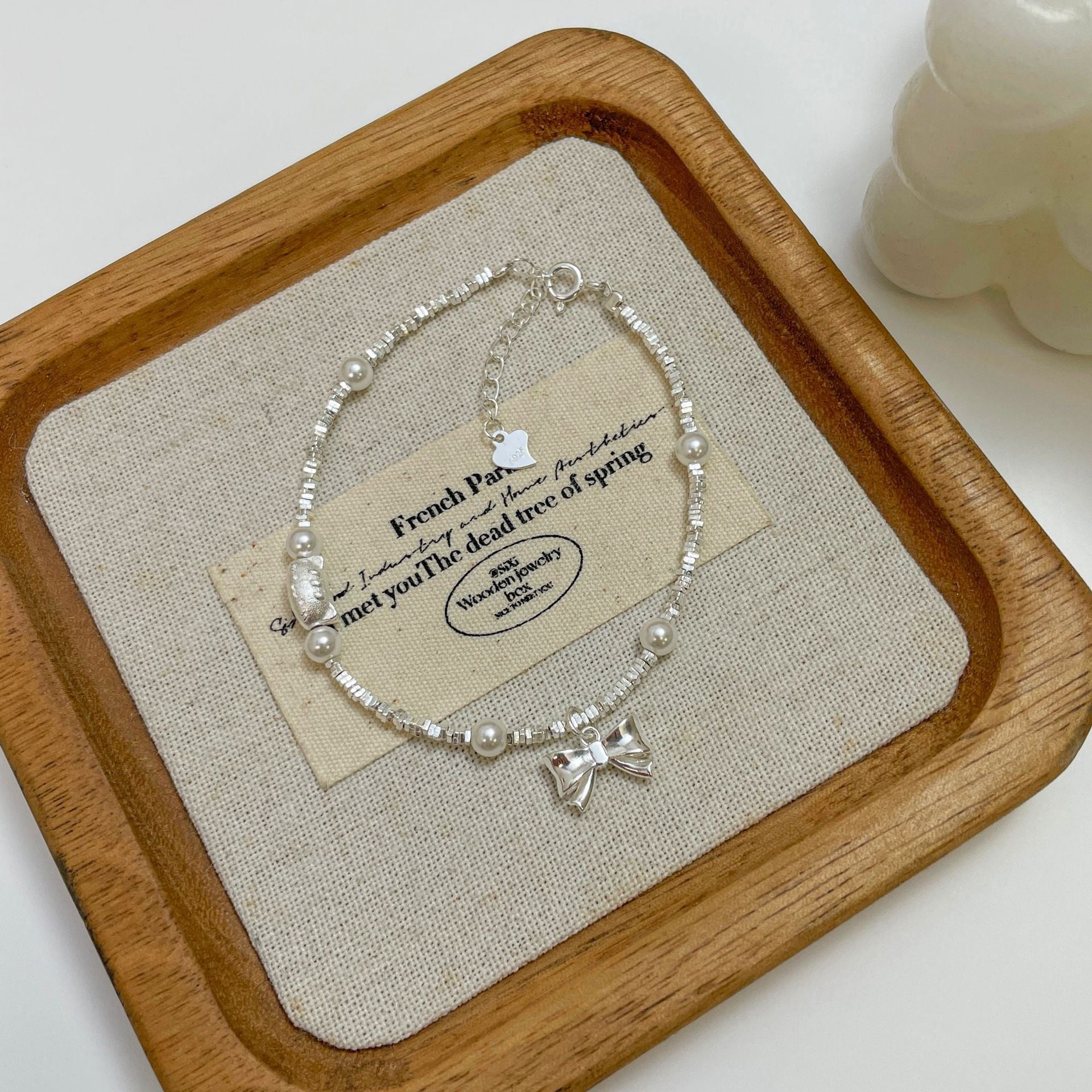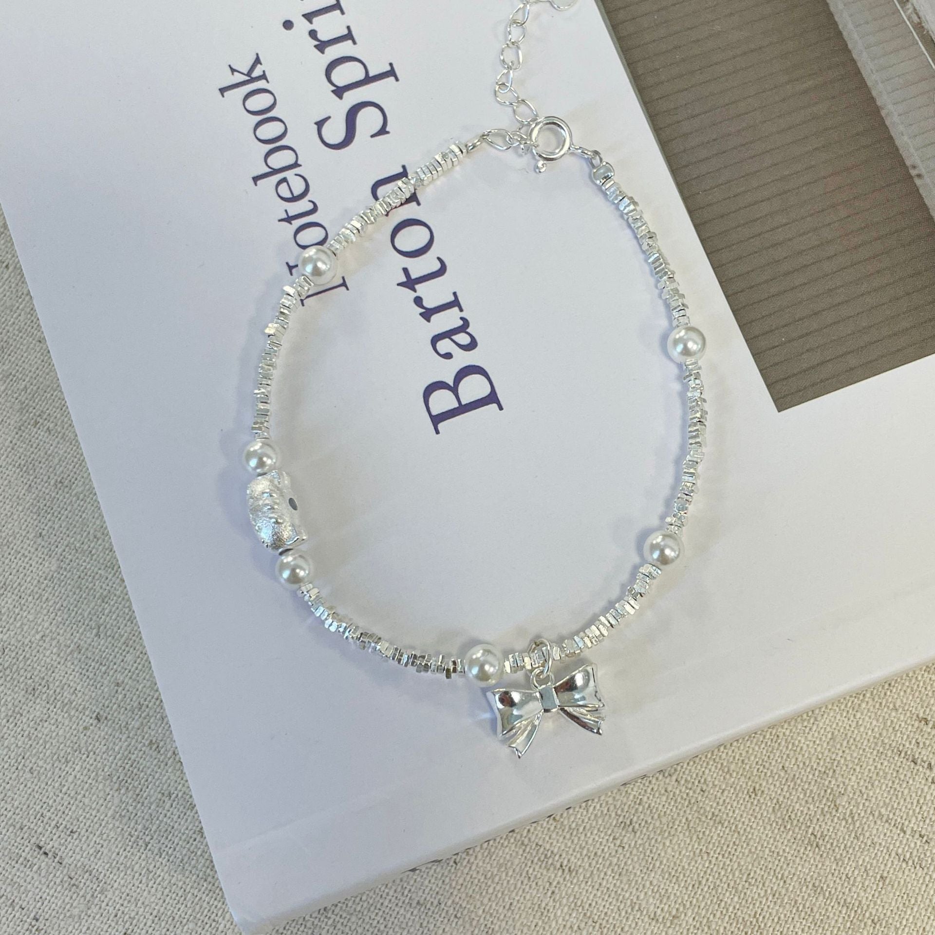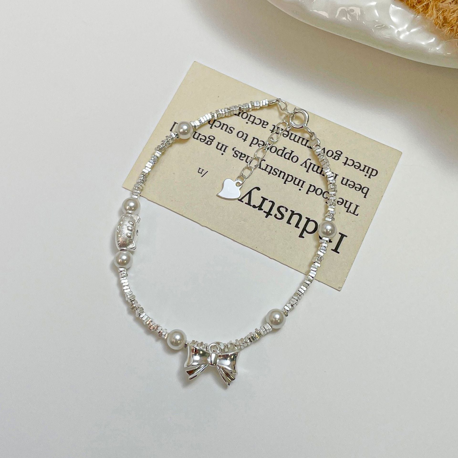 E廠【XDQ0797S】S925純銀精緻碎銀子蝴蝶結手鍊ins萌趣貓咪仿珍珠百搭手飾女 25.11-4