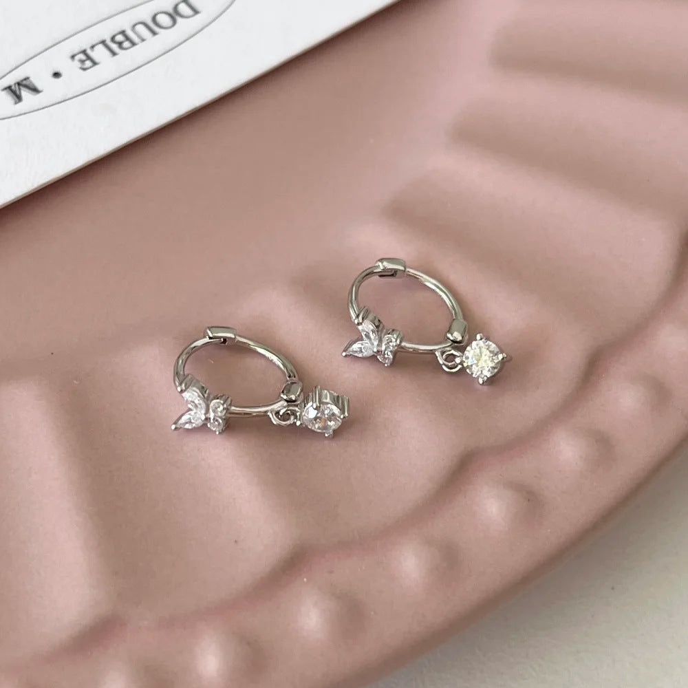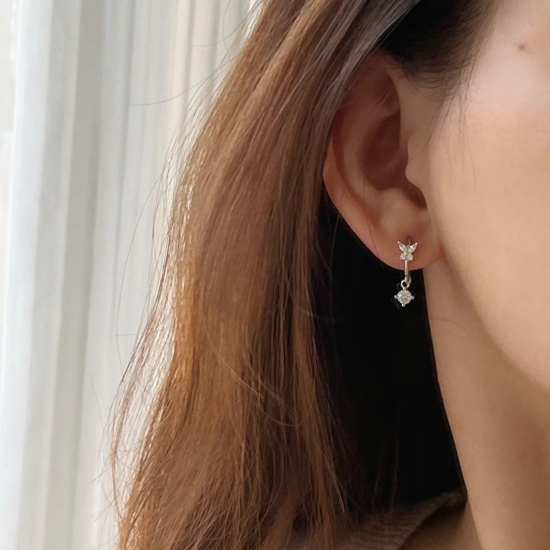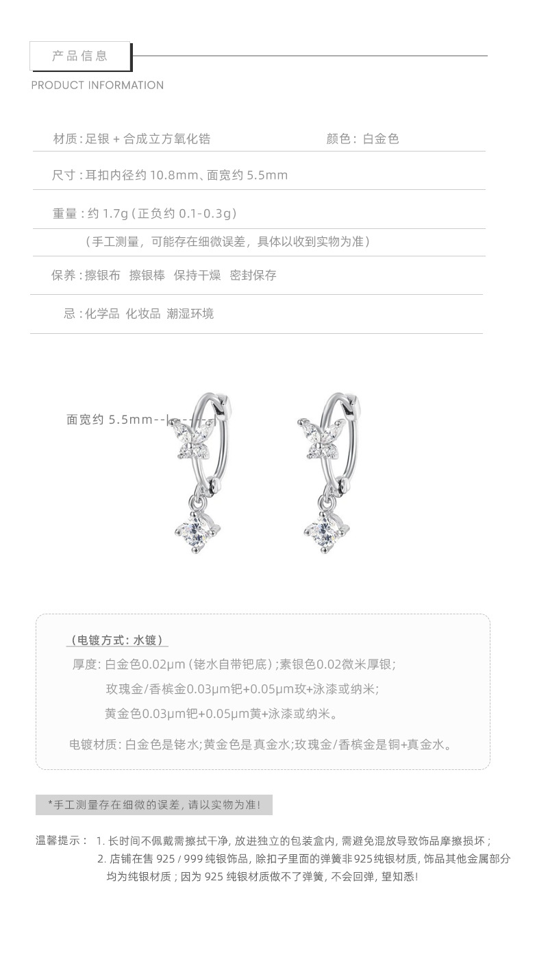 E廠【XDQ10015E】S999純銀韓系超閃蝴蝶耳扣女小眾高級感鋯石流蘇ins耳環耳飾 25.11-4