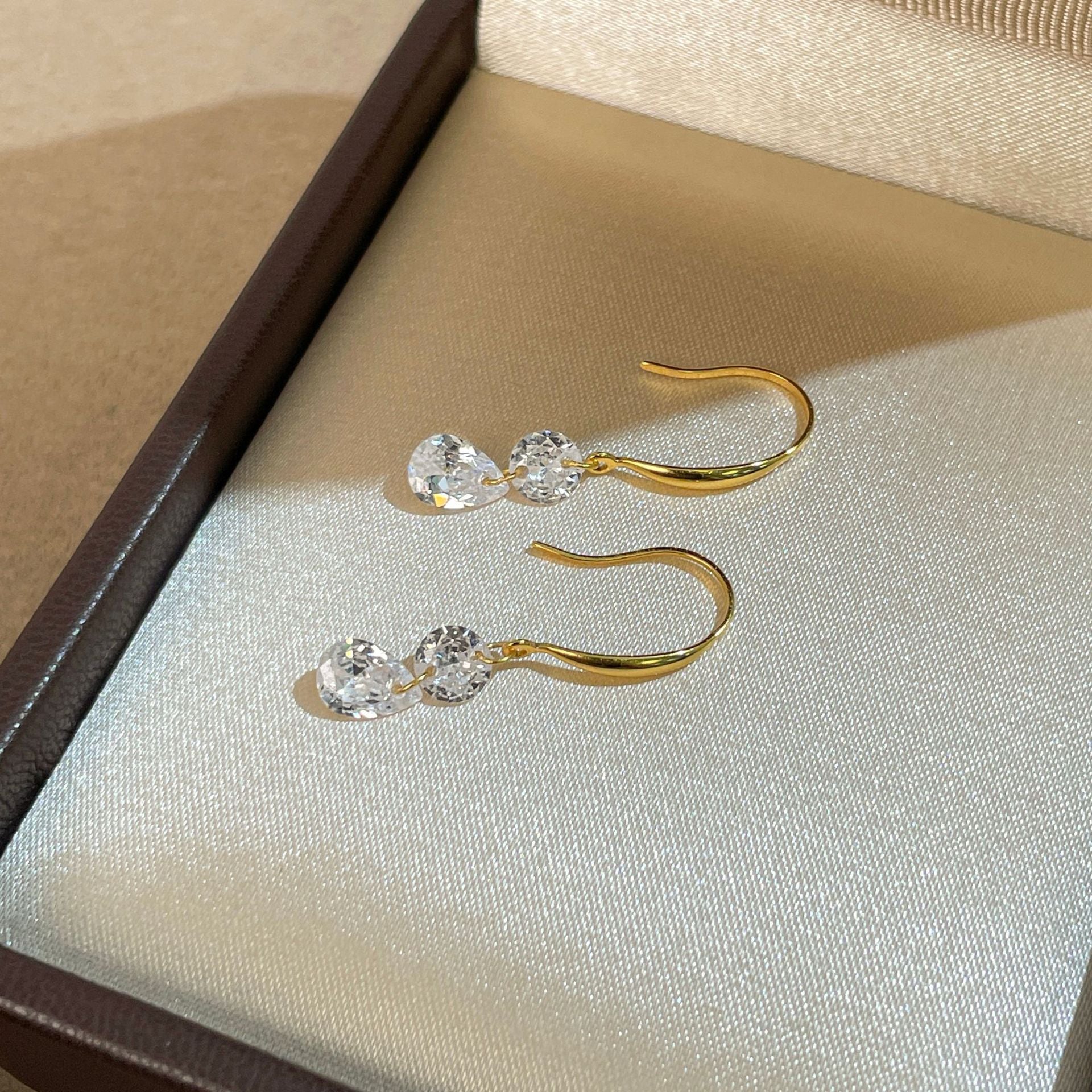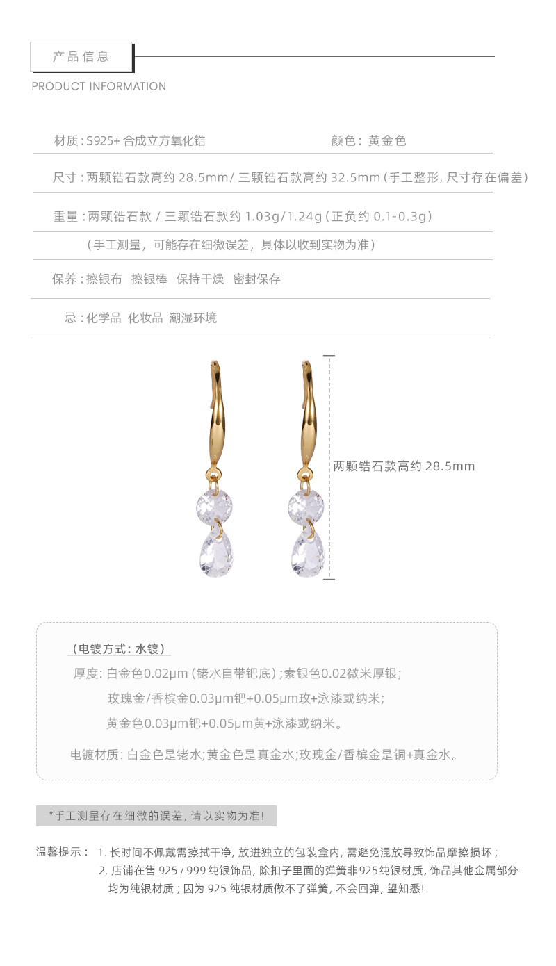 F廠【XDQ10100E】S925純銀鋯石耳環女耳鉤簡約百搭法式復古感耳飾高級水滴耳墜 25.11-2