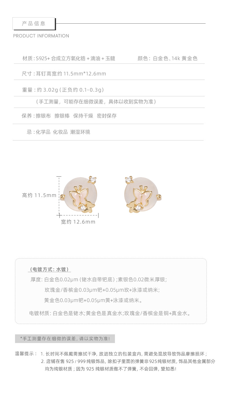 E廠【XDQ10126E】S925純銀白玉髓耳環女高級感蝴蝶滴膠小眾精緻感耳飾 26.04-4