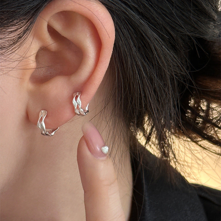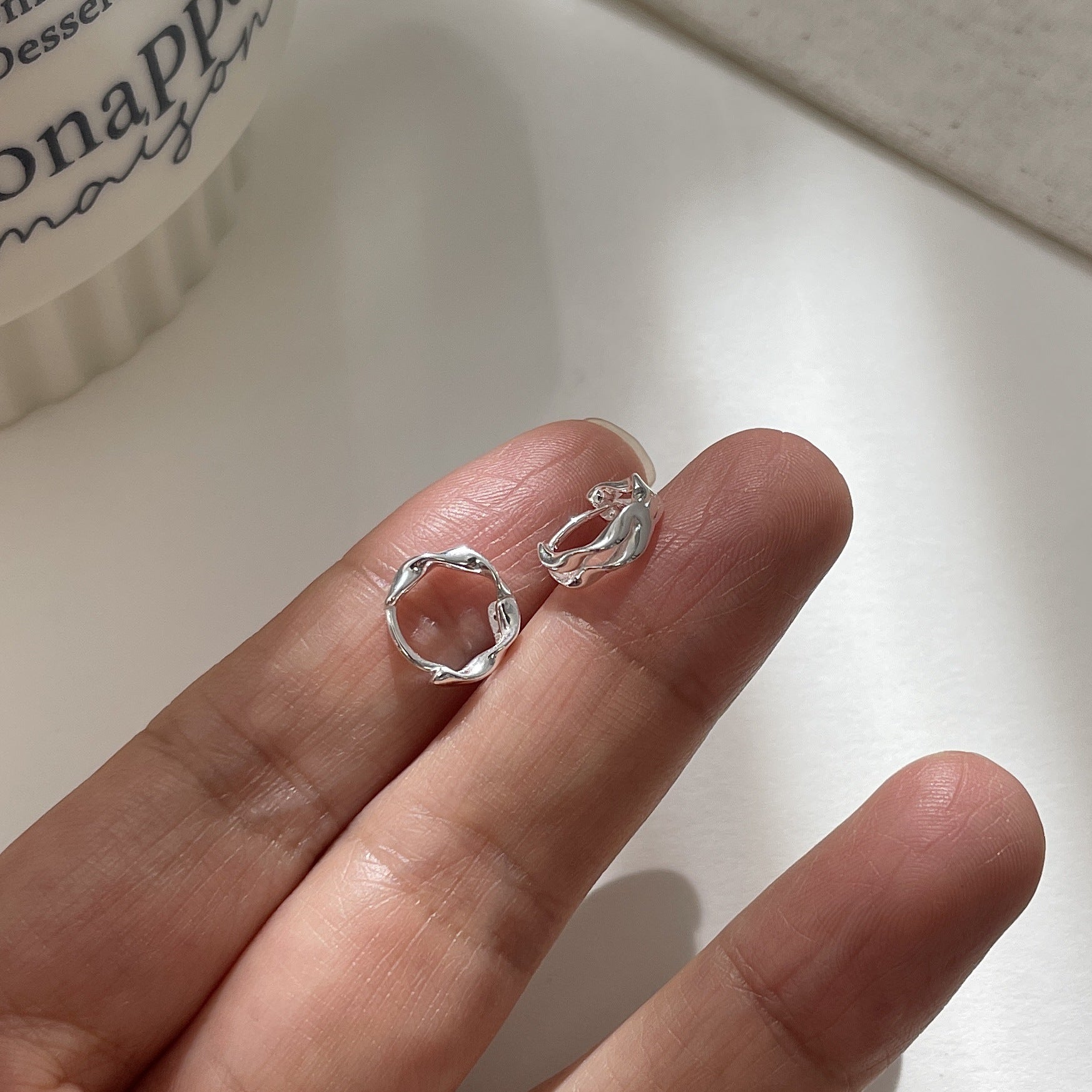 F廠【XDQ10154E】S999純銀雙層莫比烏斯環耳扣女高級感素圈疊戴耳環冷淡風耳飾 25.11-2