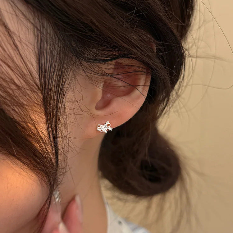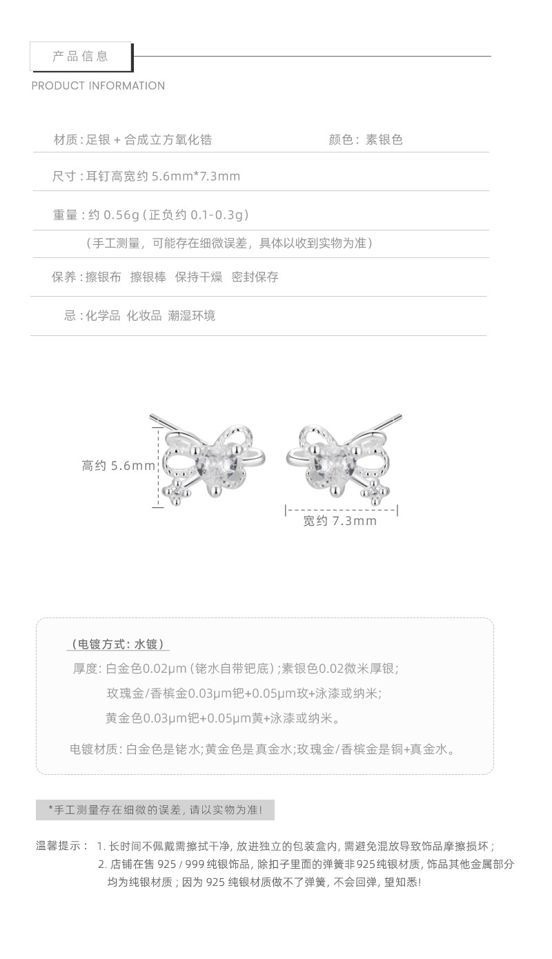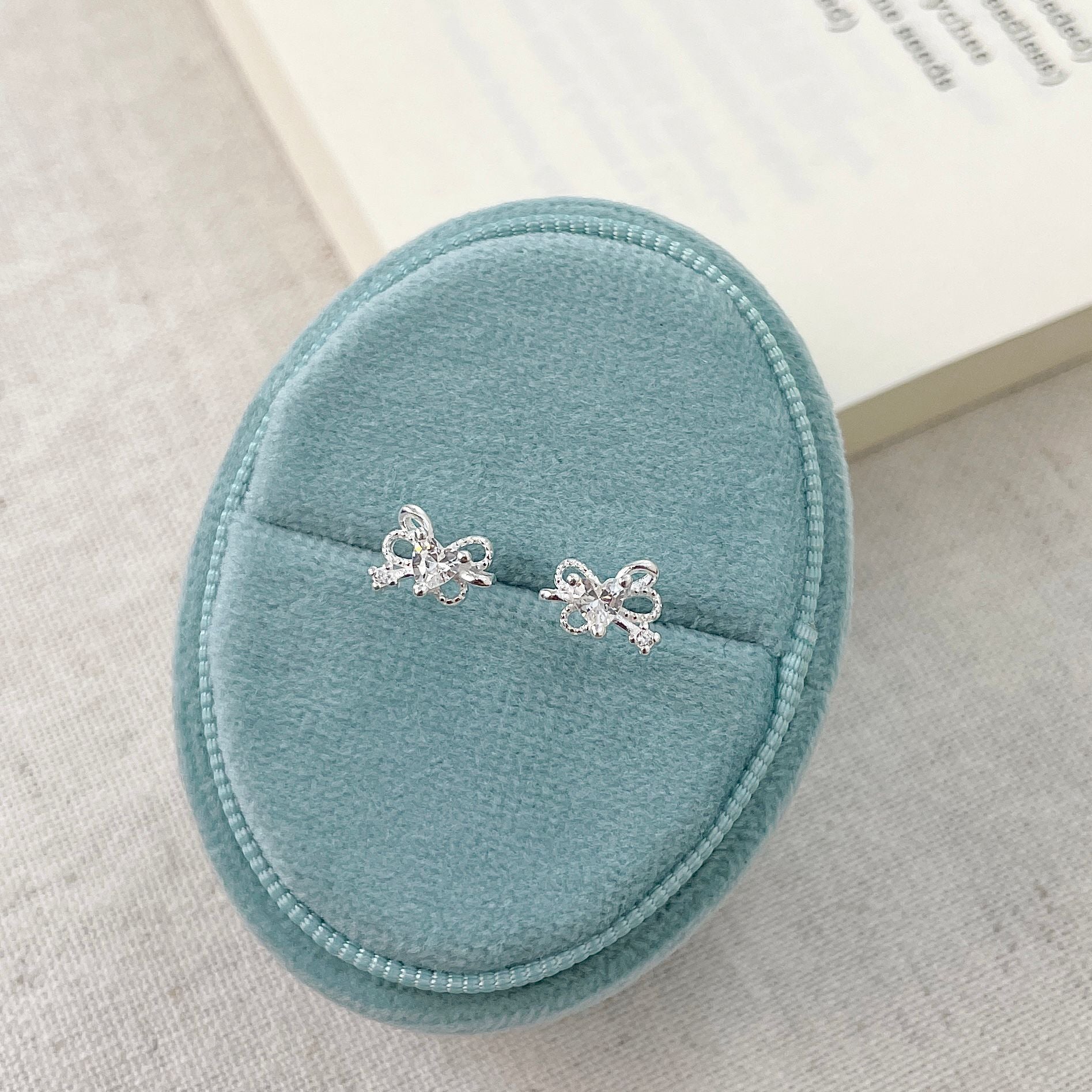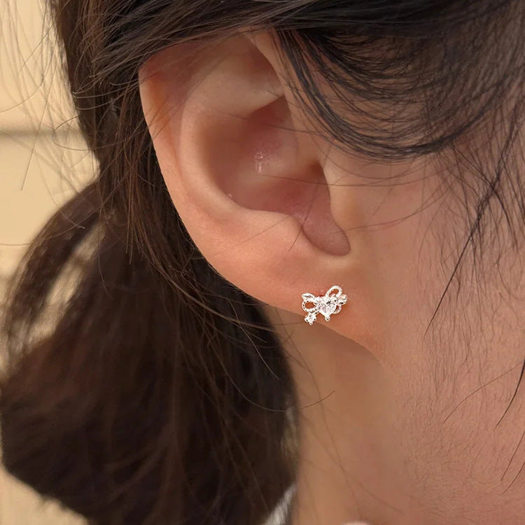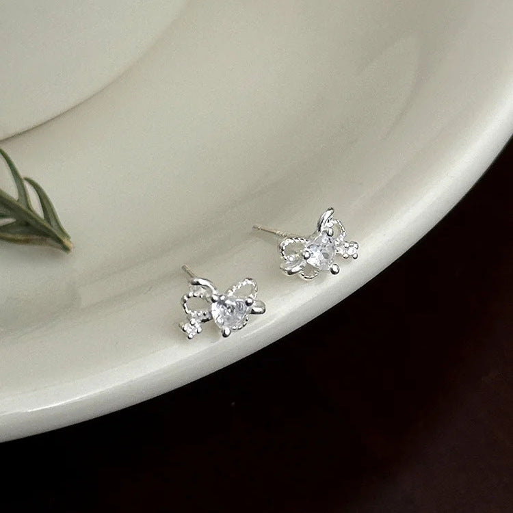 E廠【XDQ10188E】S999純銀簡約小巧蝴蝶結愛心耳環女精緻感小眾心形閃鋯耳飾潮 25.12-1