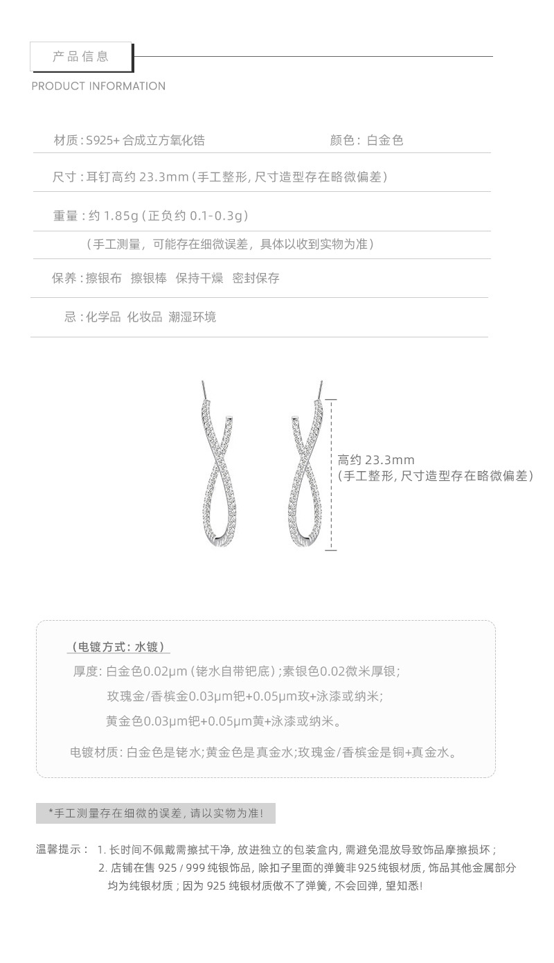 E廠【XDQ10623E】S925純銀莫比烏斯大圈耳環女幾何弧形交叉鋯石耳環冷淡風耳飾 25.12-2