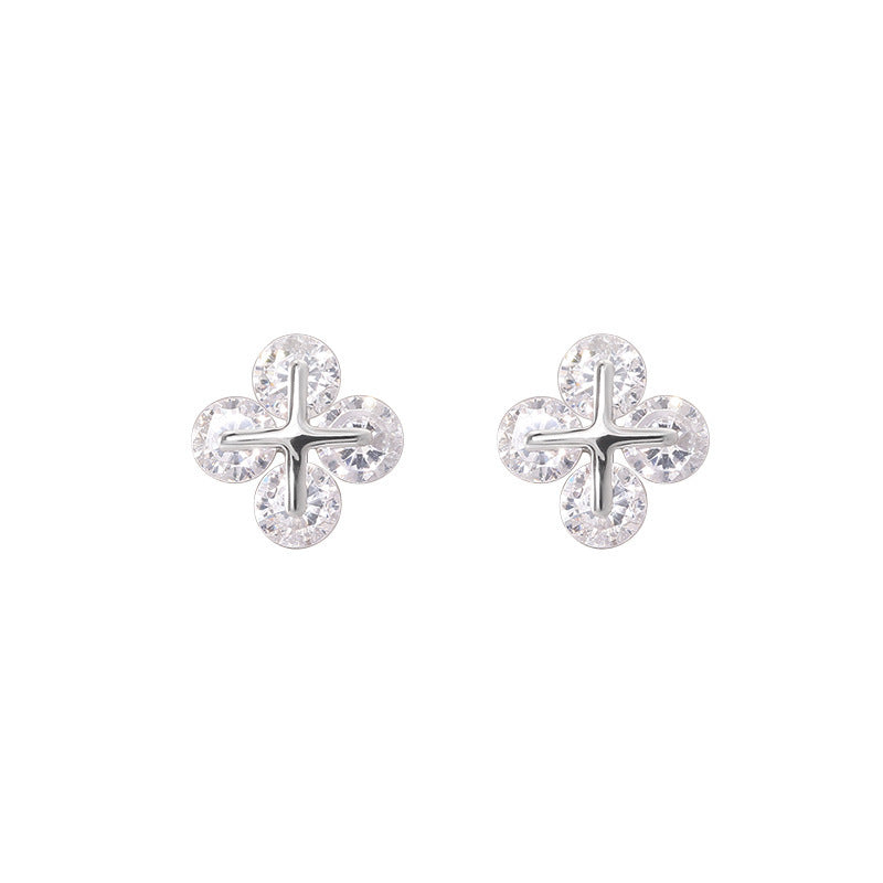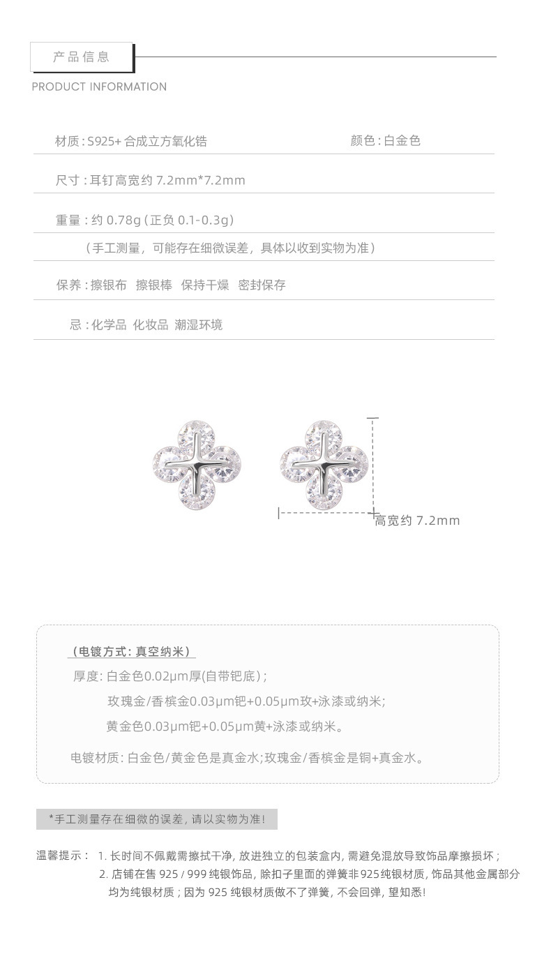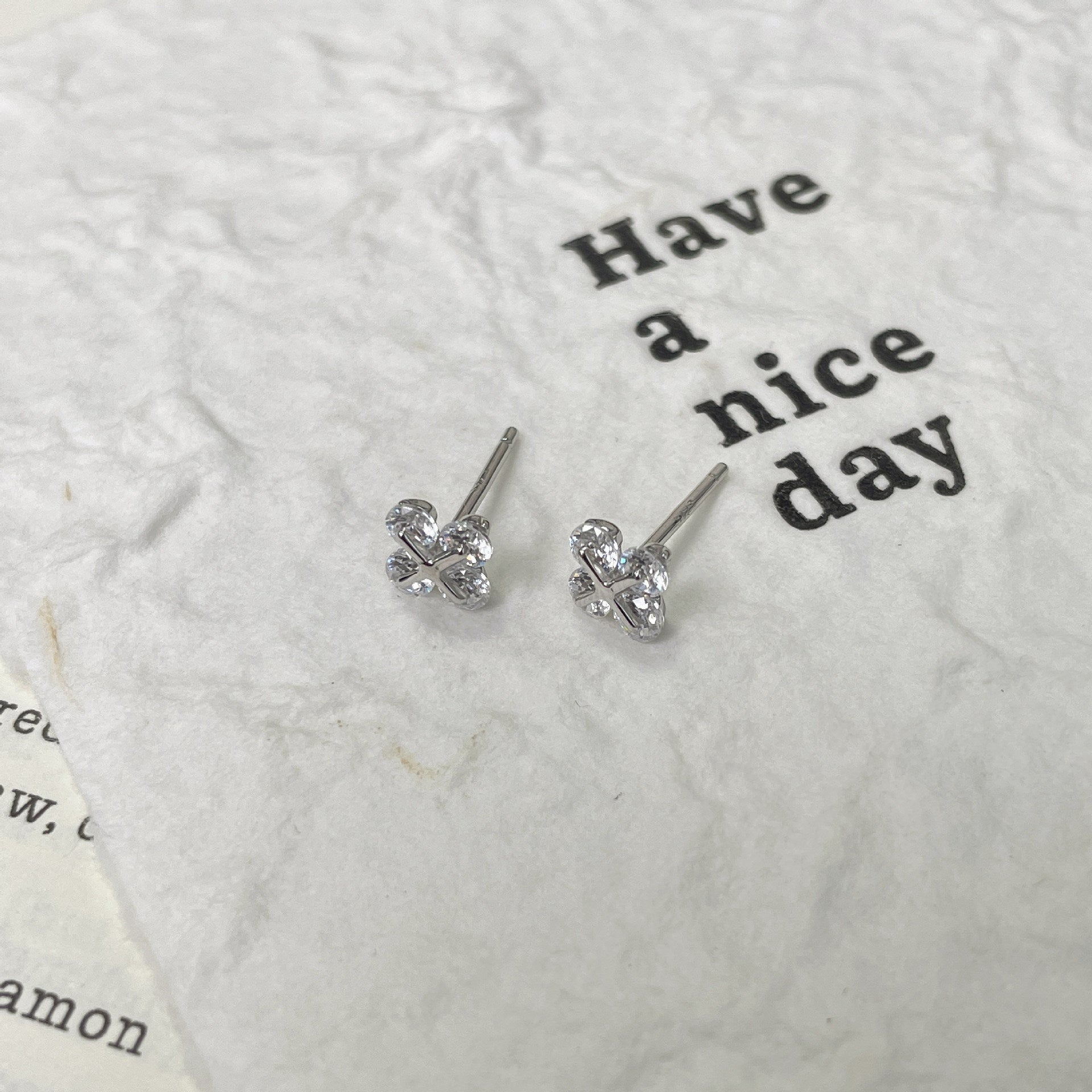 F廠【XDQ10625E】S925純銀簡約小眾四葉草耳環女時尚設計感閃鑽百搭基本款耳飾 25.11-1