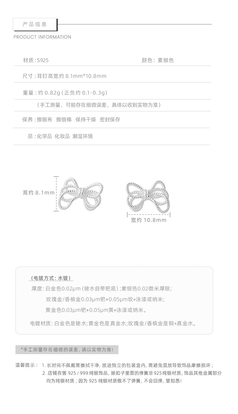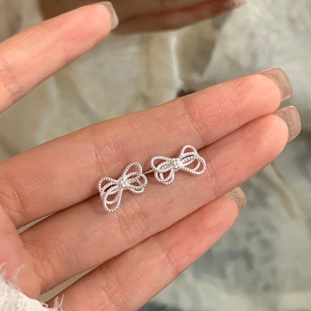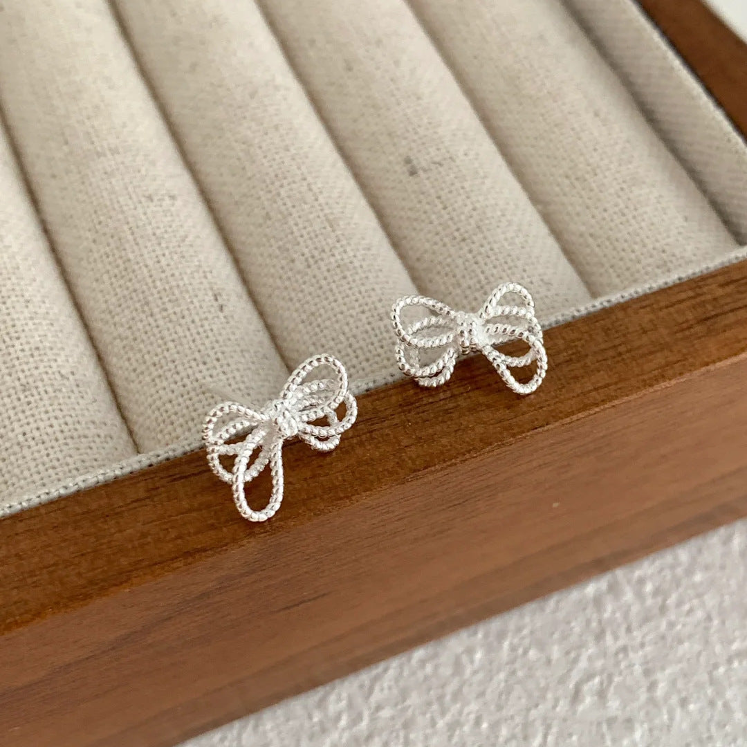E廠【XDQ10642E】S925純銀韓版ins蝴蝶結耳環女冷淡風不規則感繩結精緻耳飾潮 26.01-1