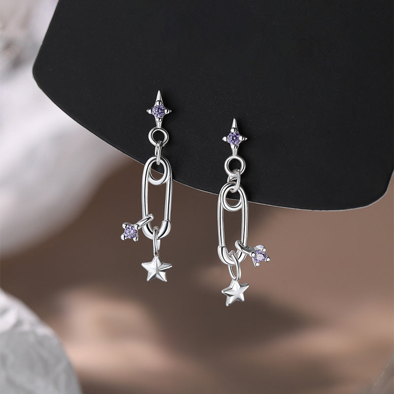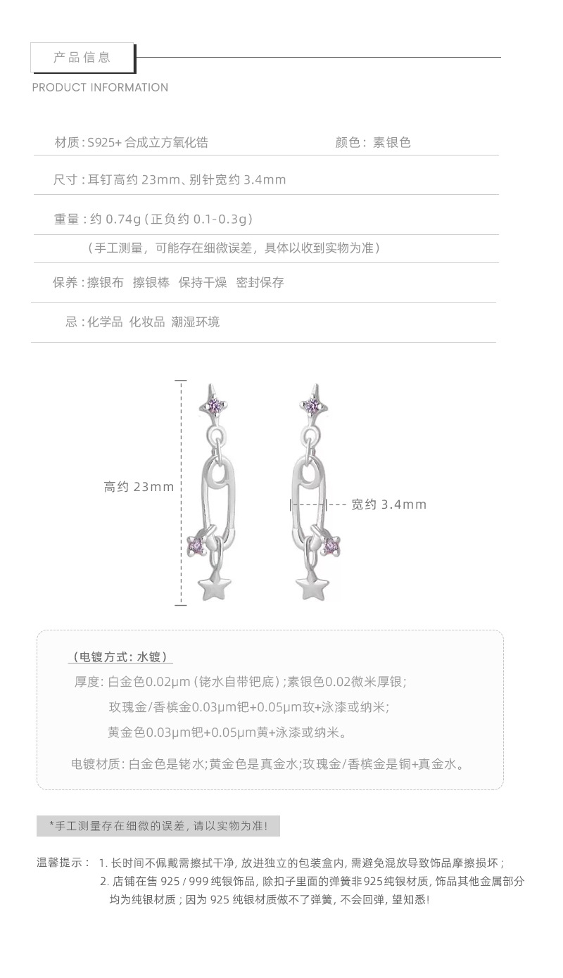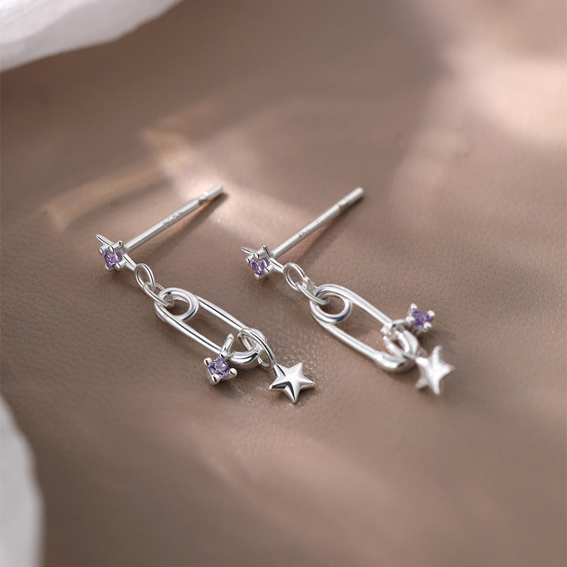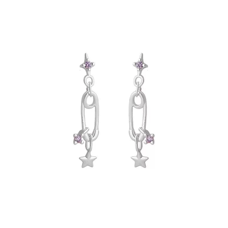 F廠【XDQ10840E】S925純銀韓版簡約星星回形針耳環女精緻小清新鋯石別針耳飾潮 25.10-5