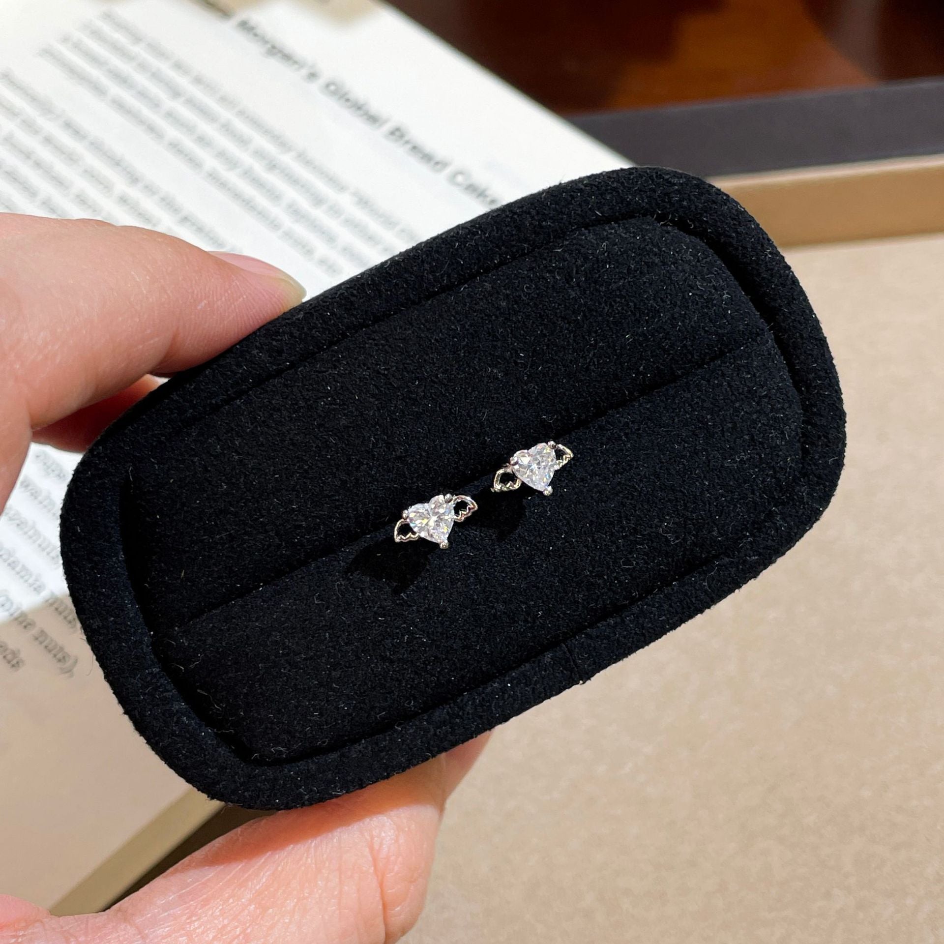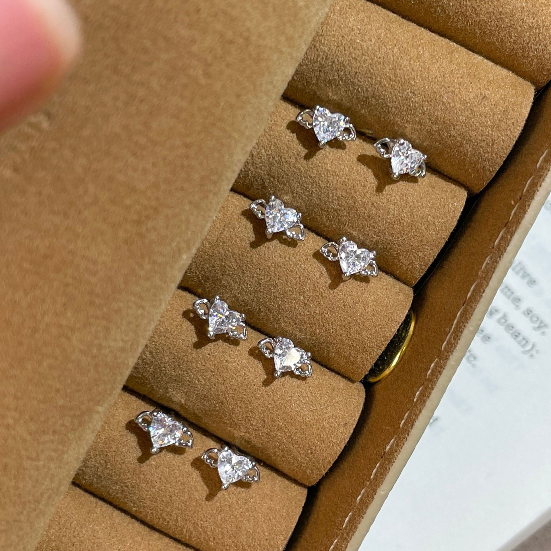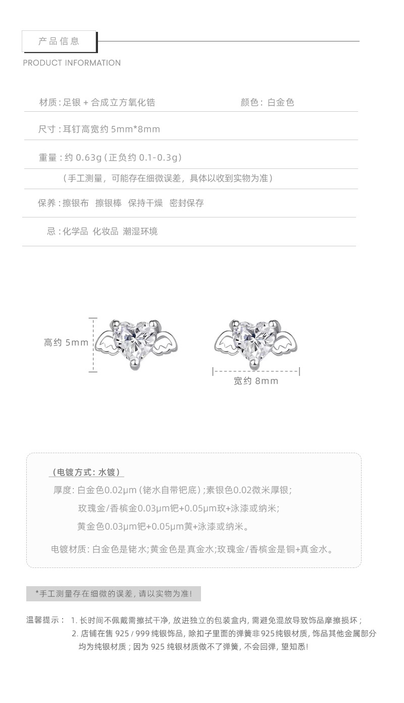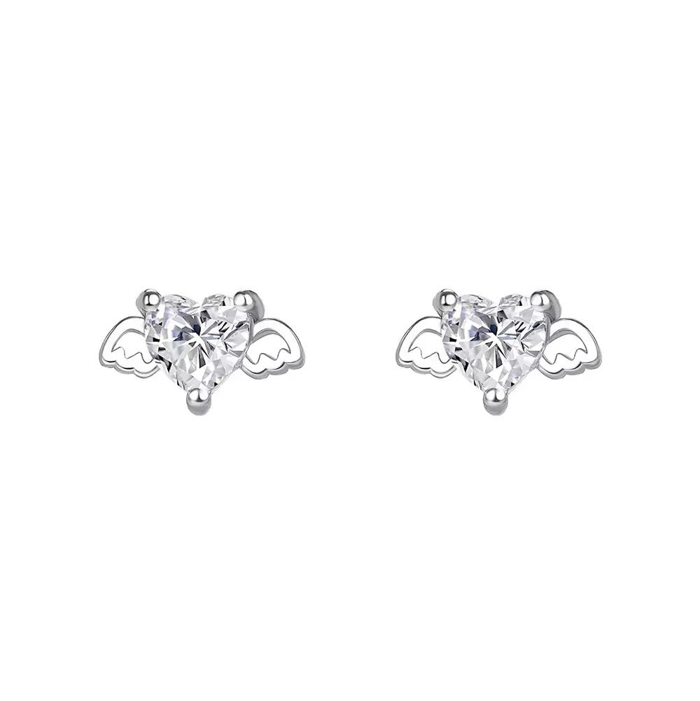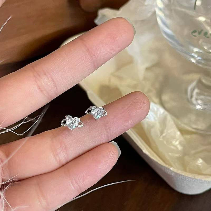 F廠【XDQ10860E】足銀999純銀天使愛心小耳環女鋯石小眾設計高級感養耳洞耳飾 25.10-5