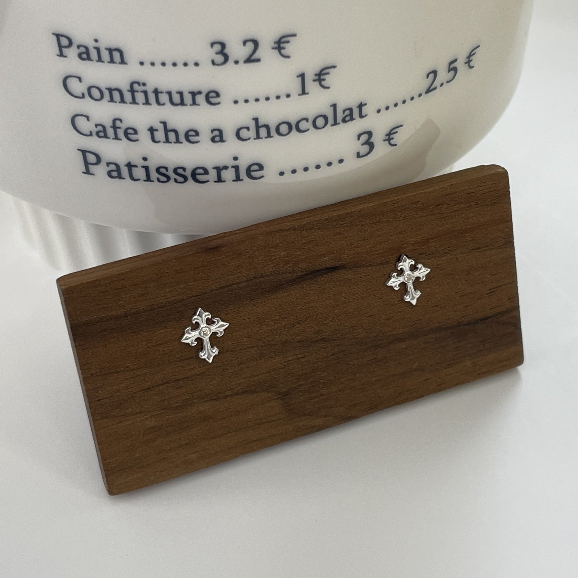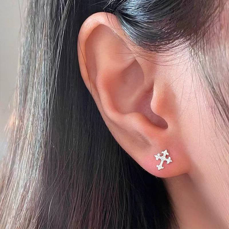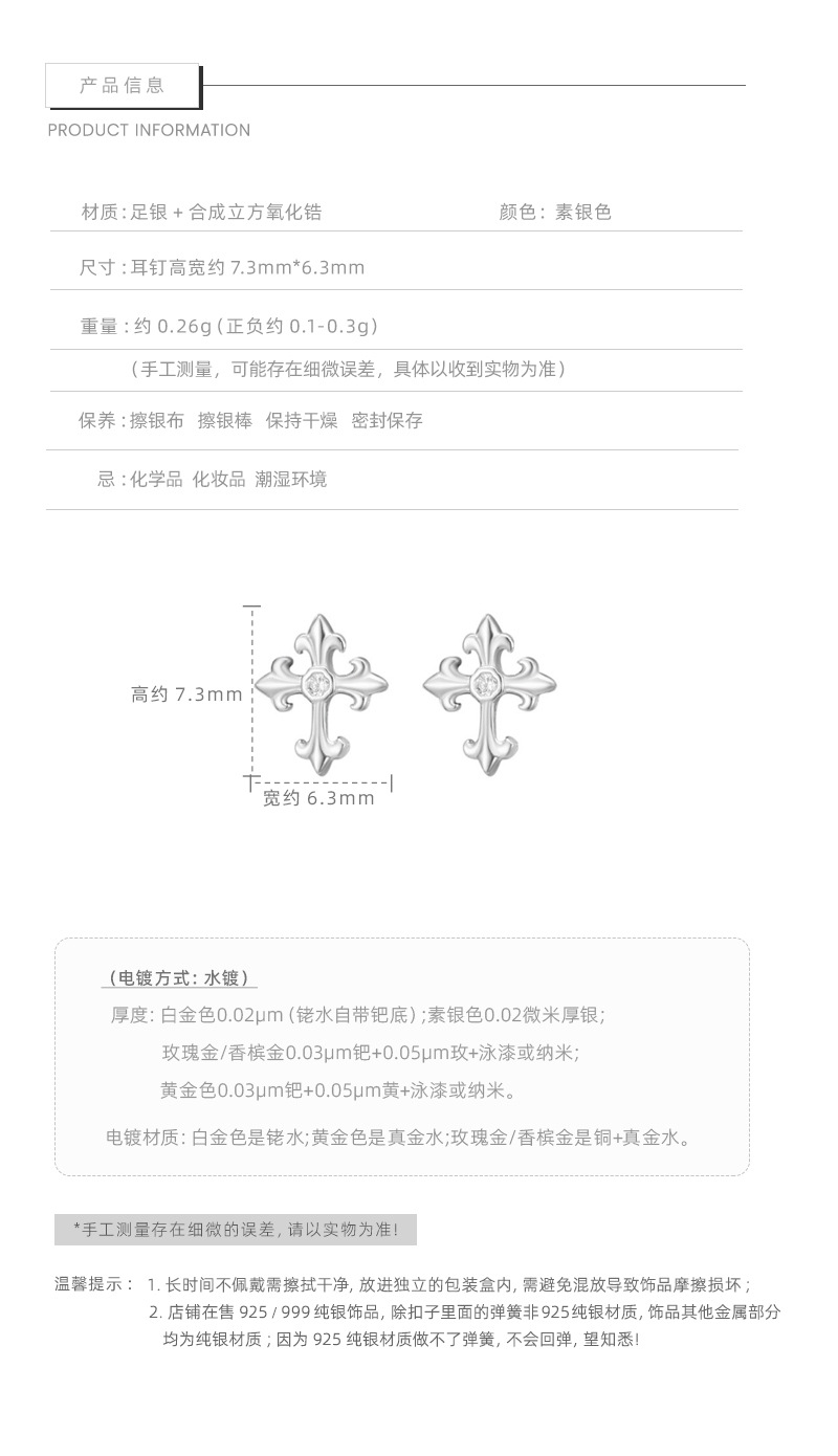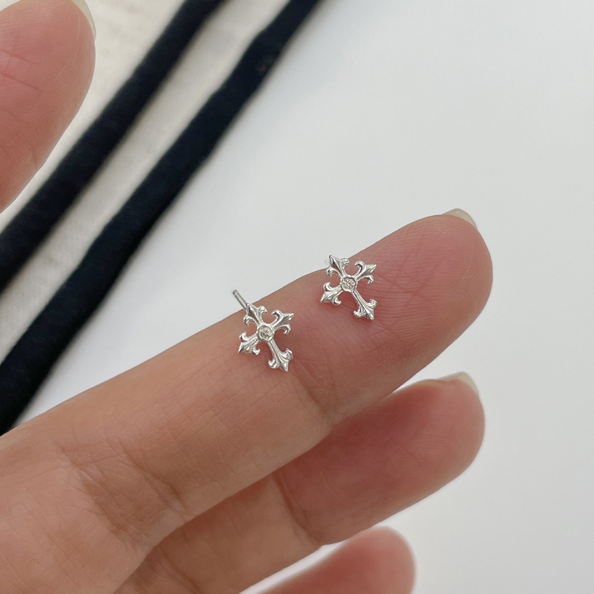 F廠【XDQ10910E】小眾設計S999純銀十字架耳環女簡約高級感鳶尾花迷你日常耳飾 25.11-2