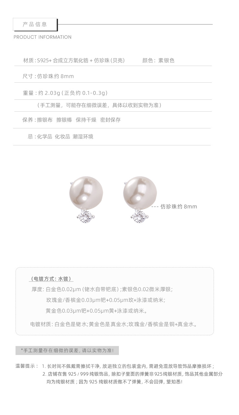 E廠【XDQ10944E】韓版小眾設計仿珍珠鋯石耳環女S925純銀氣質百搭通勤耳飾ins 25.11-4