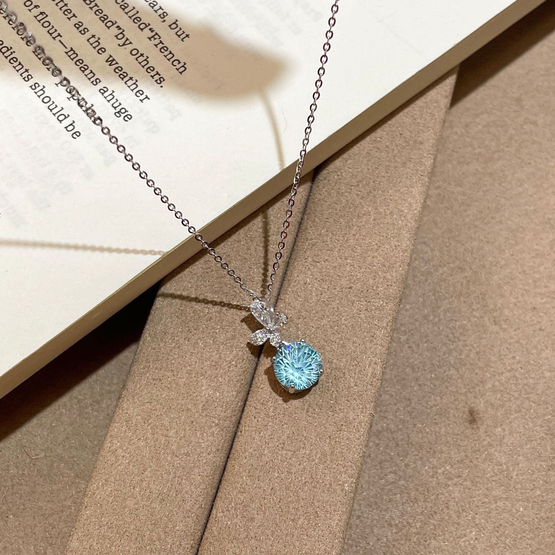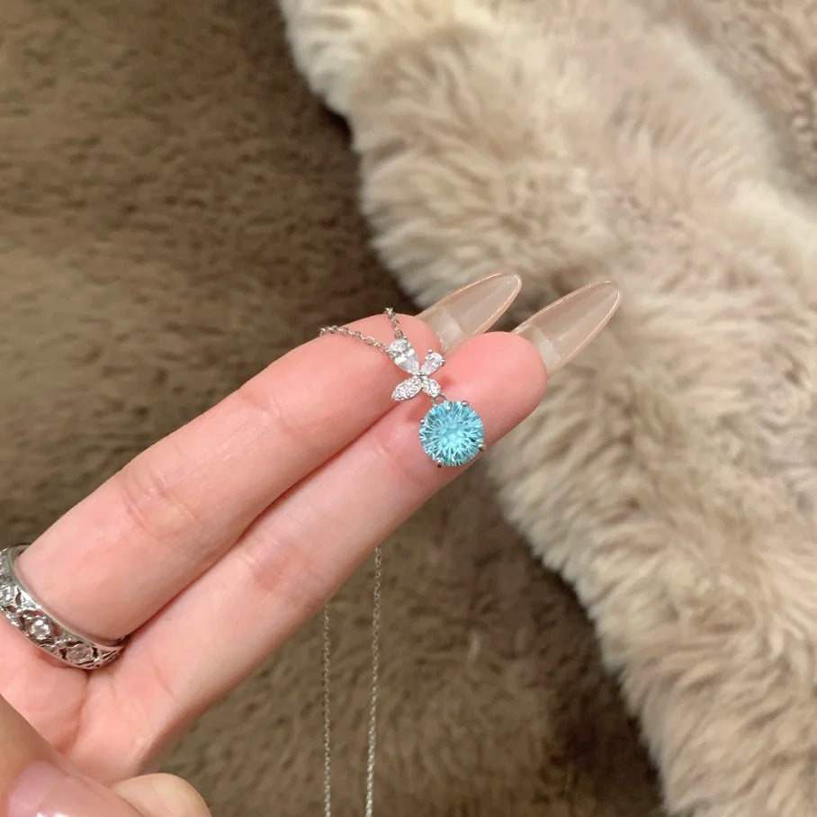 F廠【XDQ1094N】輕奢精緻爆閃煙火切蝴蝶項鍊女S925純銀高級感藍色煙火鎖骨鏈 25.11-2