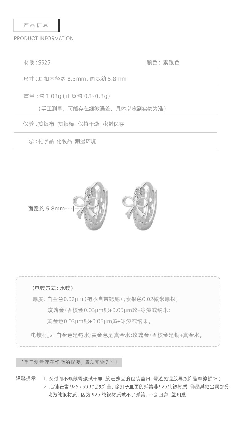 E廠【XDQ11061E】S925純銀甜美芭蕾風鏤空蝴蝶結耳環女簡約設計感氣質耳環耳飾 25.12-2