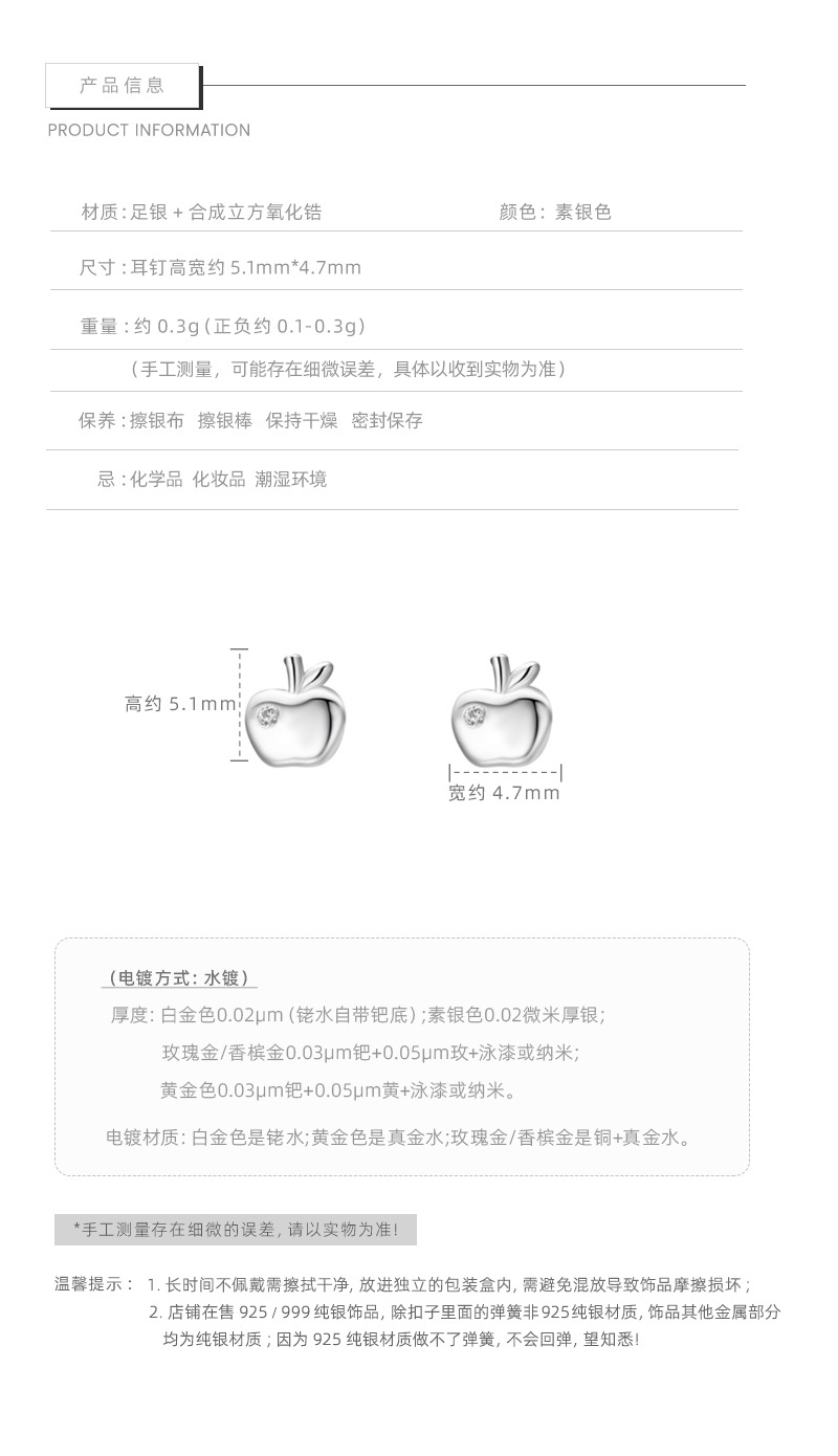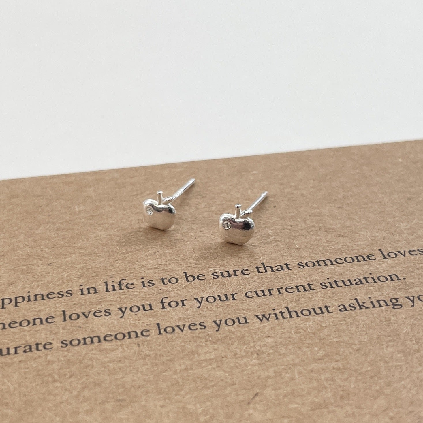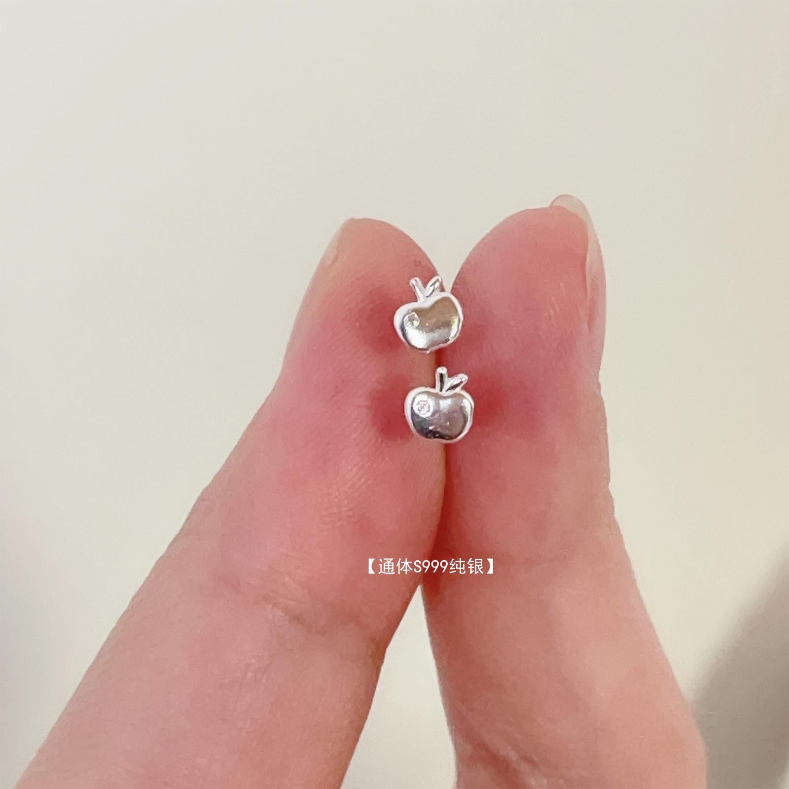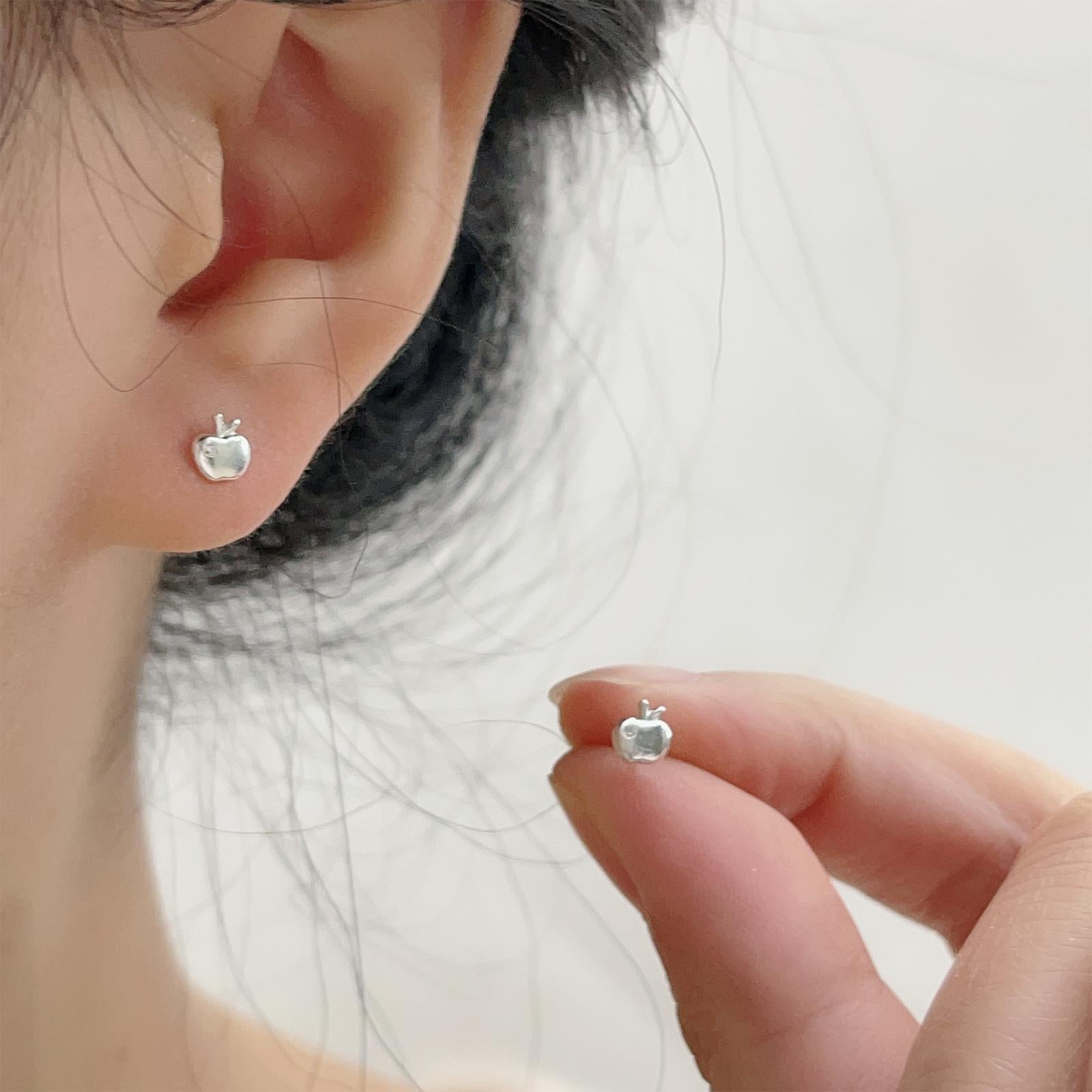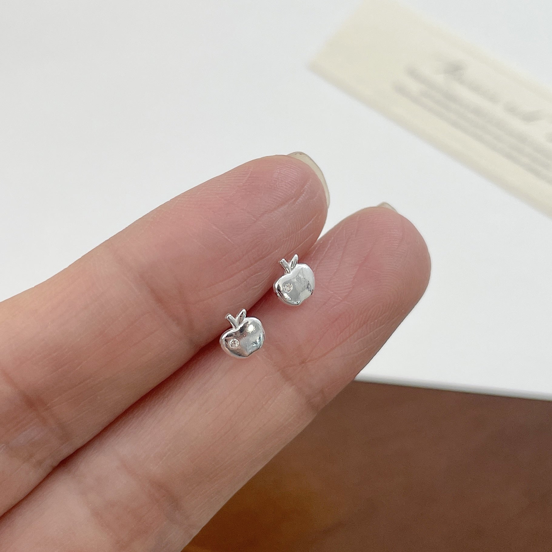 F廠【XDQ11130E】小眾簡約感S999純銀迷你蘋果耳環女簡約創意設計養耳洞耳飾品 25.11-2