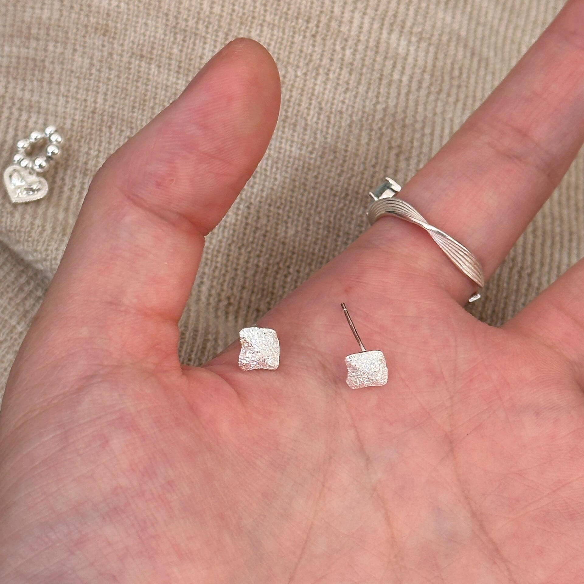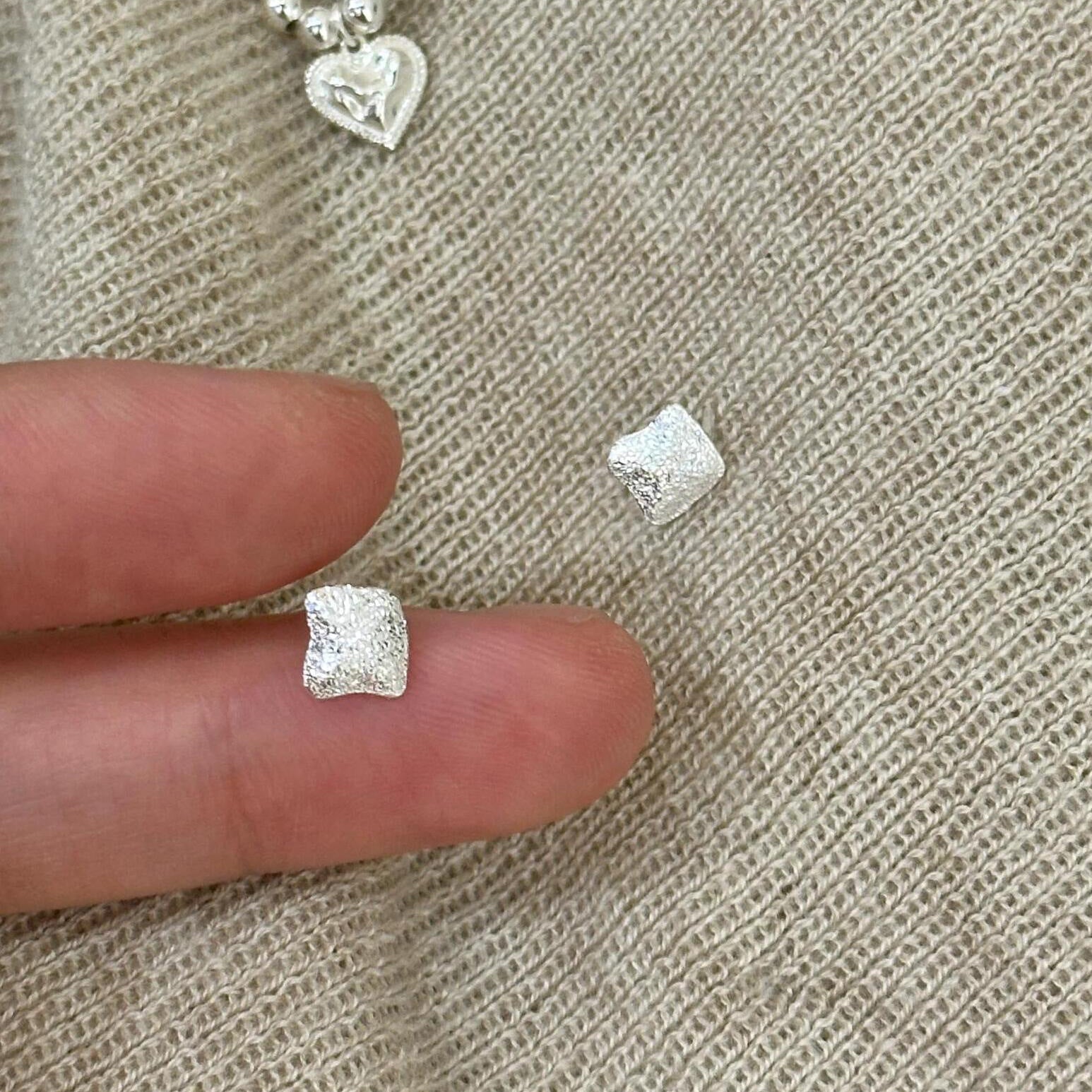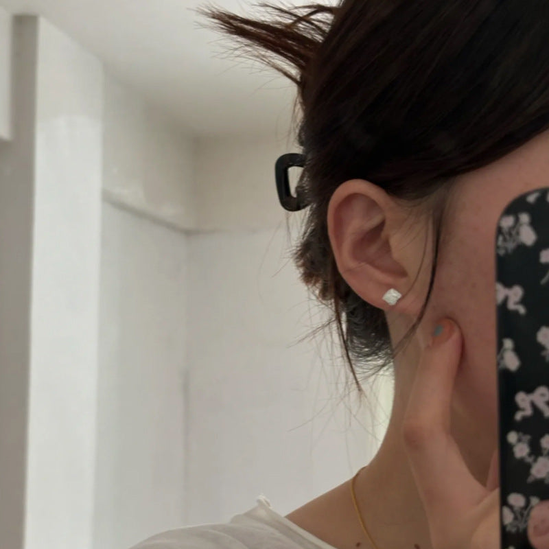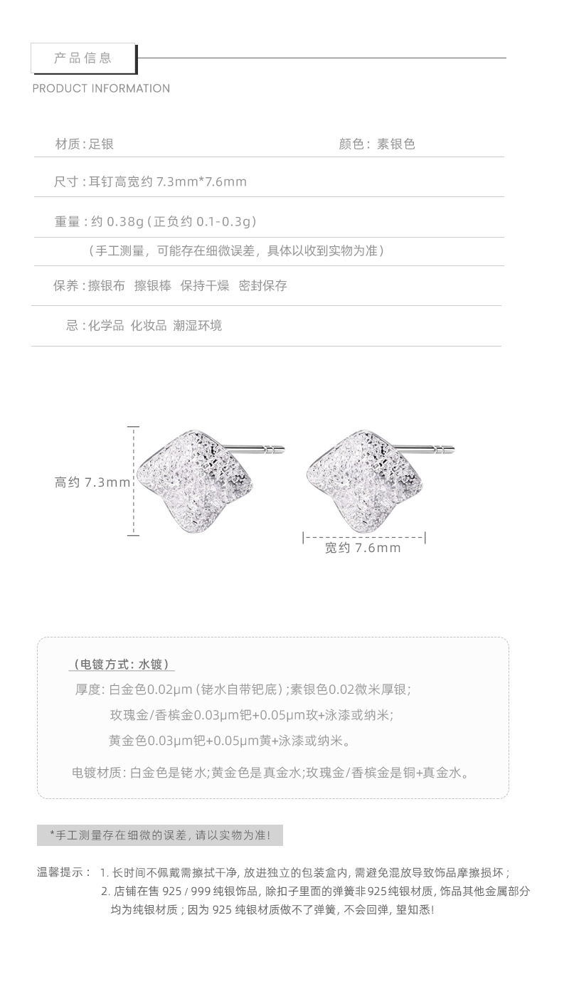F廠【XDQ11131E】S999純銀ins幾何方塊紋理耳環小眾設計熔岩肌理感百搭耳飾女 25.11-2