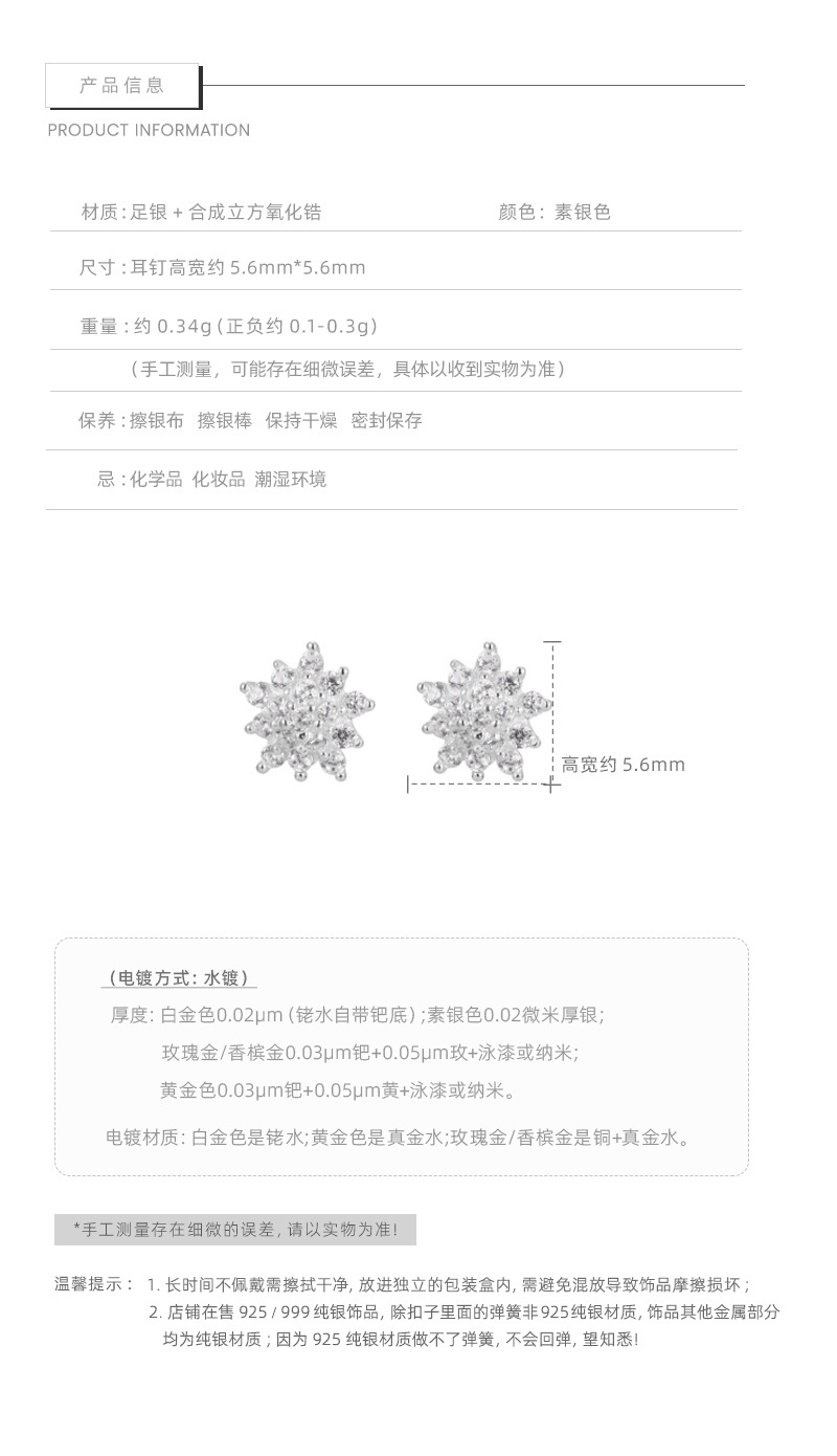 E廠【XDQ11255E】S999純銀精緻小巧雪花耳環簡約設計感鑲鋯石日常免摘耳飾女潮 25.12-1