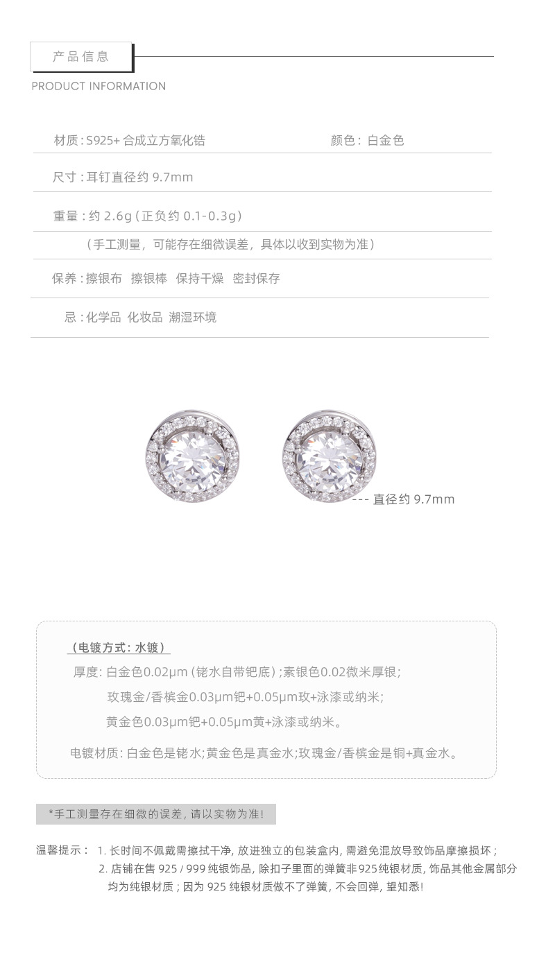 E廠【XDQ11273E】S925純銀爆閃滿鑽耳環女高級感四爪圓鋯時尚通勤耳飾 25.12-1