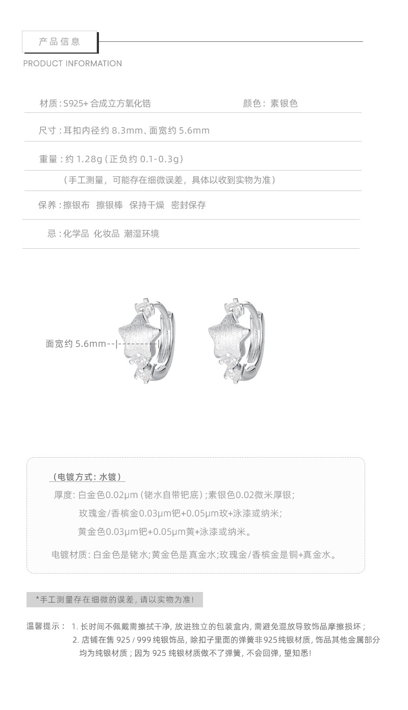 E廠【XDQ11285E】日韓簡約拉絲星星耳扣女S925純銀氣質五角星耳環冷淡風耳飾潮 25.12-4