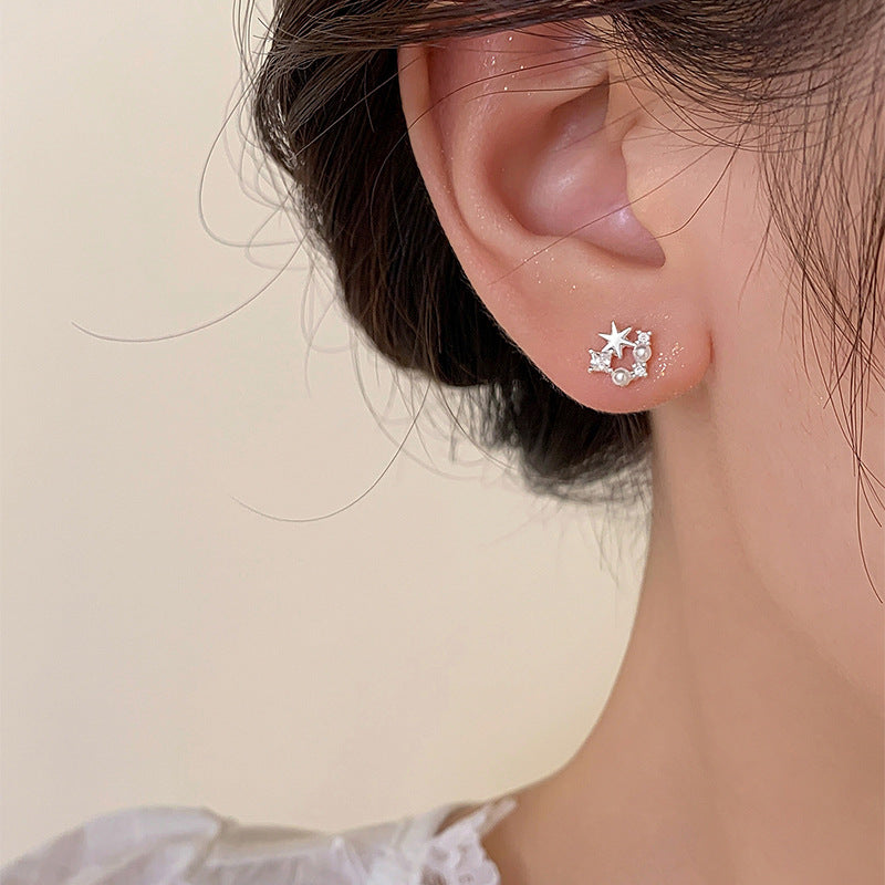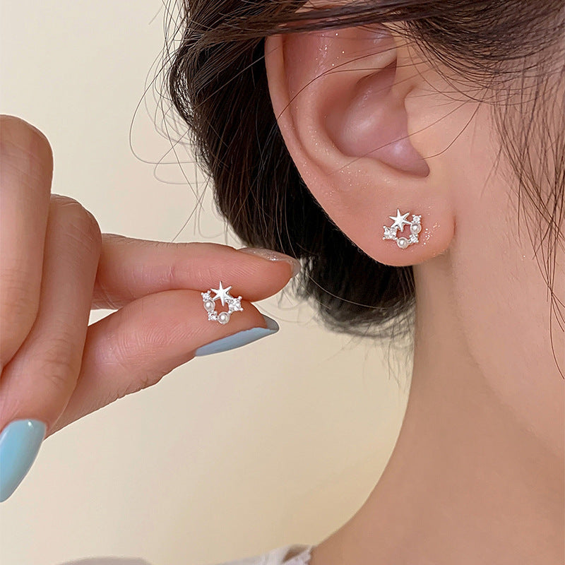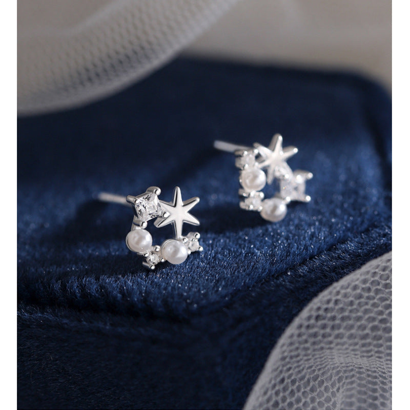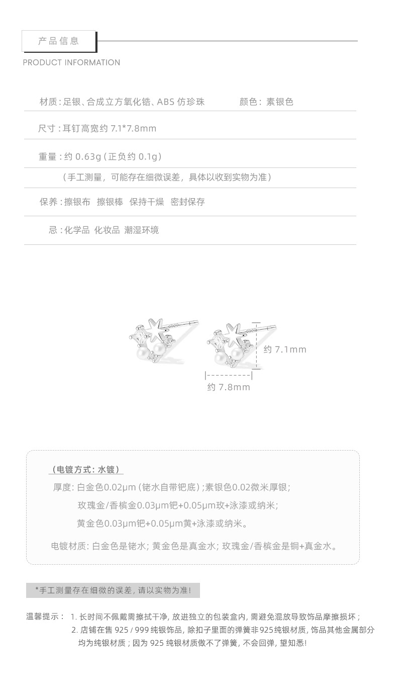 F廠【XDQ11348E】S999純銀簡約氣質六芒星耳環女甜美精緻仿珍珠高級感百搭耳飾 25.11-2
