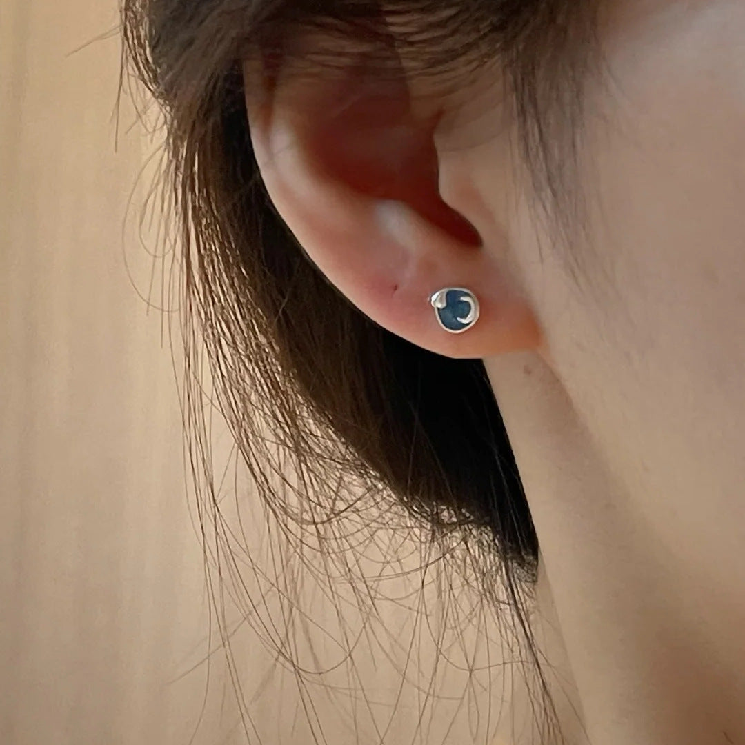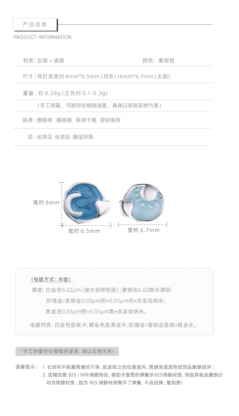 E廠【XDQ11376E】S999純銀不對稱月亮太陽耳環女時尚個性暈染琺瑯通勤百搭耳飾 25.11-4